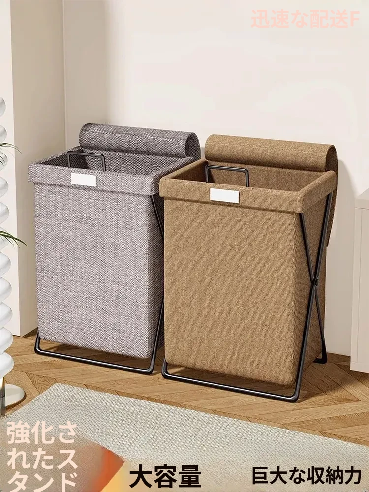大容量・軽やかな高級感!スタイリッシュな家庭用洗濯物収納バスケット - トイレやバスルームに最適、移動もラクラク!