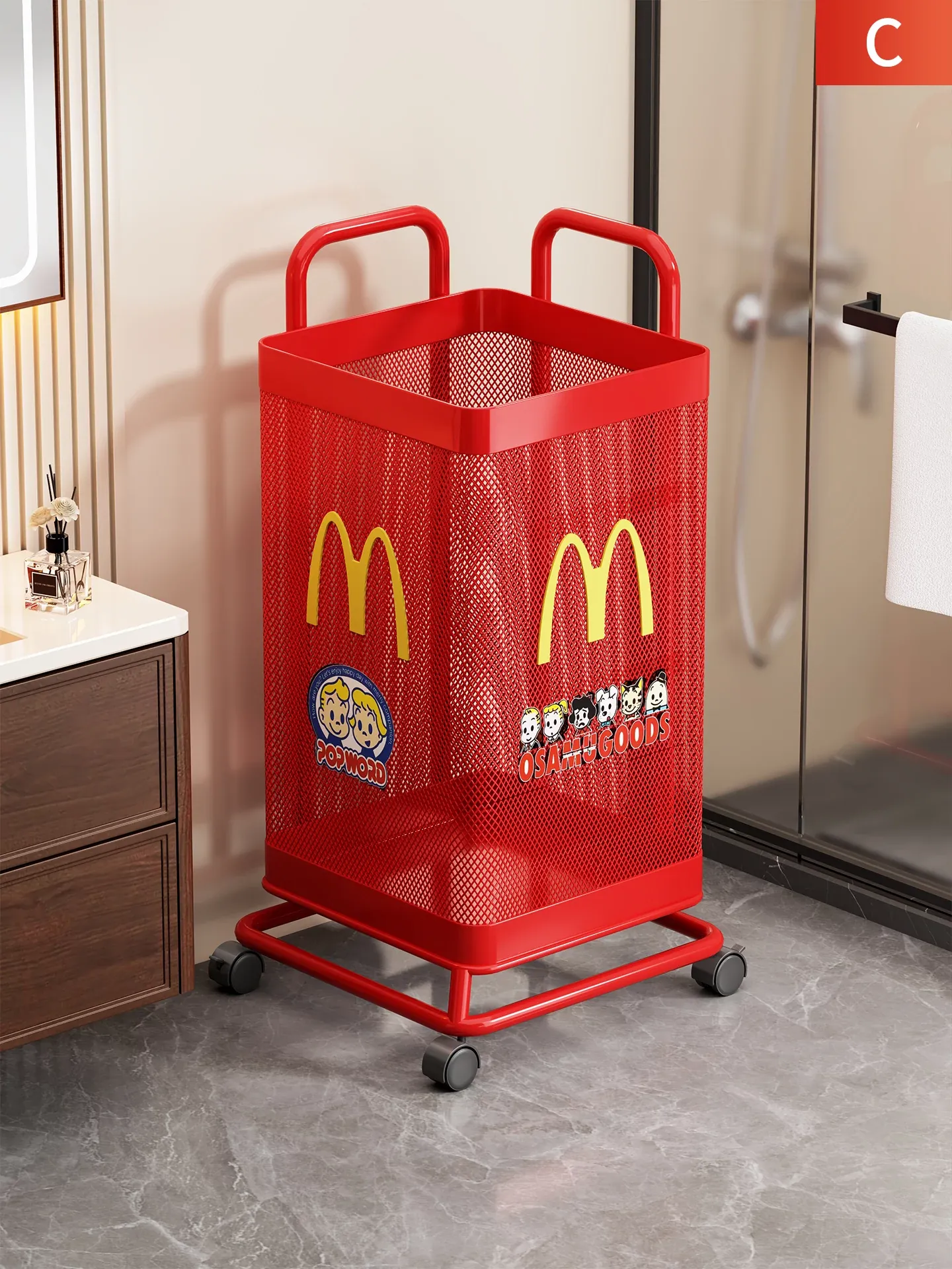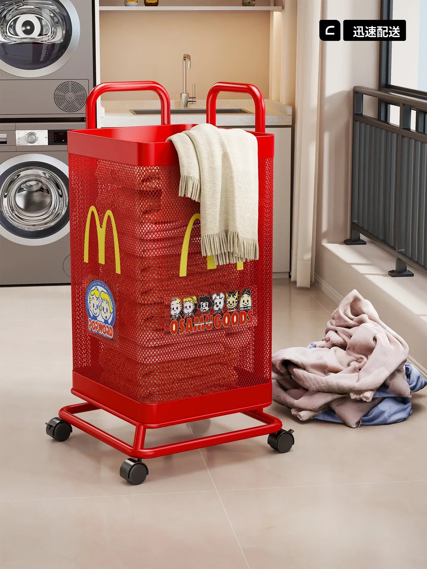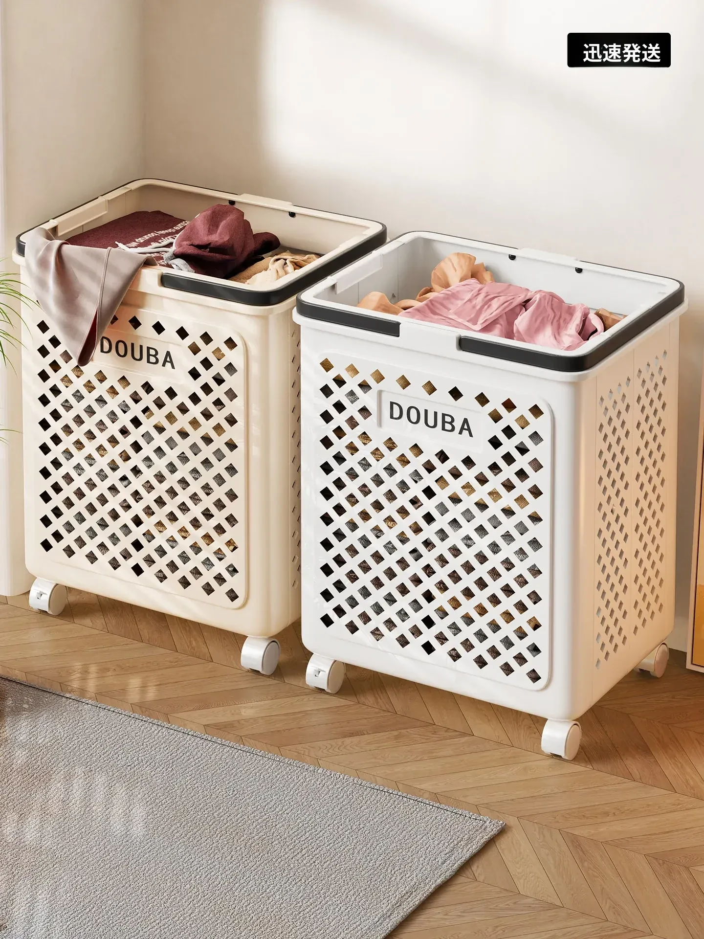 大容量の移動式ランドリーバスケット - 洗面所やバスルームに最適!清潔感あふれるデザインで、汚れた衣類を簡単に収納。あなたの生活を便利にする必需品です!