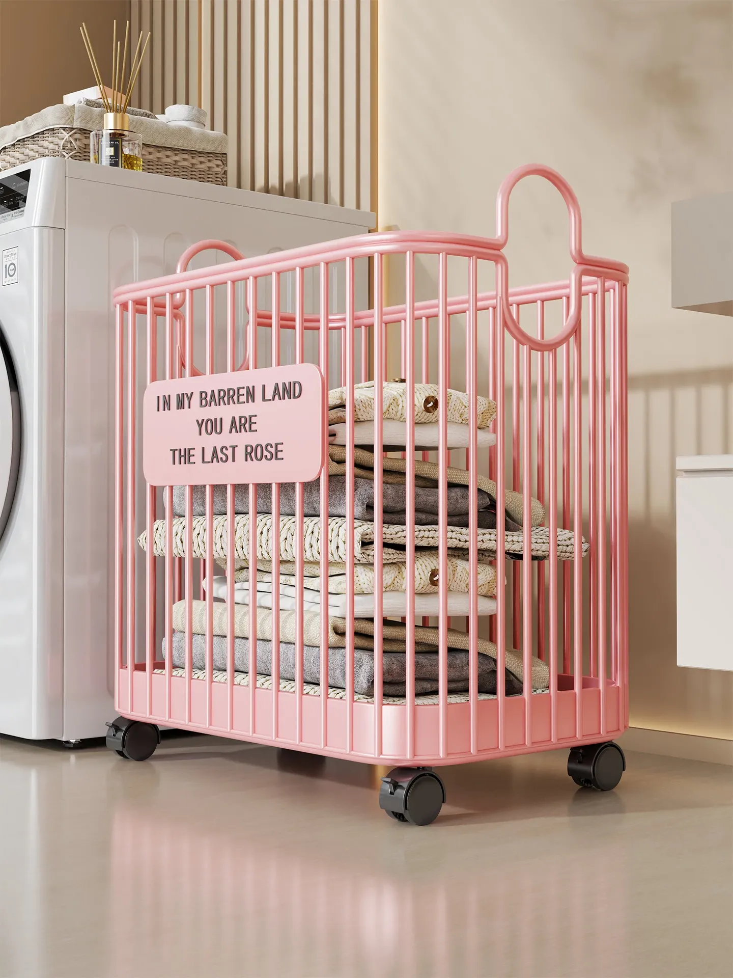 おしゃれで高級感あふれるキャスター付きのランドリーバスケット!簡単に移動できるデザインで、バスルームや洗濯場でも大活躍。美しい外観で、汚れた衣類をスタイリッシュに収納しましょう。