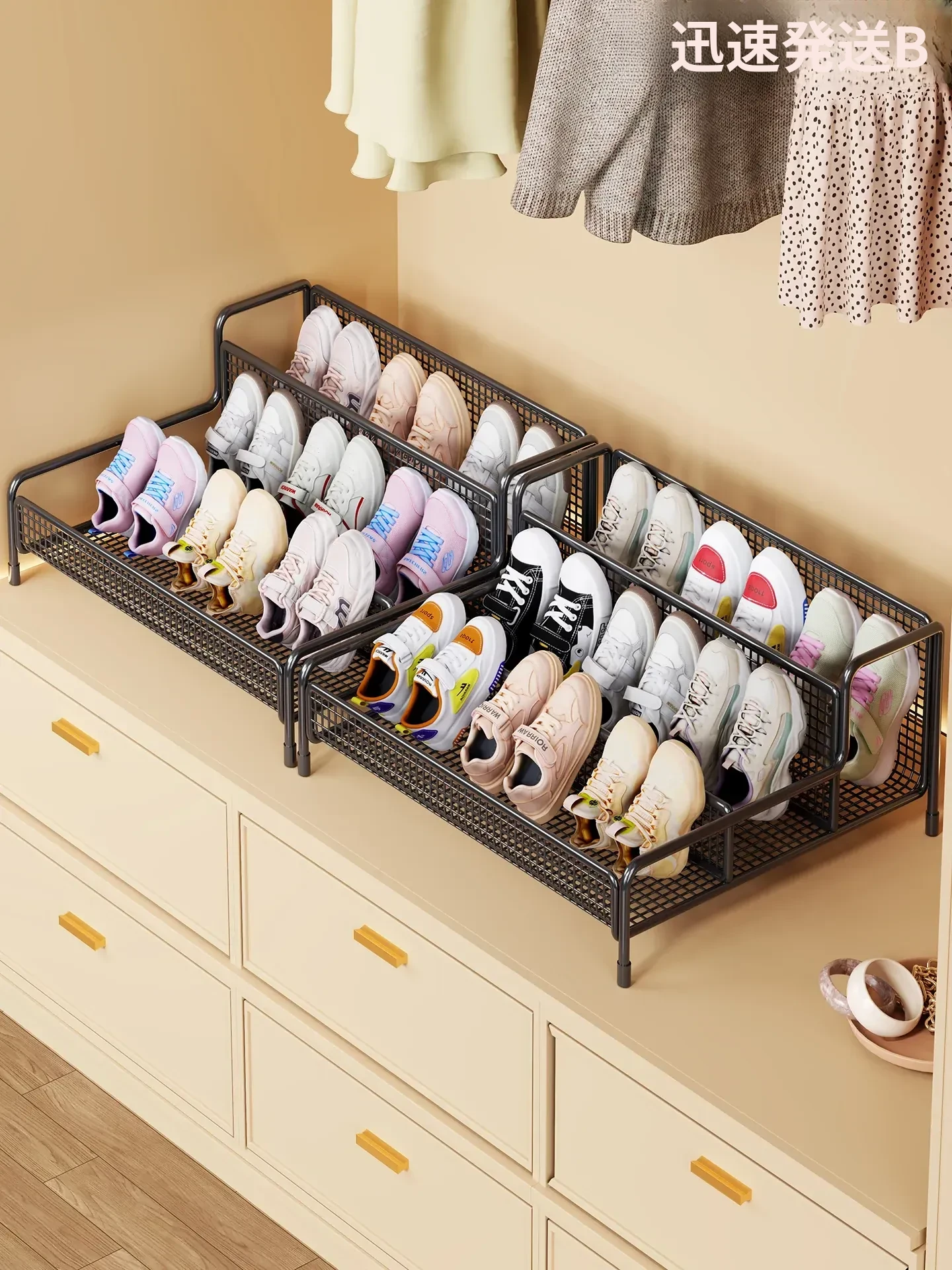 伸縮式衣類収納棚!クローゼット内の靴や衣類をすっきり整理!家用キャビネットの最適な収納ソリューション!おしゃれで便利な分層ラックで、スペースを有効活用しよう!