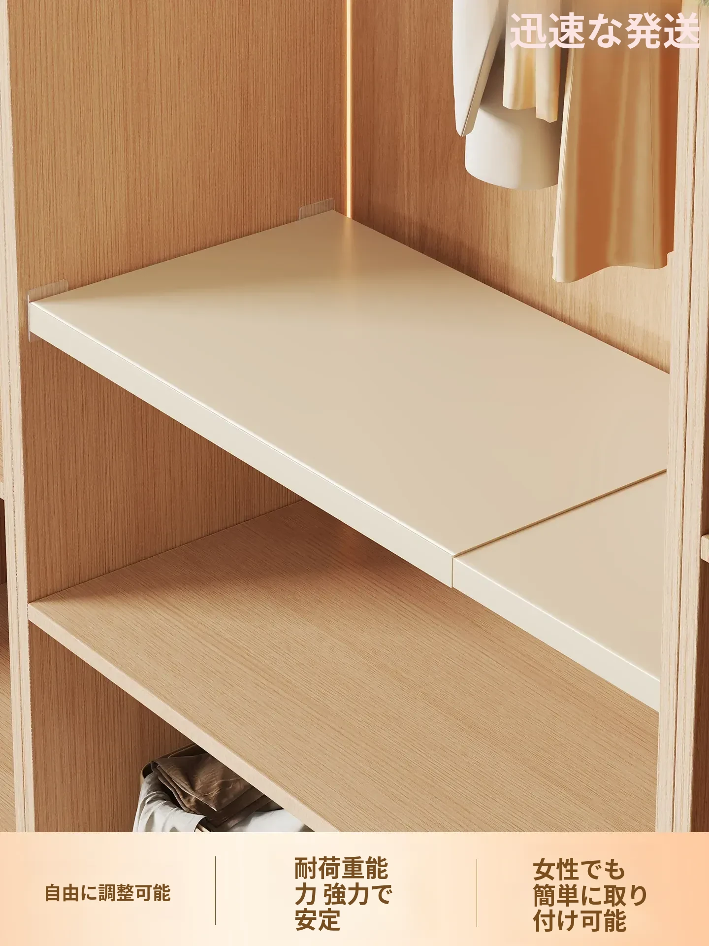 衣類収納革命!伸縮可能なクローゼット仕切り板で、あなたの衣類を整理整頓。スペースを有効活用し、すっきりとしたクローゼットを実現。家庭にぴったりの収納アイテムです!