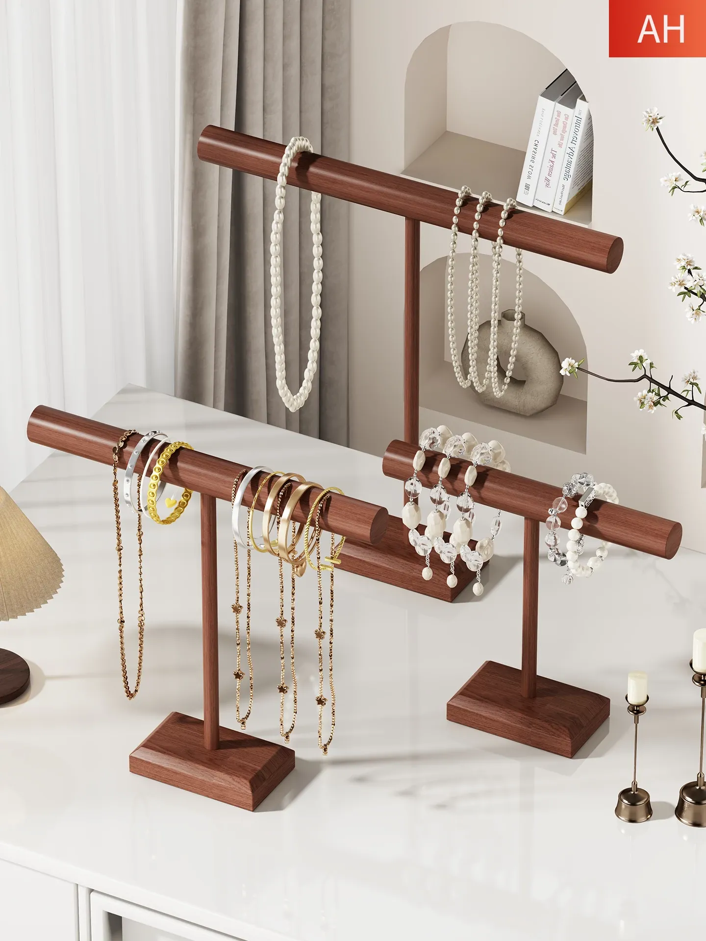 天然木製ジュエリースタンド - 家庭用デスクトップクリスタルブレスレット&ネックレス展示ラック - おしゃれで使いやすいアクセサリー収納ラックで、あなたの宝物を美しくディスプレイ!