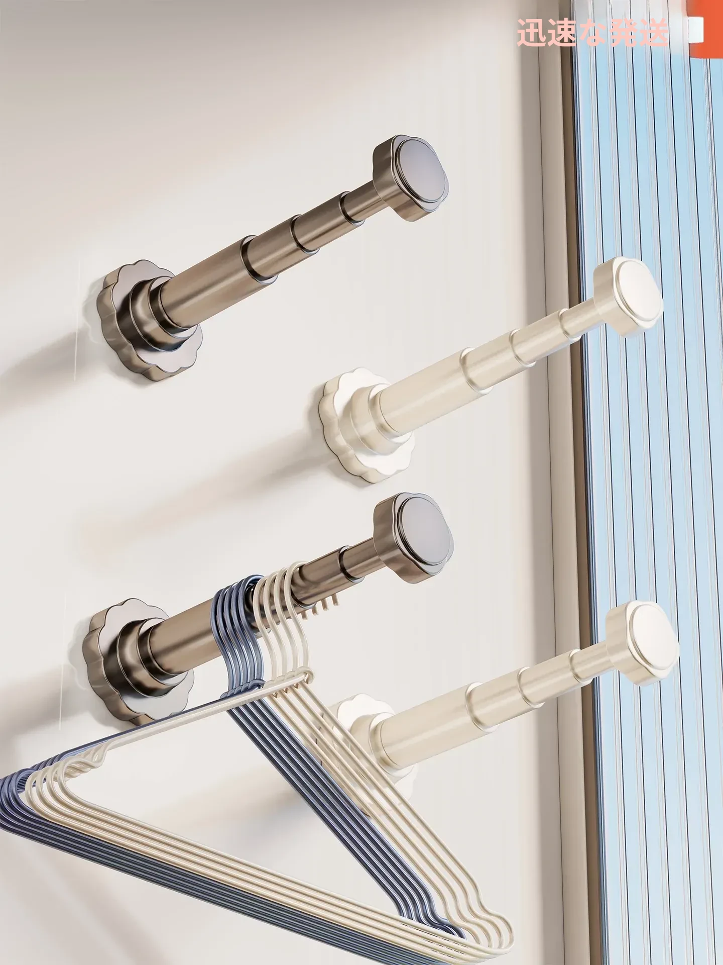 吸盤式衣類ハンガー収納神器!家用・バルコニー向け、マルチ機能の伸縮式で穴なし・跡なし!壁掛けでスペースを有効活用、便利でスタイリッシュな収納を実現!