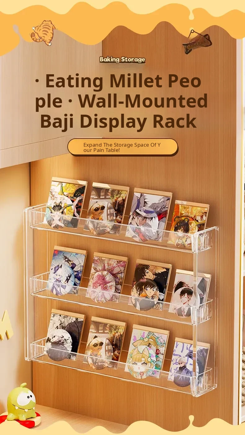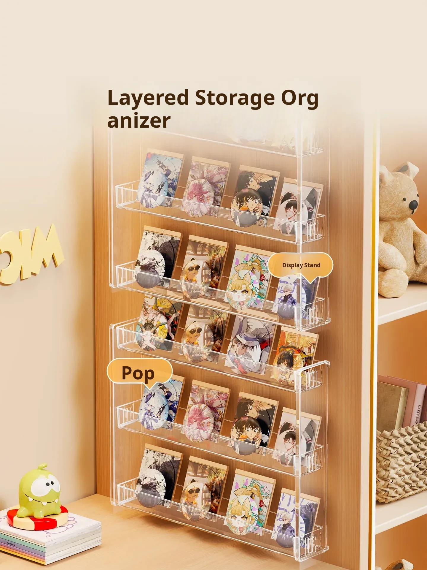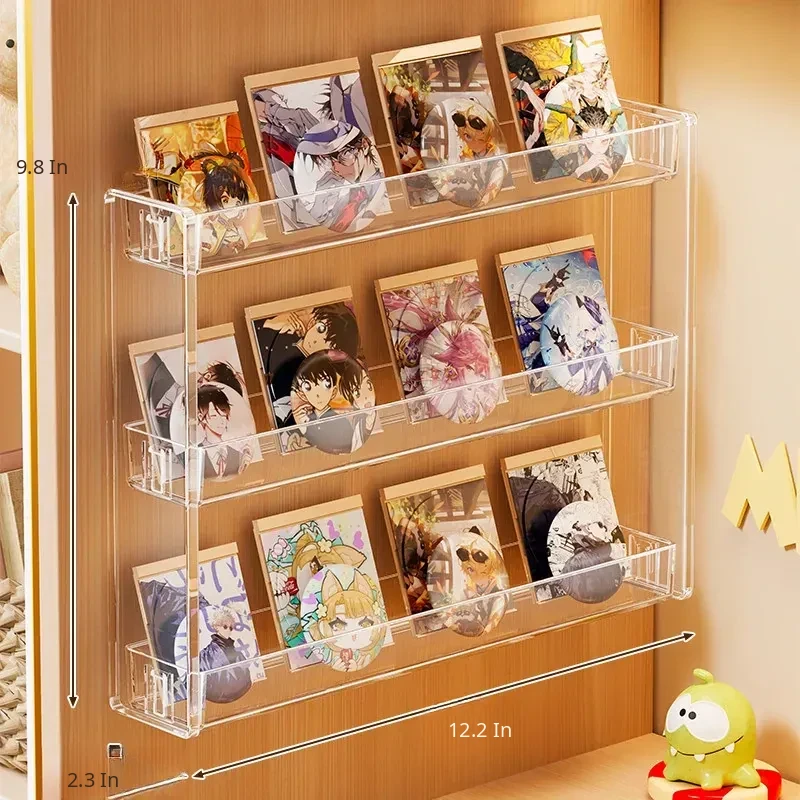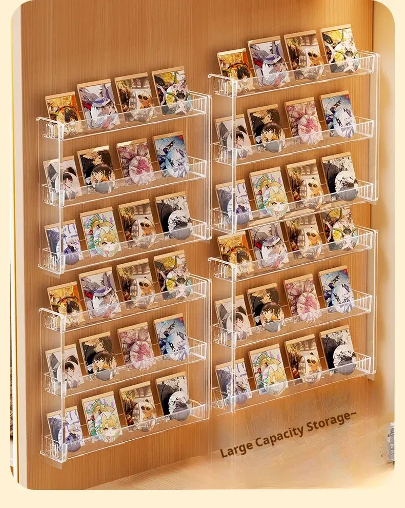 Acrylic Wall-Mounted Display Rack for Small Cards and Items - Stylish and Versatile Storage Solution in Rustic Brown Finish