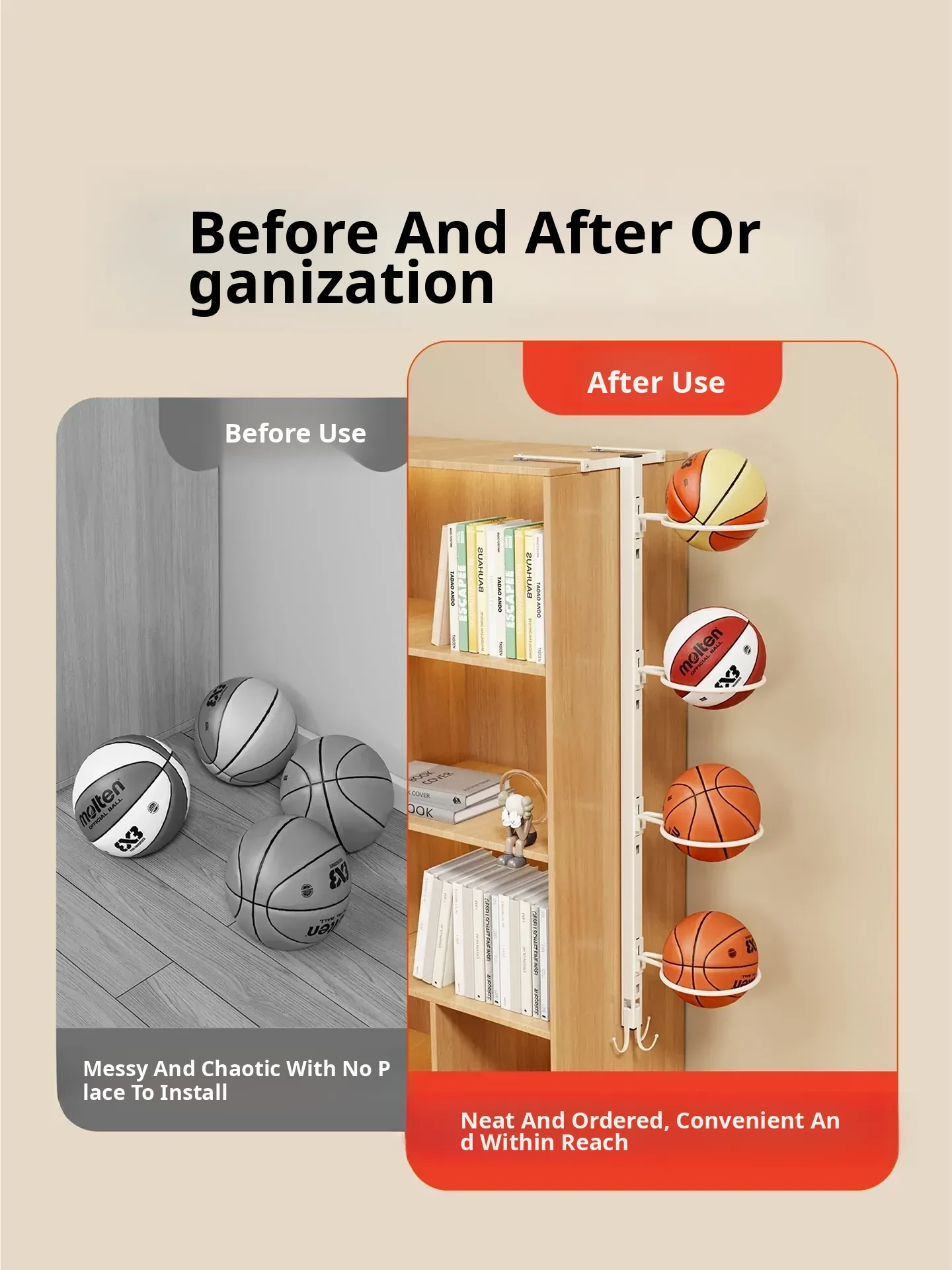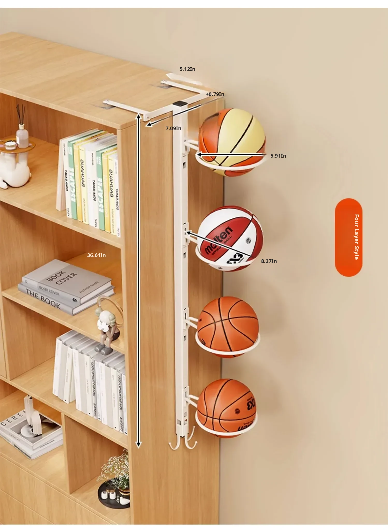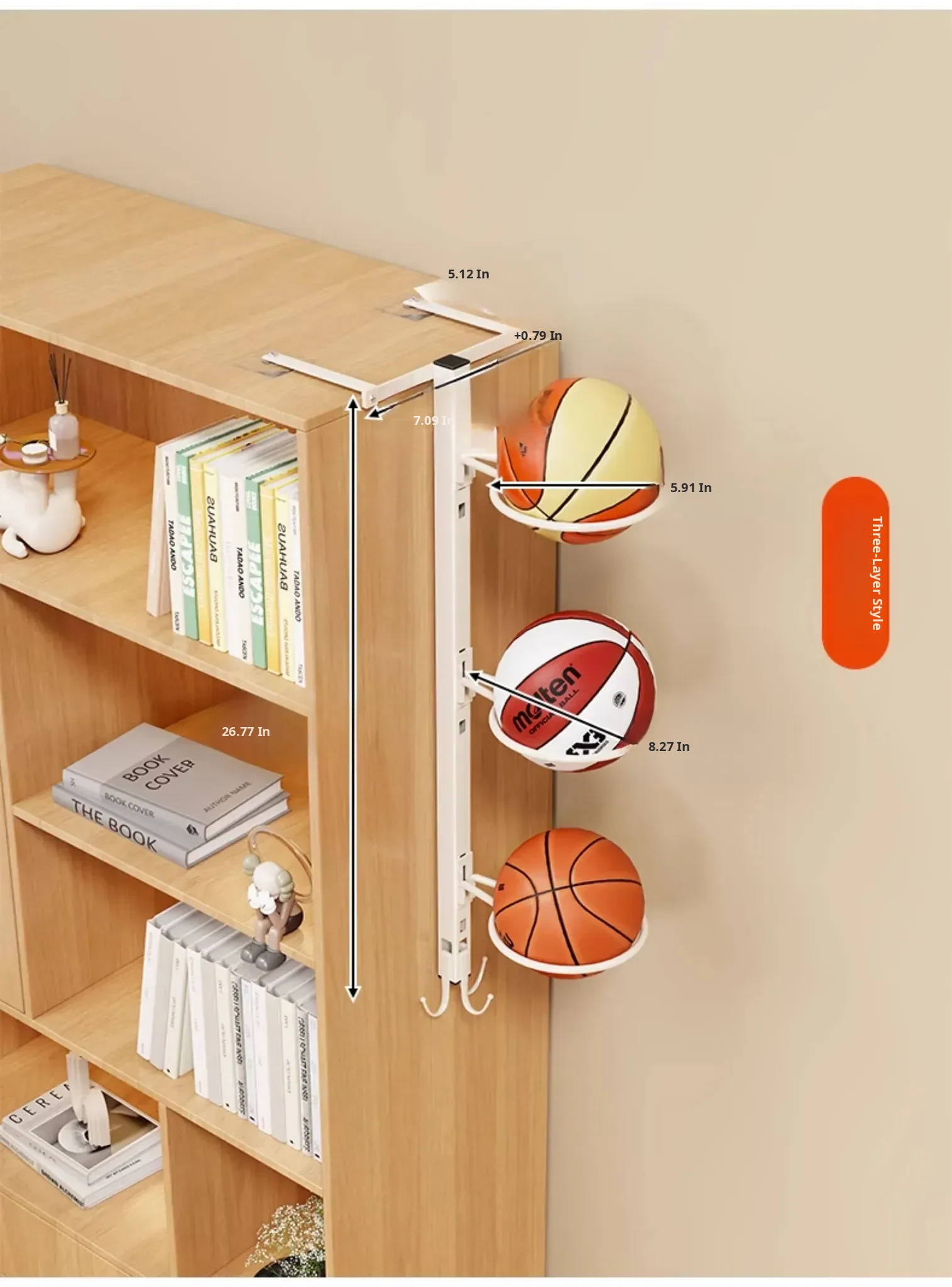 Basketball Storage Rack - Wall-Mounted Multi-Layer Organizer for Home, No Drilling Required! Perfect for Storing Soccer Balls, Volleyballs, and Kids' Sports Equipment – Your Ultimate Ball Organizer!