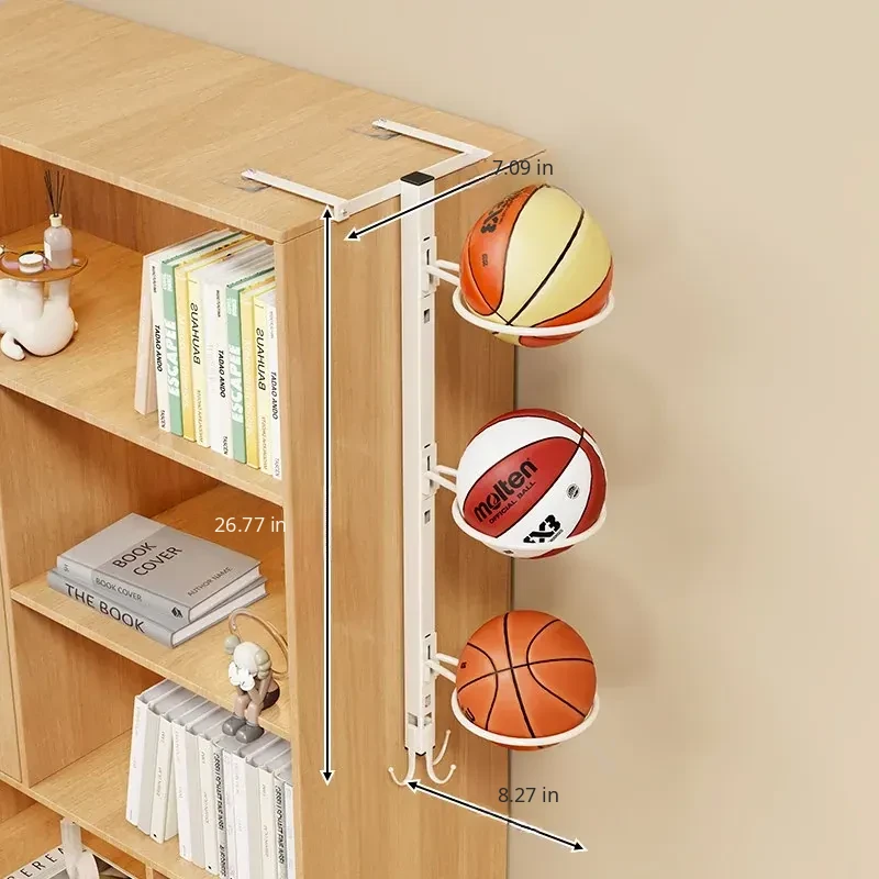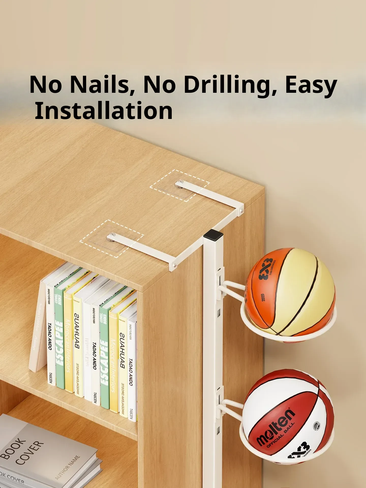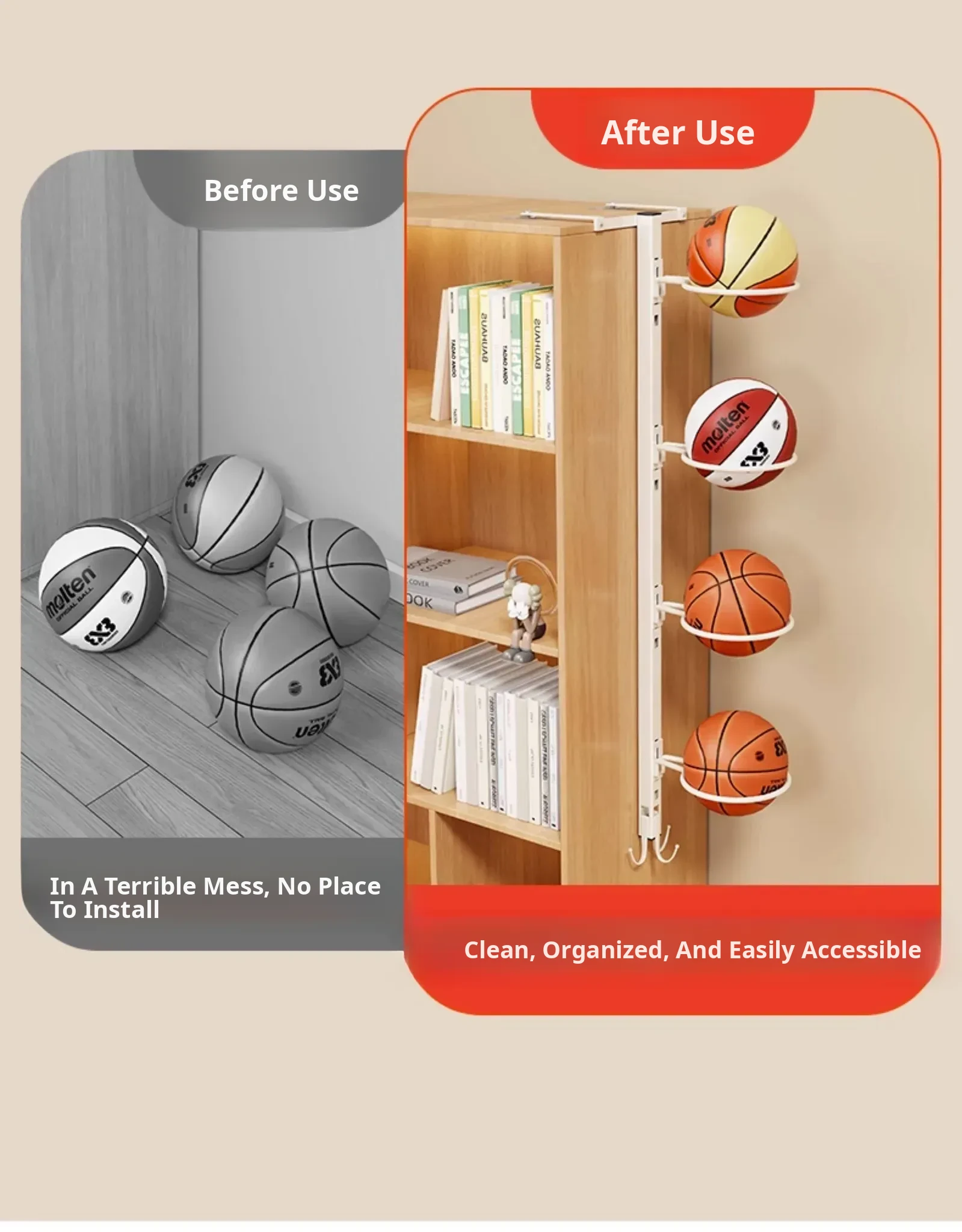 Basketball Storage Rack - Wall-Mounted Multi-Layer Organizer for Home, No Drilling Required! Perfect for Storing Soccer Balls, Volleyballs, and Kids' Sports Equipment – Your Ultimate Ball Organizer!