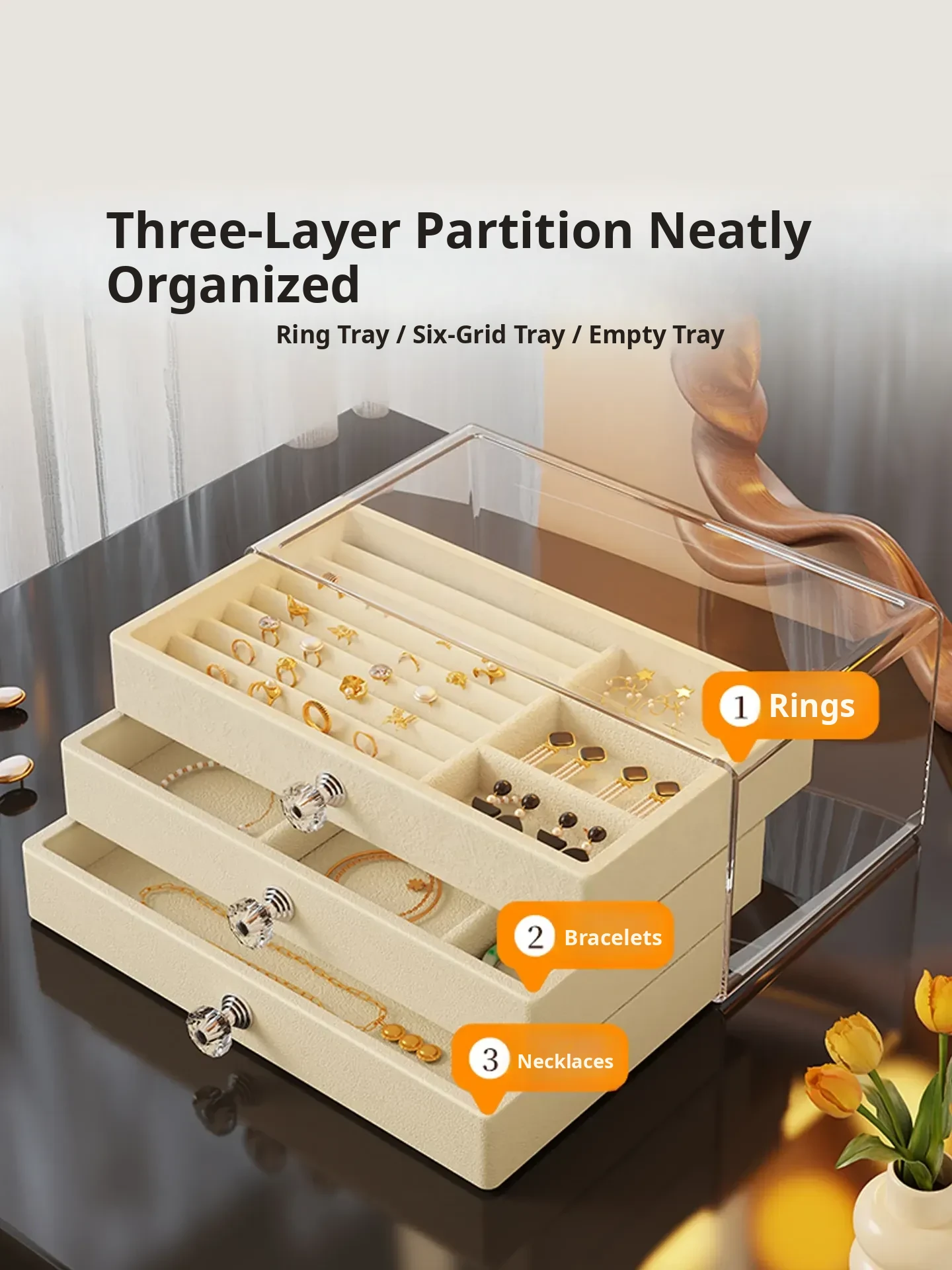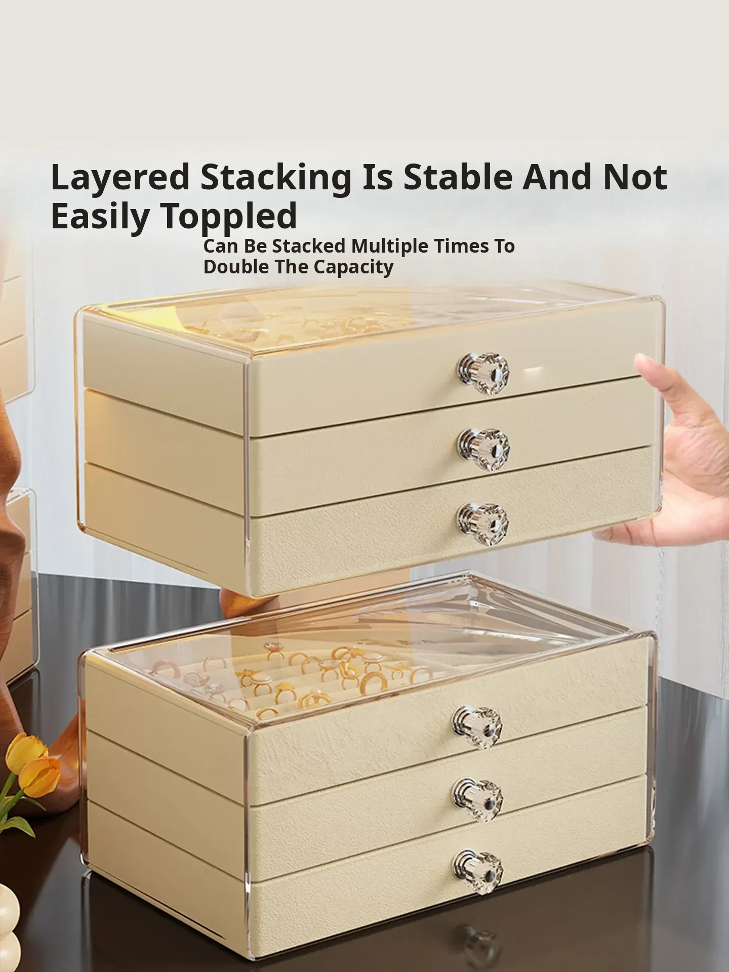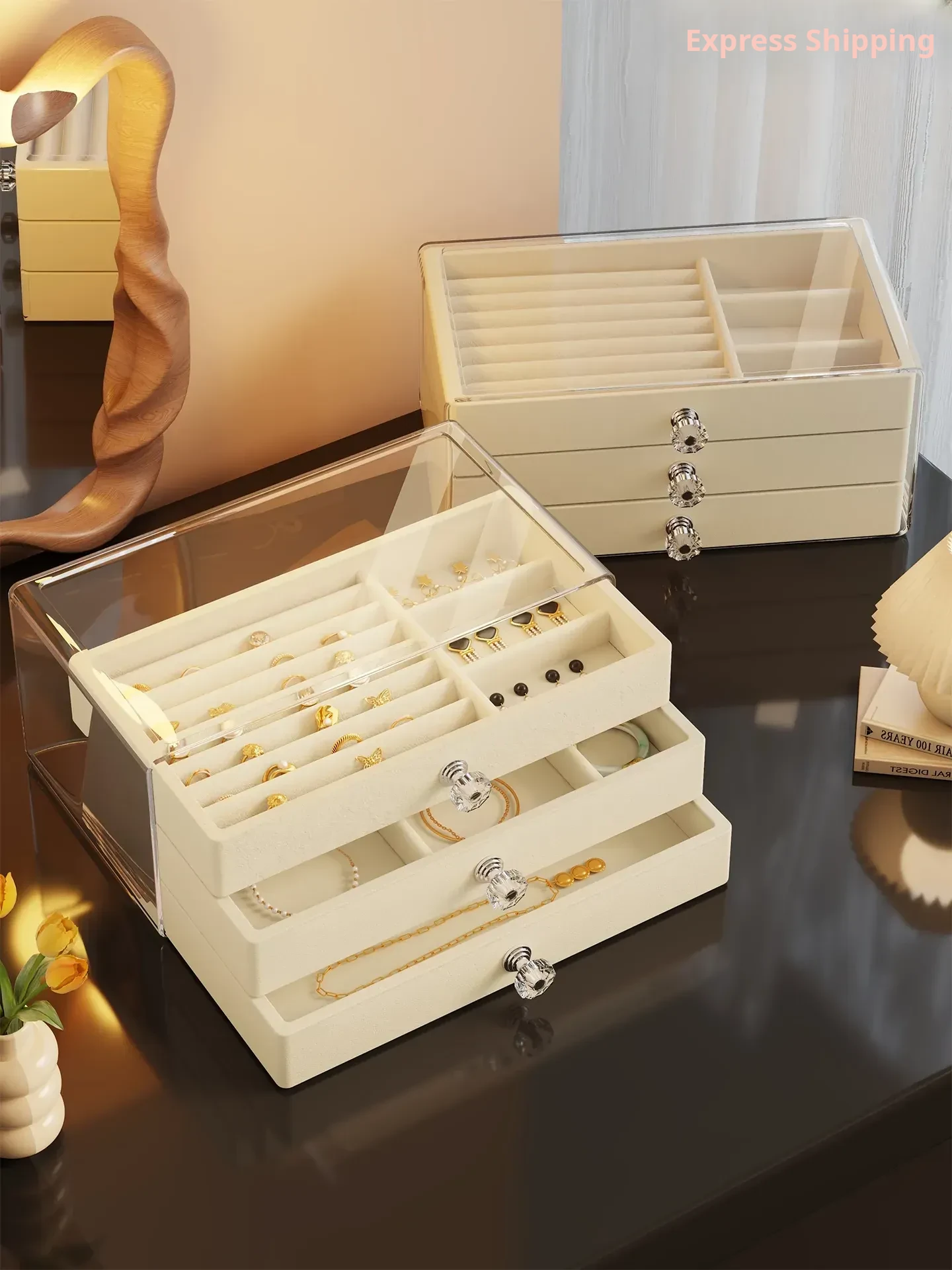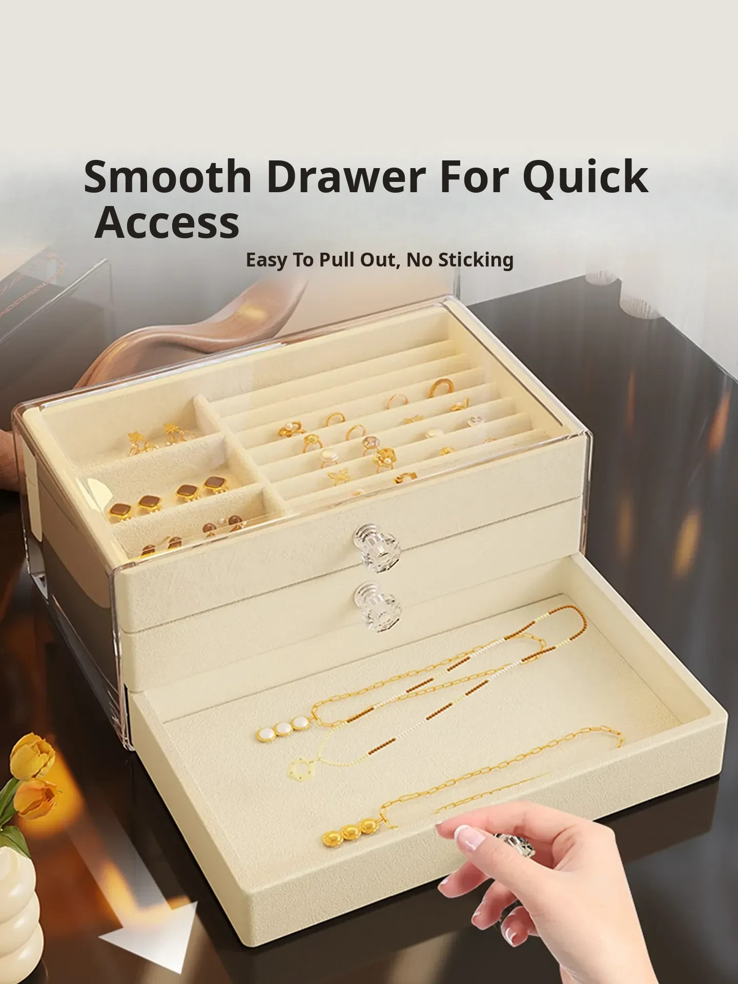 Deluxe Jewelry Organizer Box - Elegant Display Stand for Earrings and Studs, Spacious Drawer Storage for Rings and Accessories, Perfect for Showcasing Your Precious Items