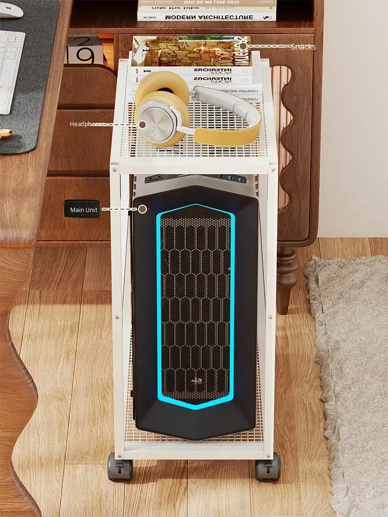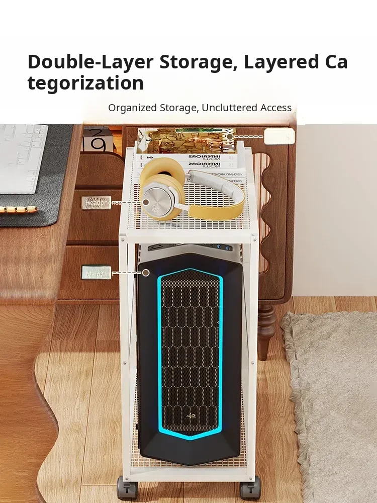 Dual-Layer Mobile Gaming PC Stand - Under-Desk Storage Cart for Home Use, Perfect for Organizing Your Gaming Setup