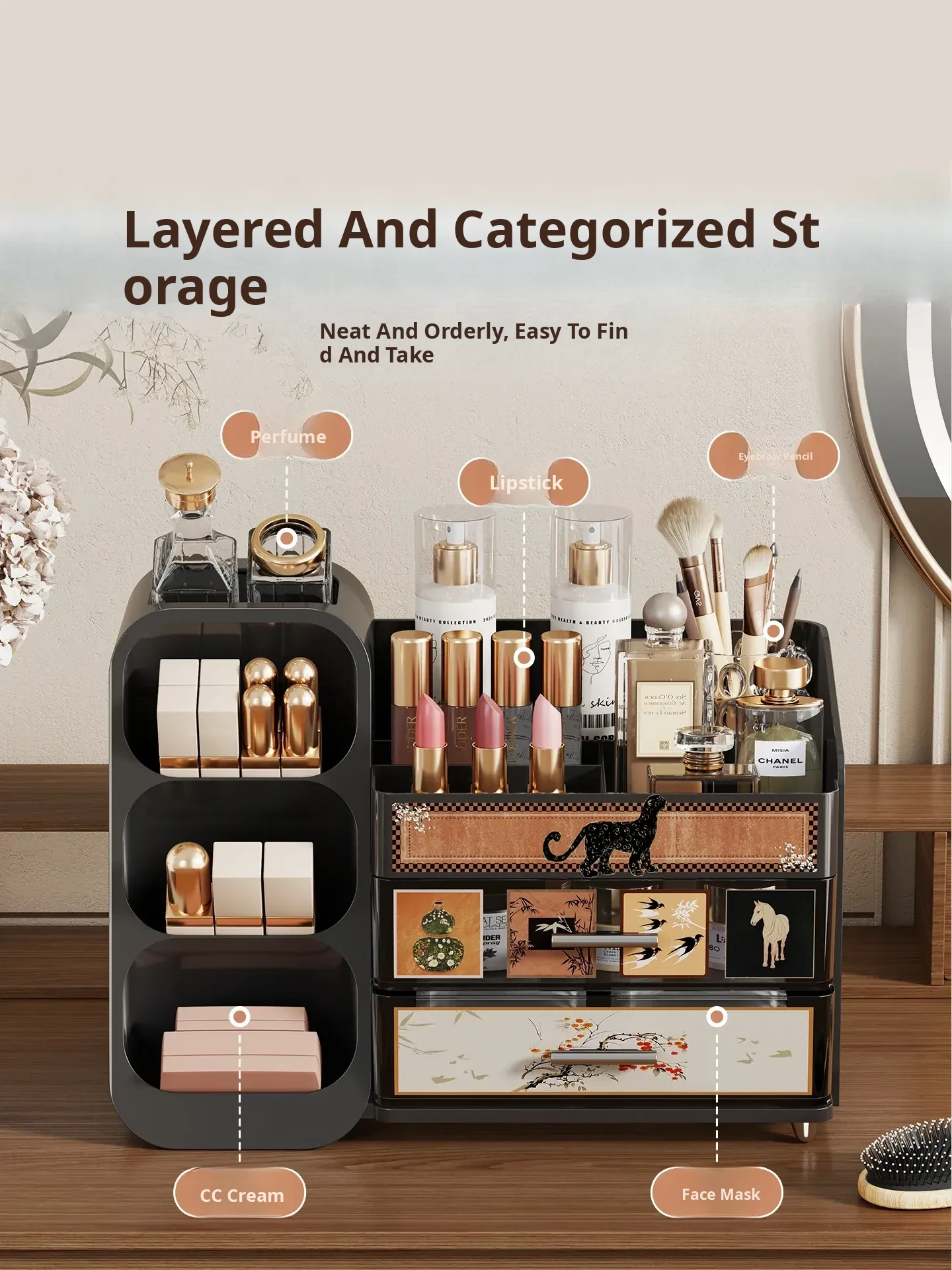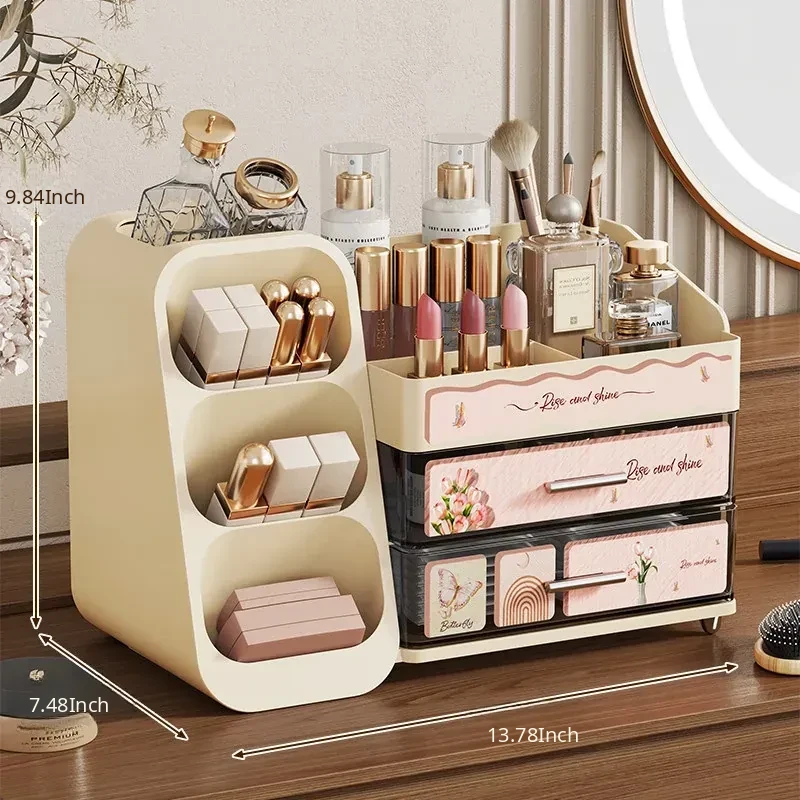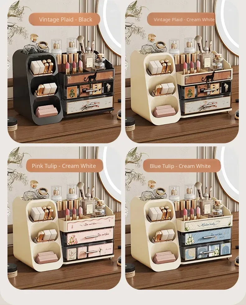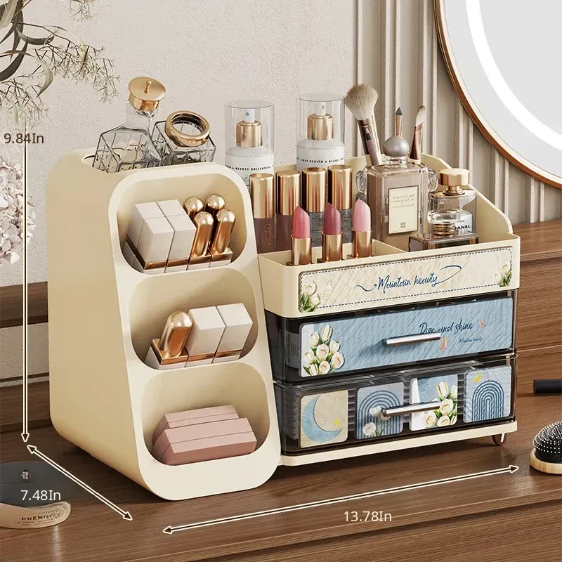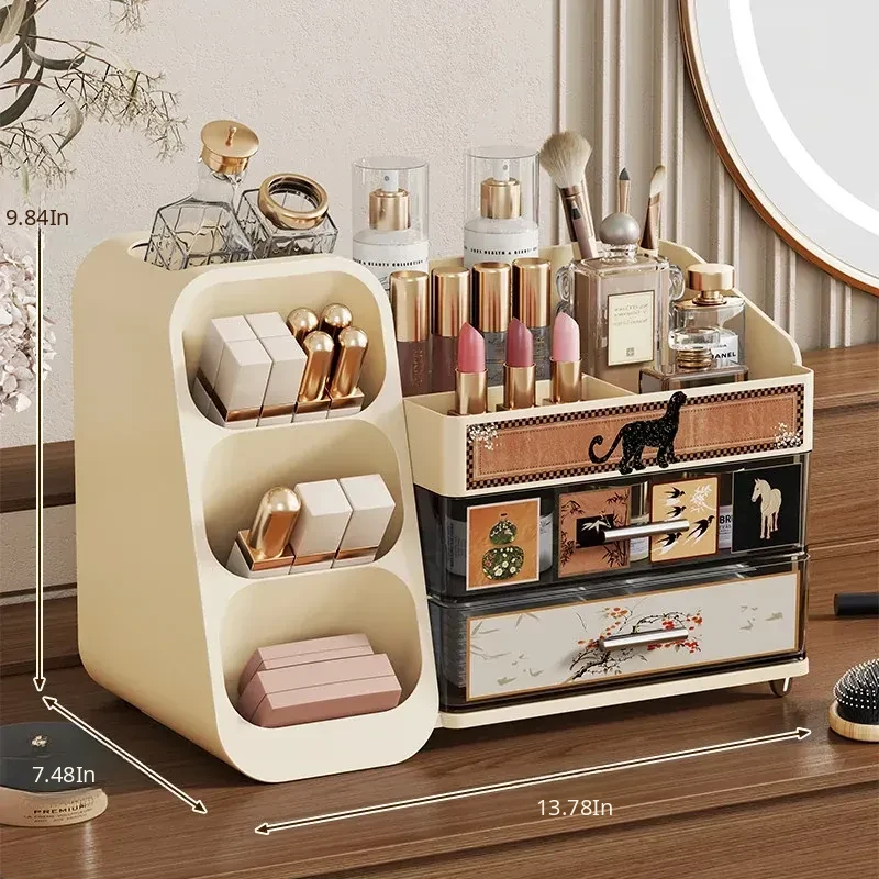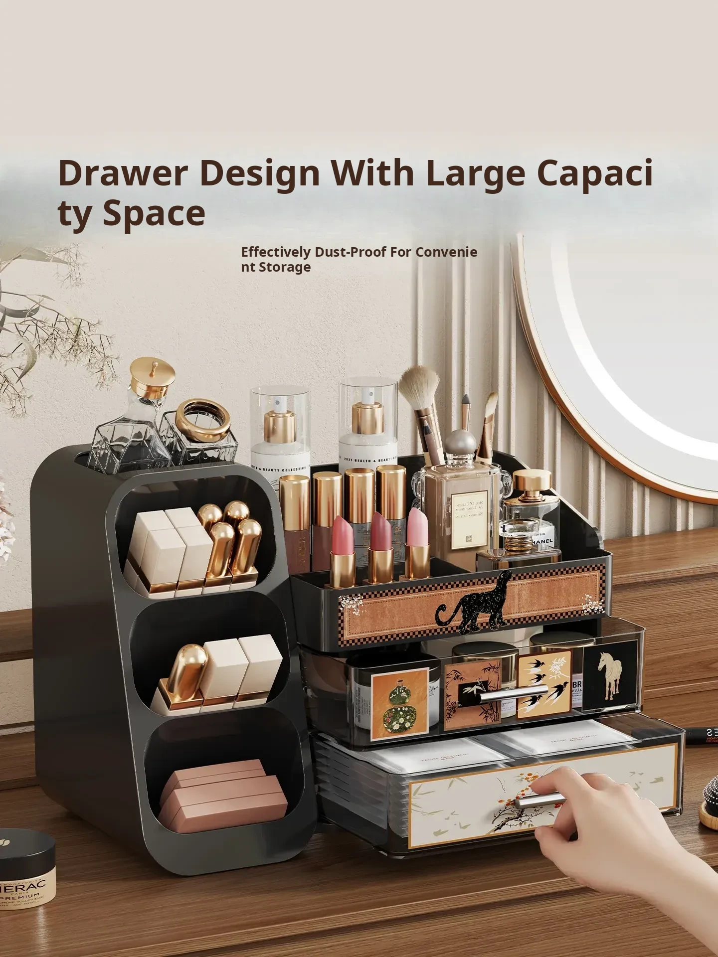 Elegant Drawer Makeup Organizer - Dustproof Vanity Storage Box for Cosmetics and Skincare Products, Stylish Lipstick and Accessory Holder for a Chic Desktop Display