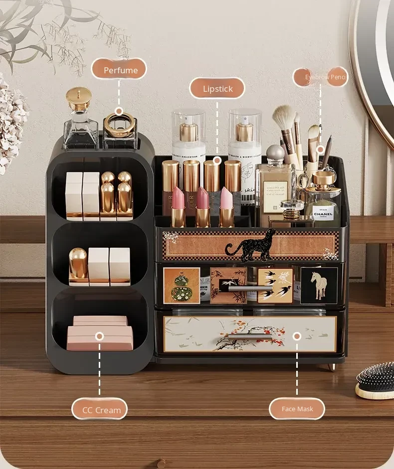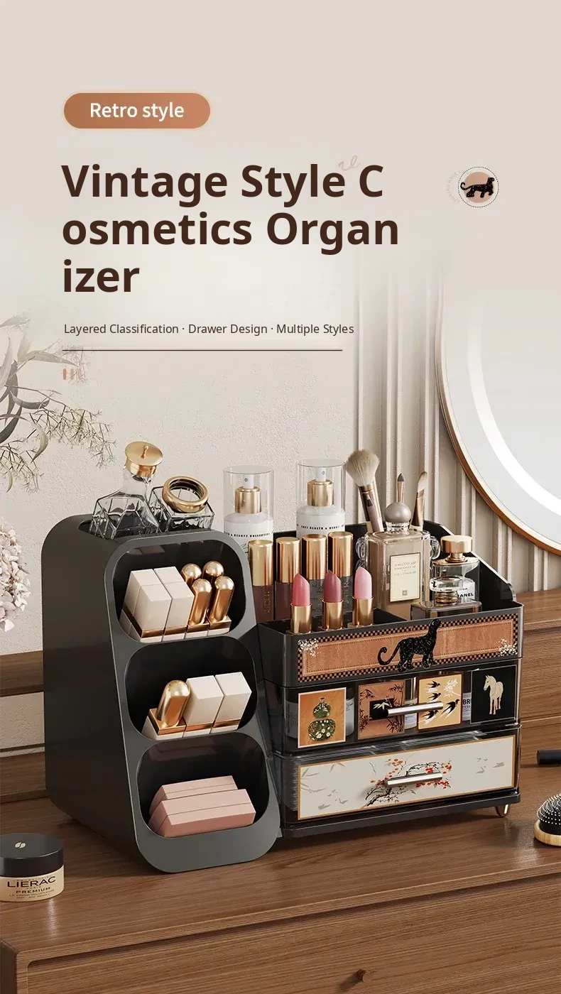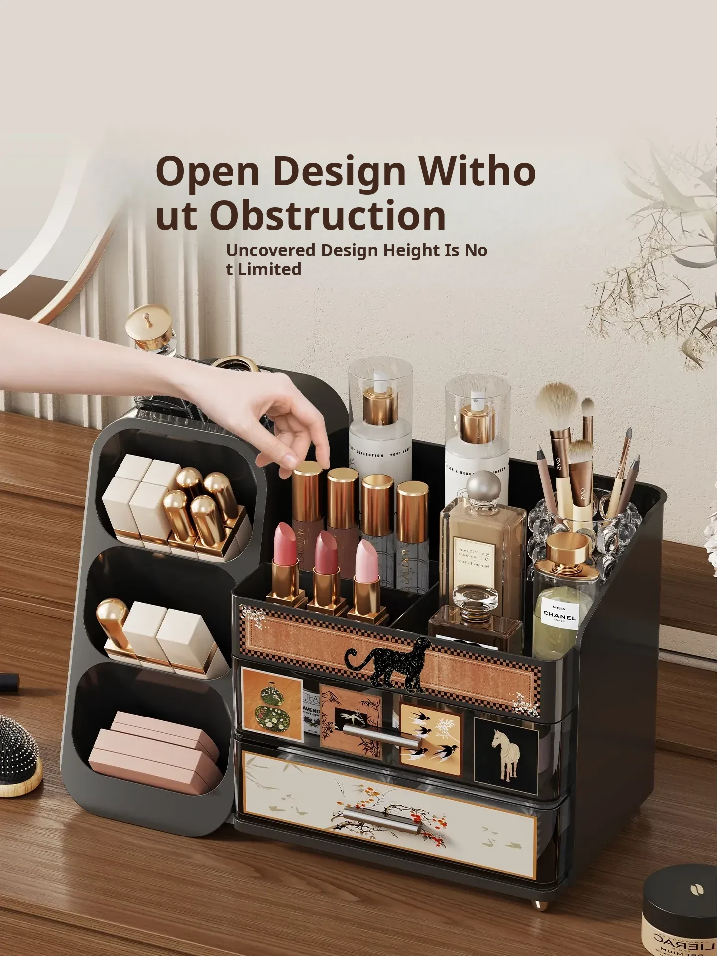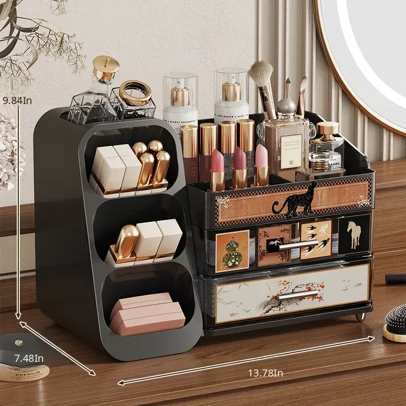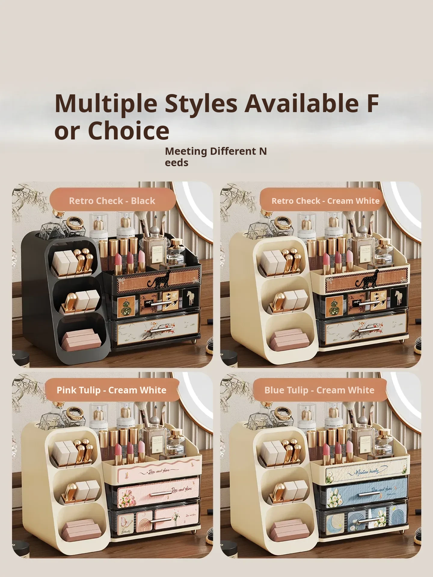 Elegant Drawer Makeup Organizer - Dustproof Vanity Storage Box for Cosmetics and Skincare Products, Stylish Lipstick and Accessory Holder for a Chic Desktop Display