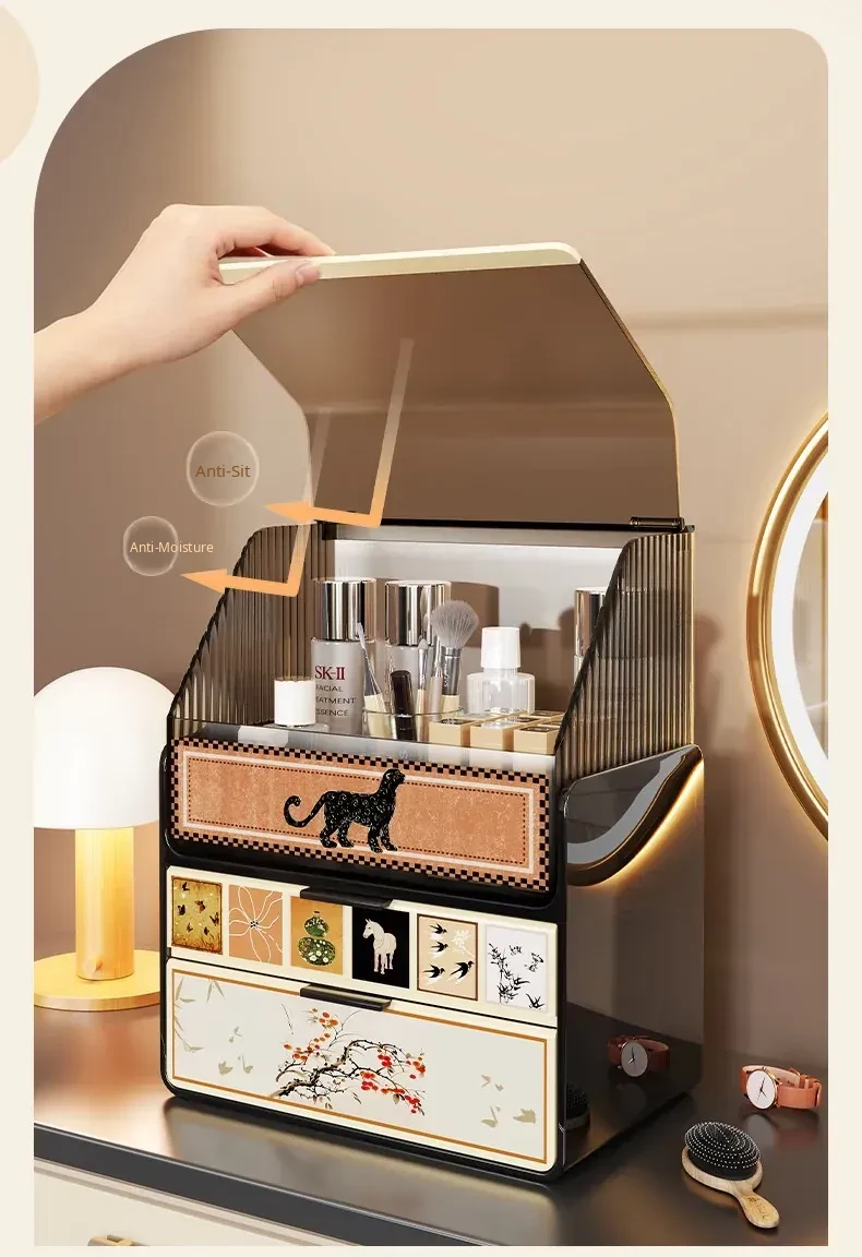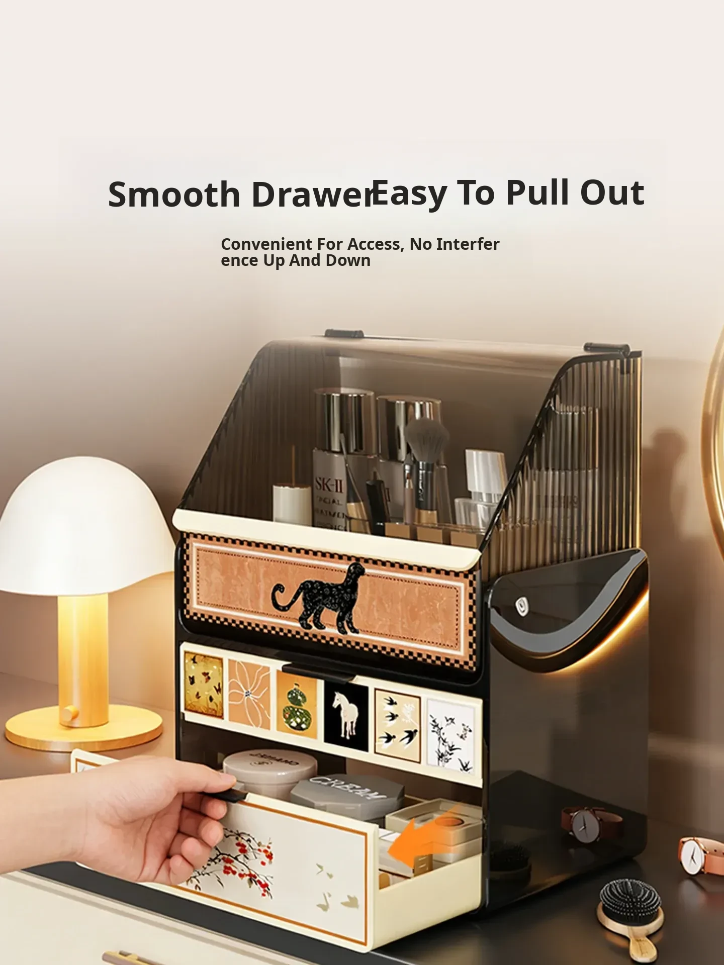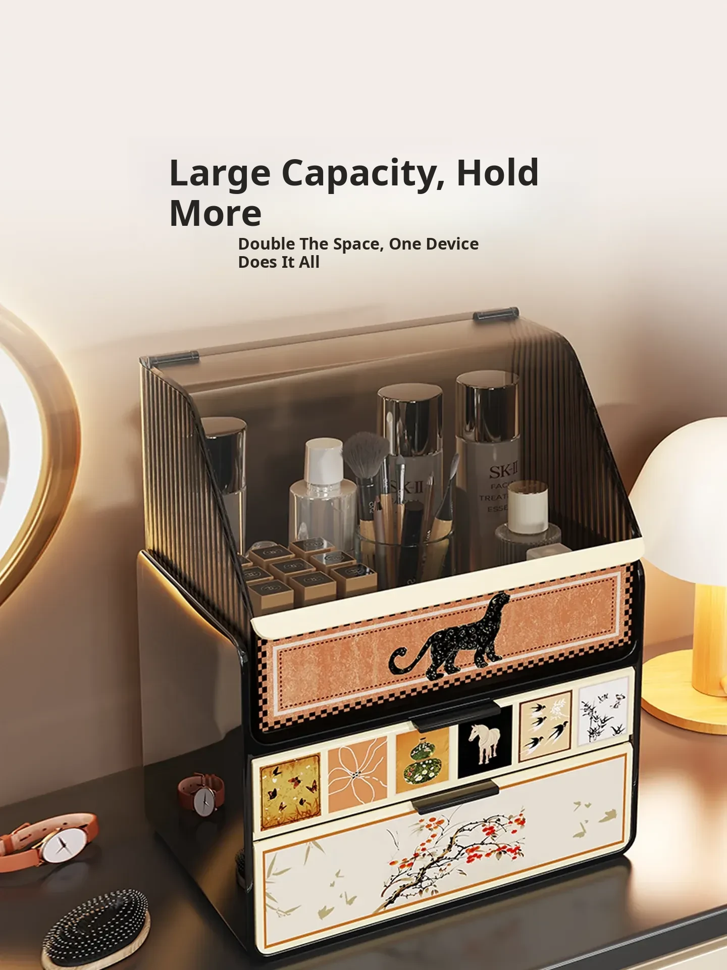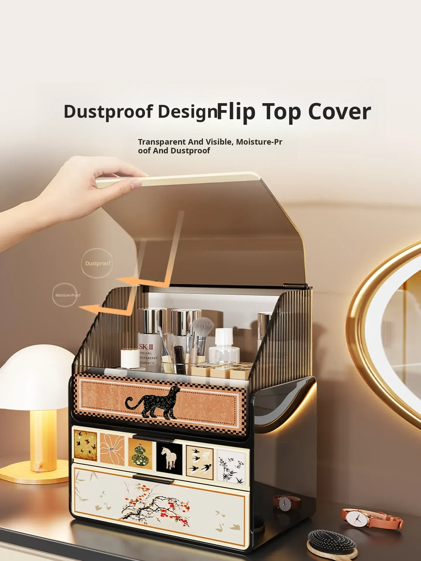 Elegant Flip-Top Cosmetic Organizer Box - Large Capacity, Dust-Proof Makeup Storage for Vanity, Perfect for Skincare Products and Face Masks