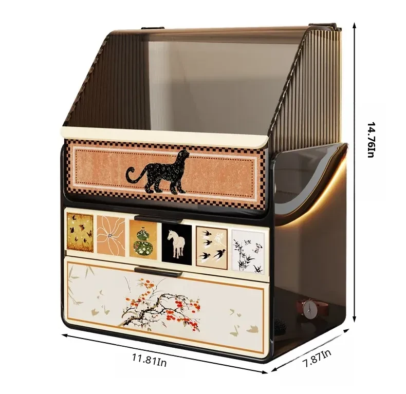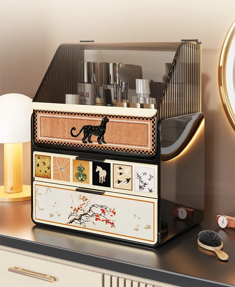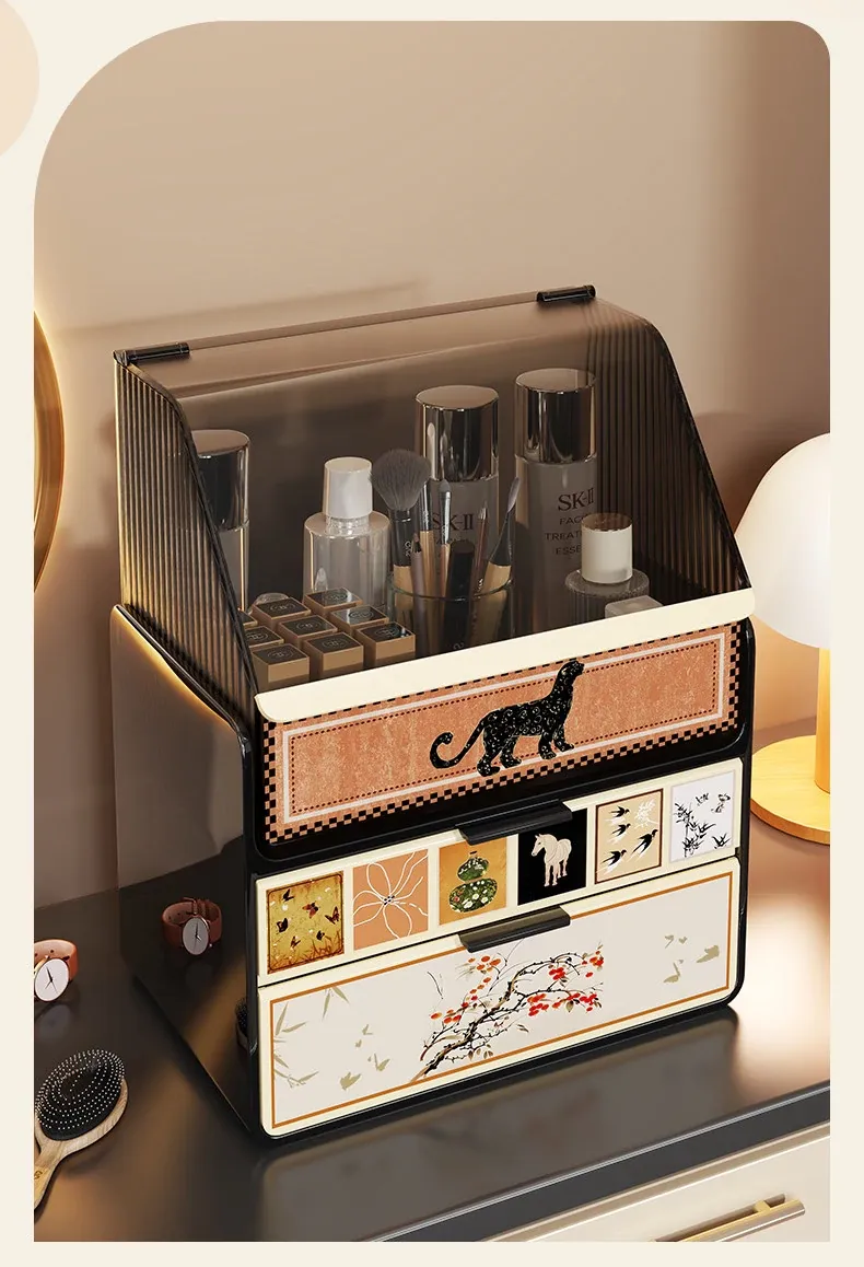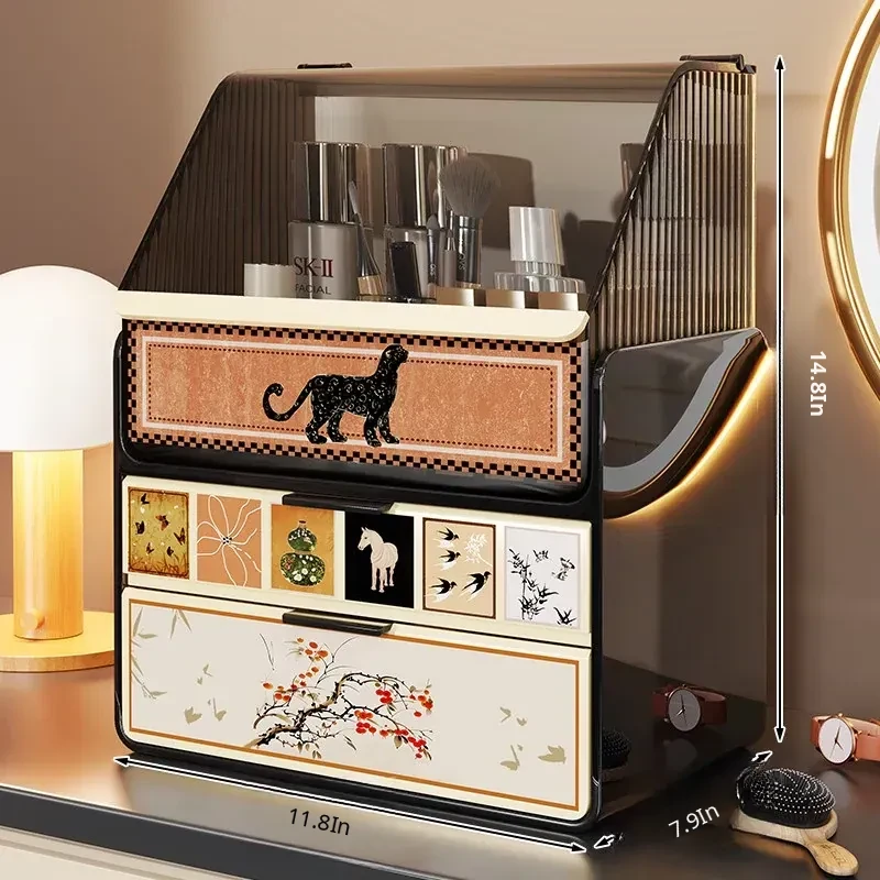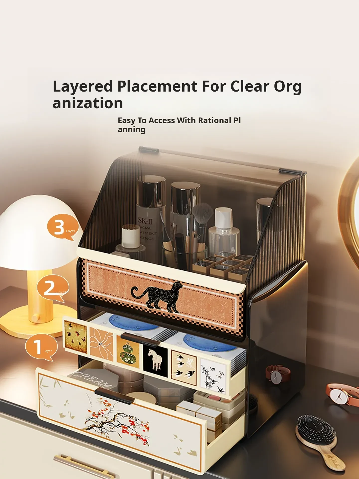 Elegant Flip-Top Cosmetic Organizer Box - Large Capacity, Dust-Proof Makeup Storage for Vanity, Perfect for Skincare Products and Face Masks