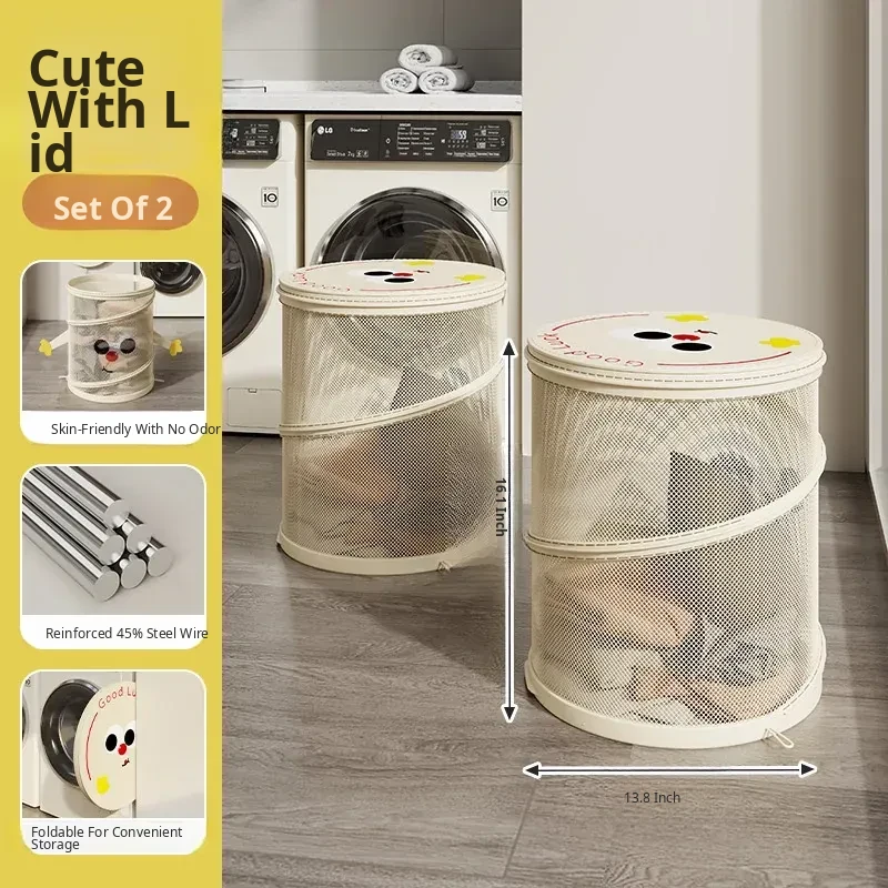 Cute Style with Lid, 2 Pieces [Washable/Foldable]