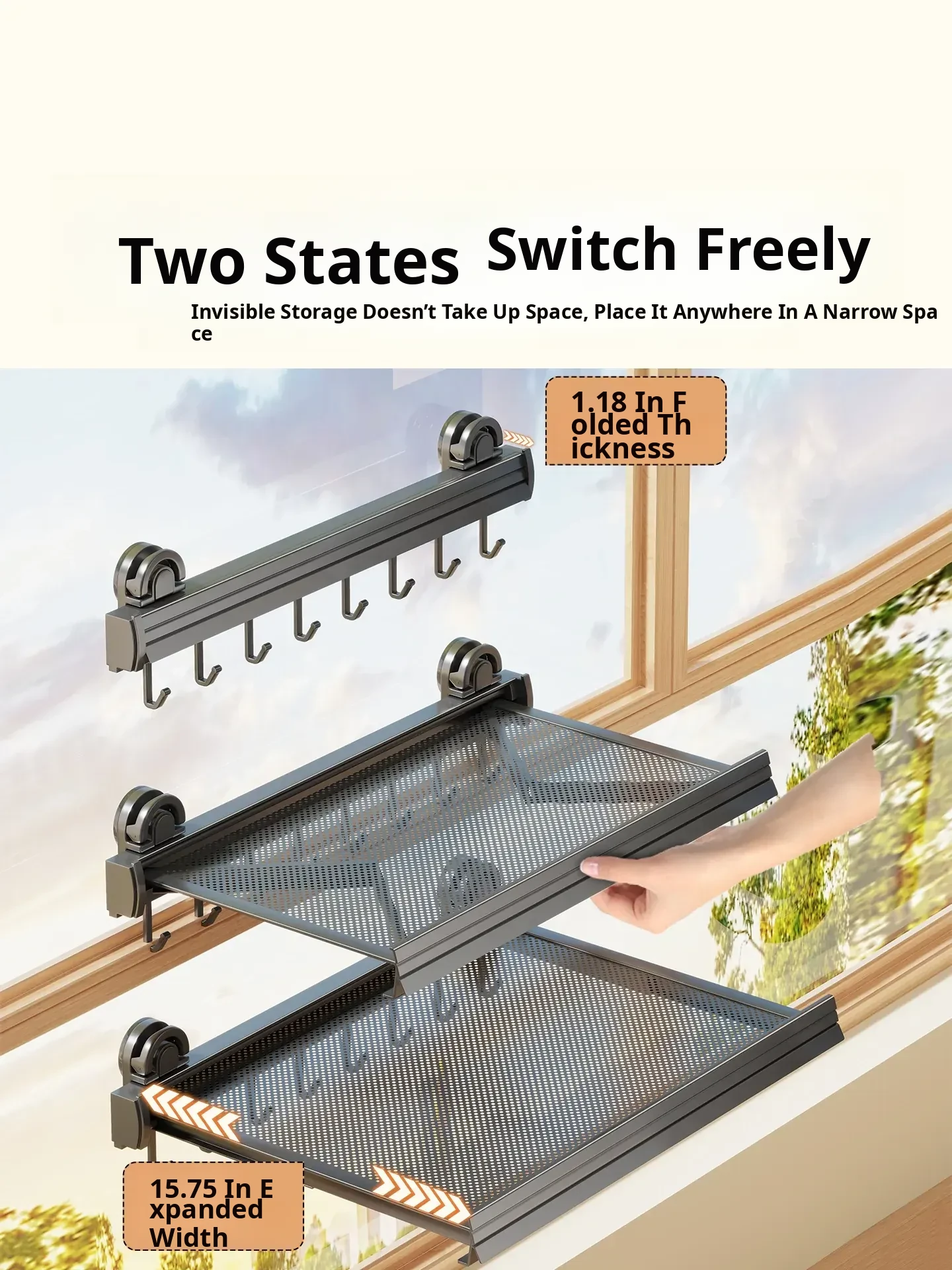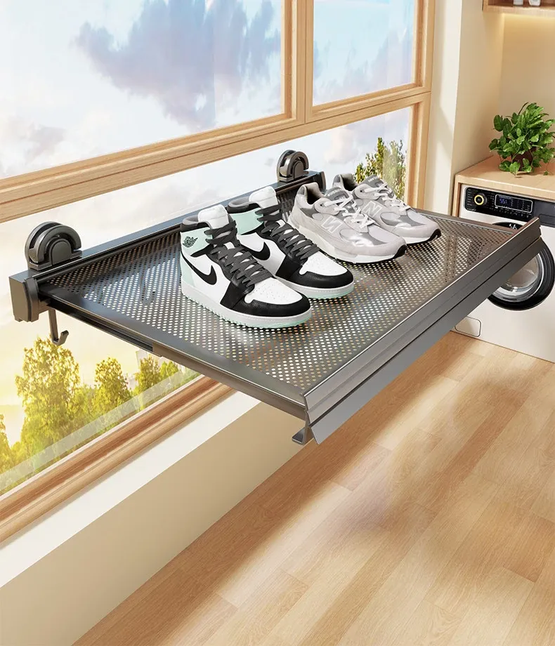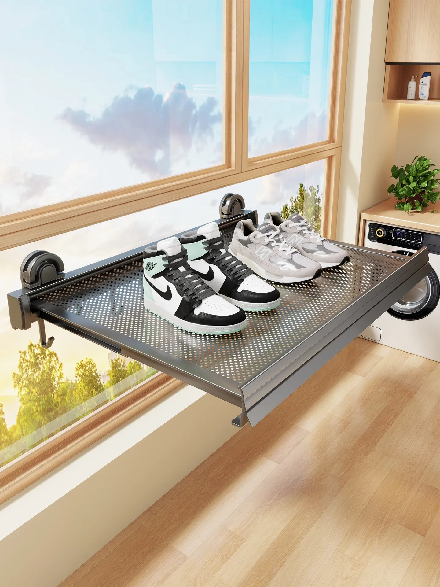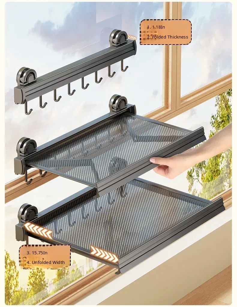 Invisible Folding Balcony Clothes Drying Rack - Telescopic Window Railing Clothesline, No Drilling Needed, Perfect for Shoes and Socks Drying! Ideal Space-Saving Solution for Balcony and Outdoor Use!