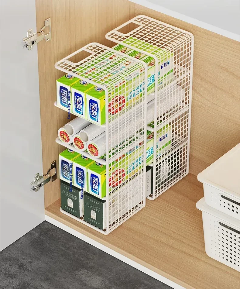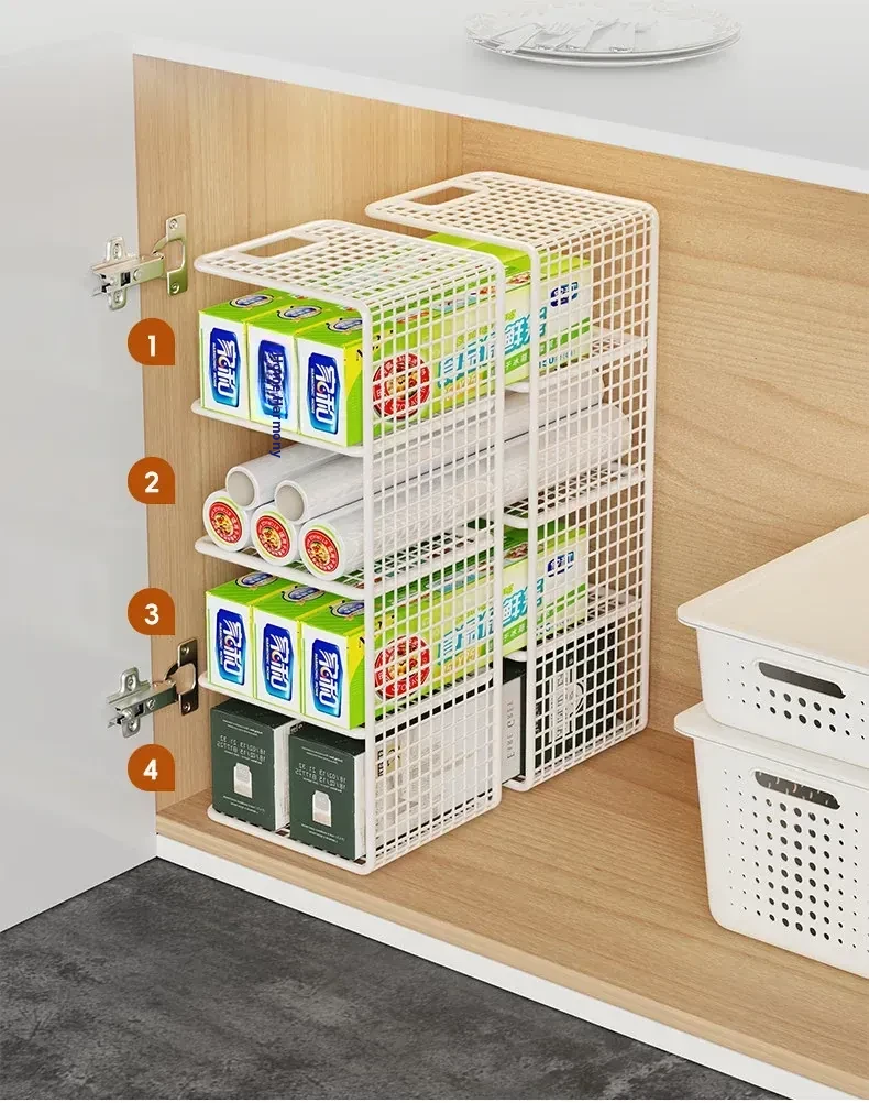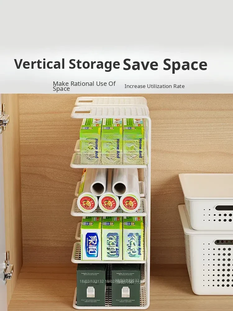 Kitchen Cling Film Storage Rack - Space-Saving Organizer for Under-Sink Dividers and Multi-Layer Cabinet Shelves - Perfect for Efficient Organization and Easy Access!