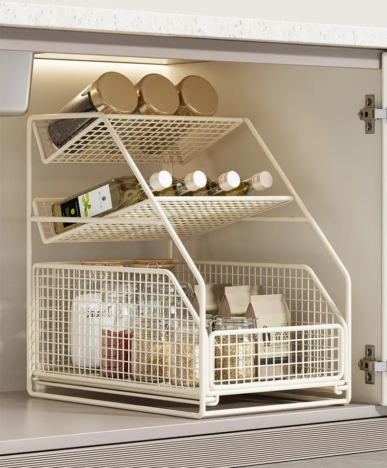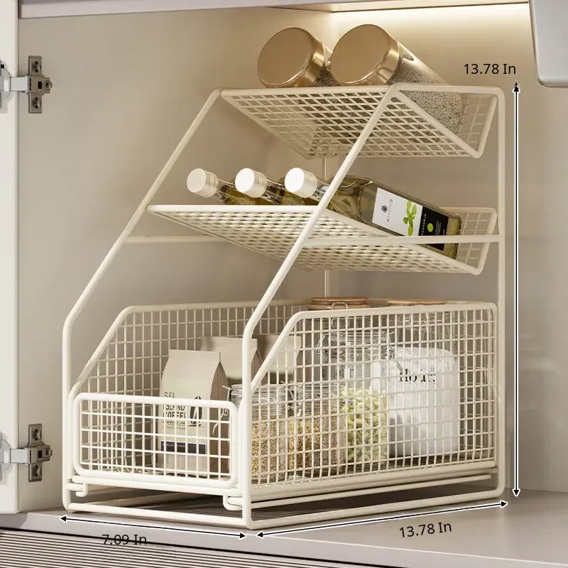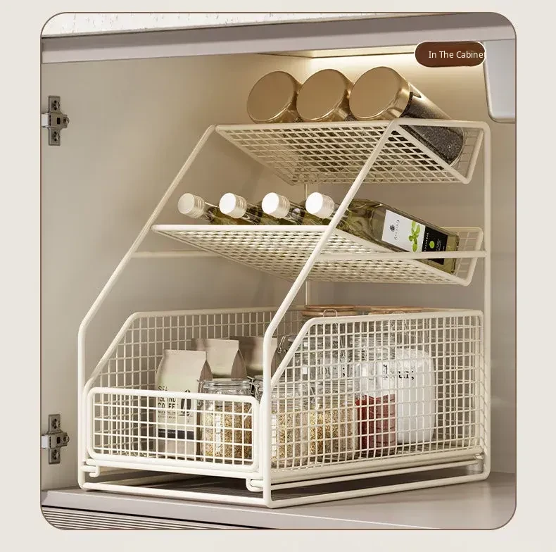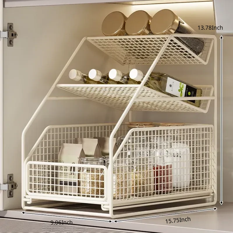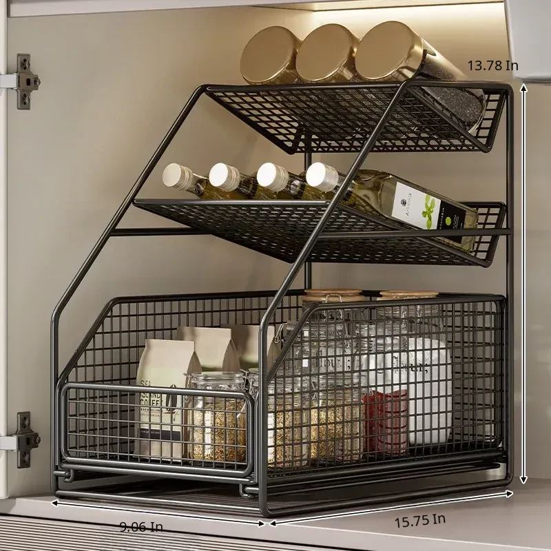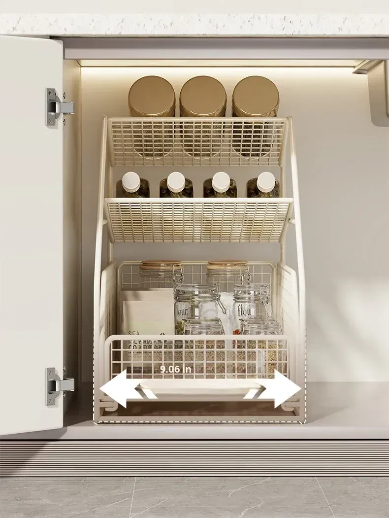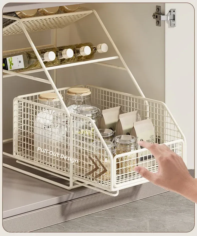 Kitchen Pull-Out Storage Rack – Multi-Layer Organizer for Cabinets, Super Deep Drawer Basket for Stoves and Sinks, Ultimate Space-Saving Solution!