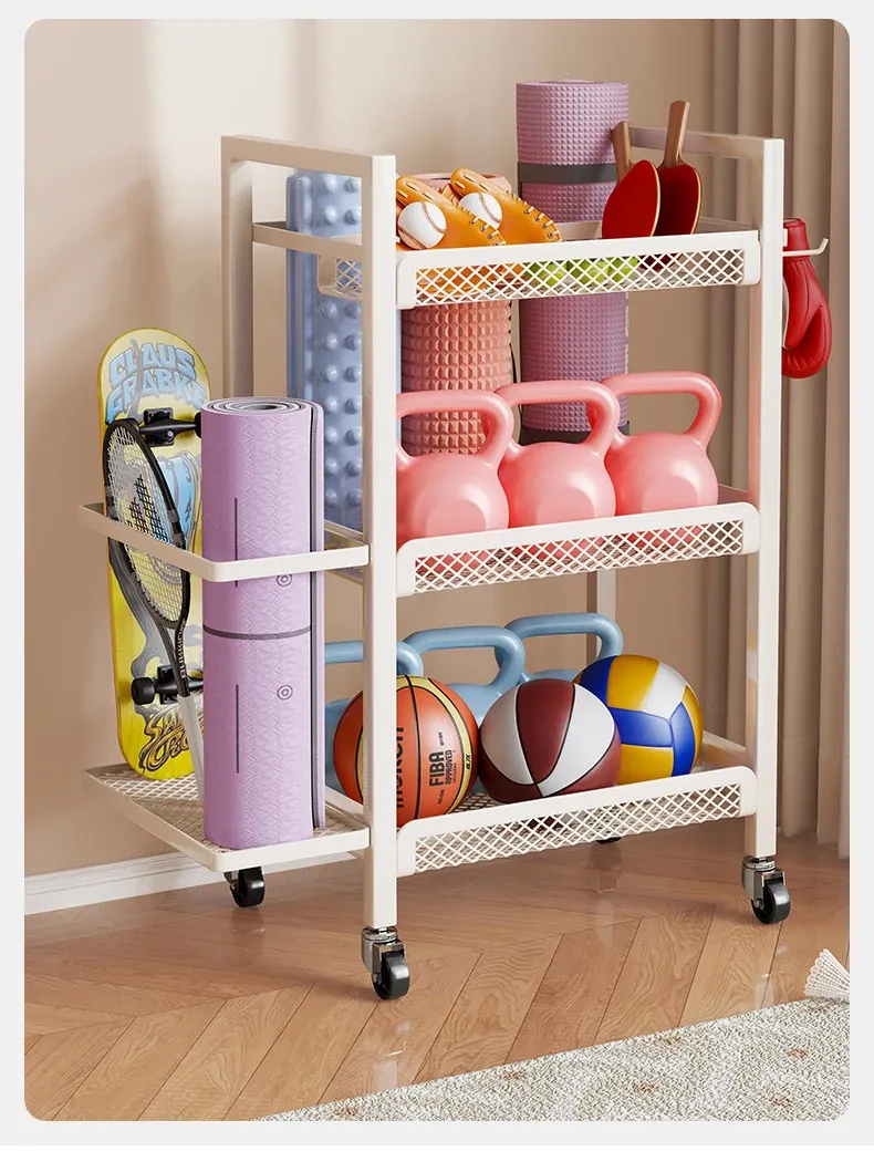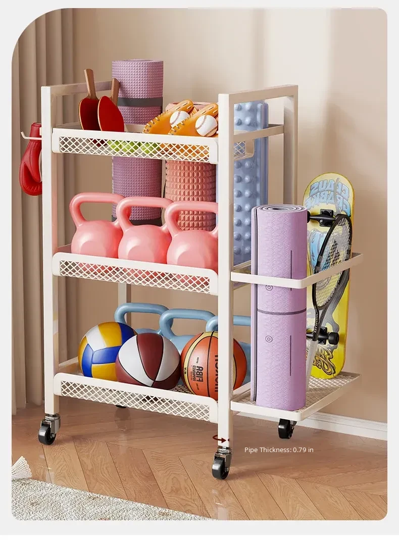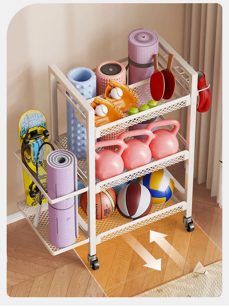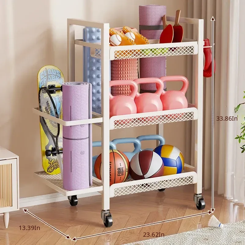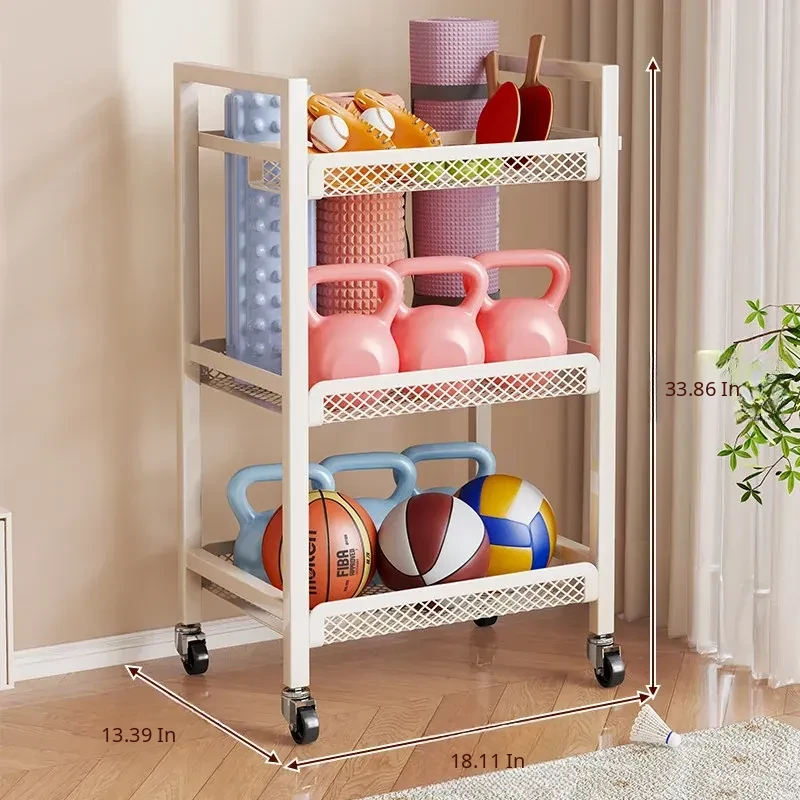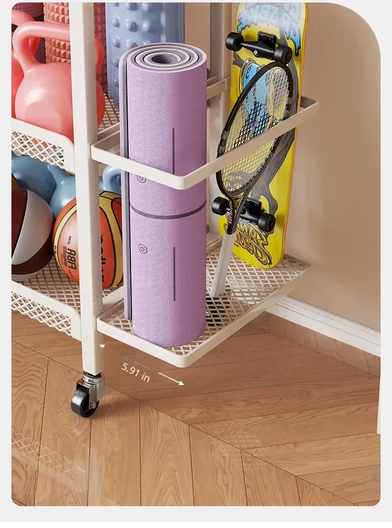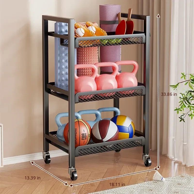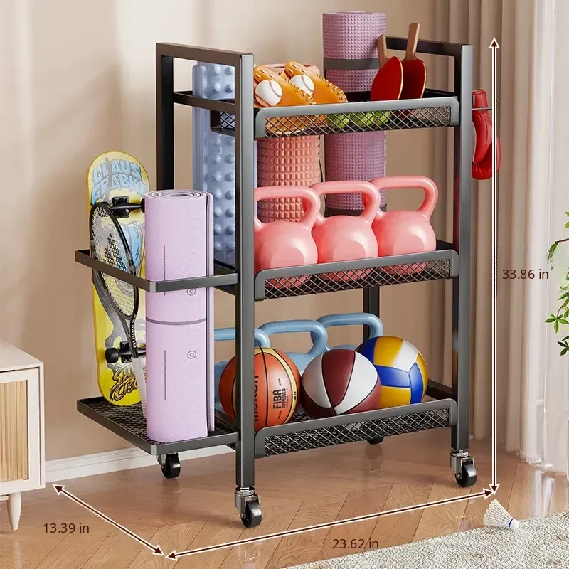 Large Capacity Home Gym Equipment Storage Rack with Wheels - Perfect for Organizing Sports Balls, Yoga Mats, Dumbbells, and Kettlebells. Keep Your Space Tidy and Workout Ready!