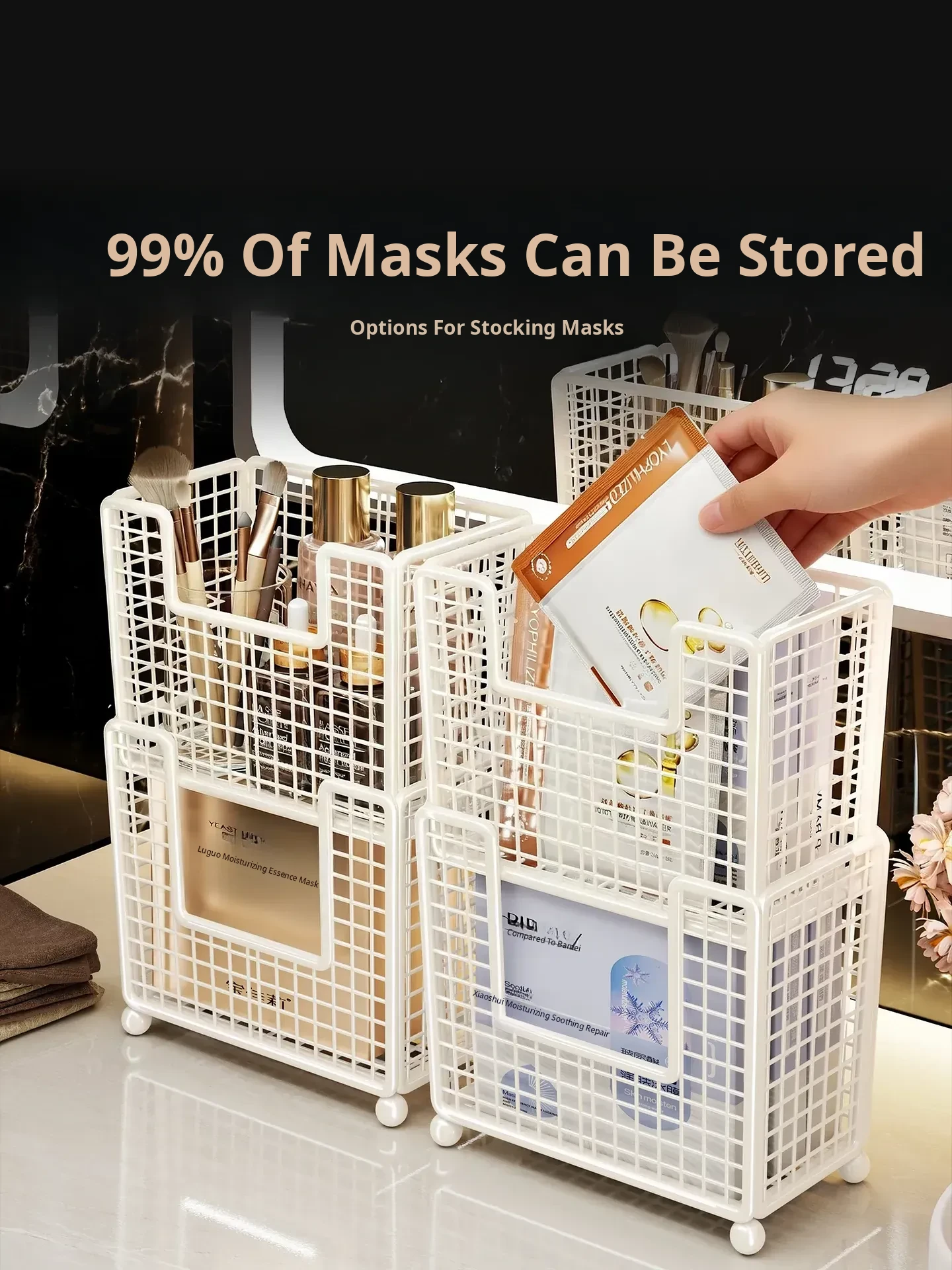 Large Capacity Multi-Layer Makeup Organizer - Stylish Desktop Storage Box for Face Masks, Lipsticks, and Skincare Products - Perfect for Organizing Your Beauty Essentials!