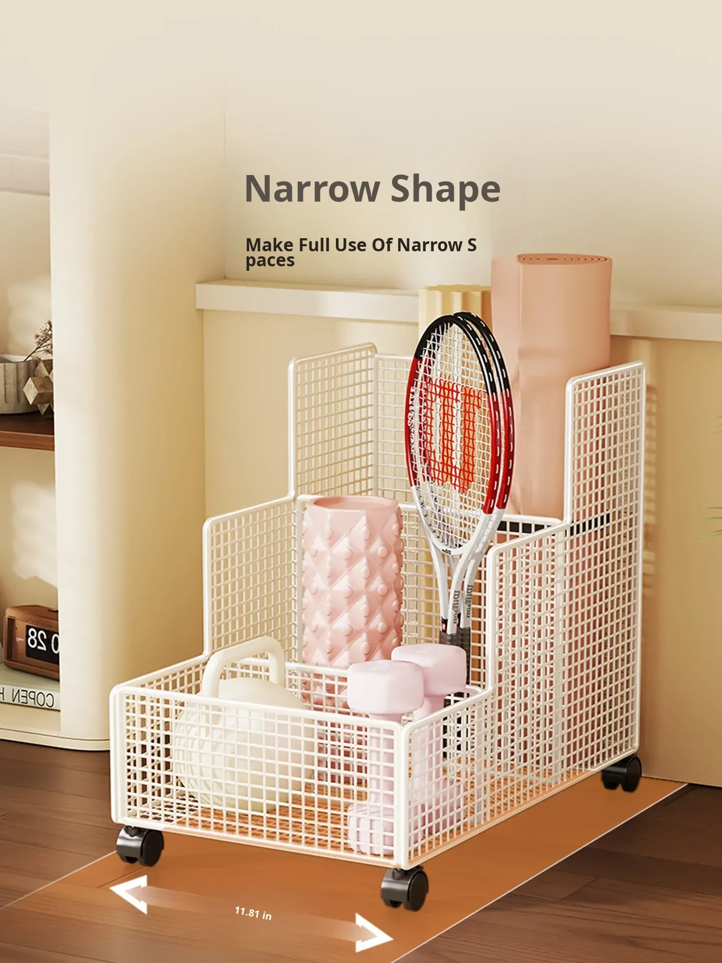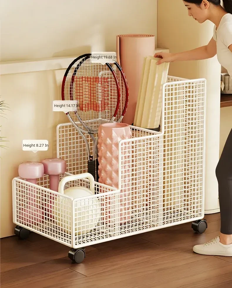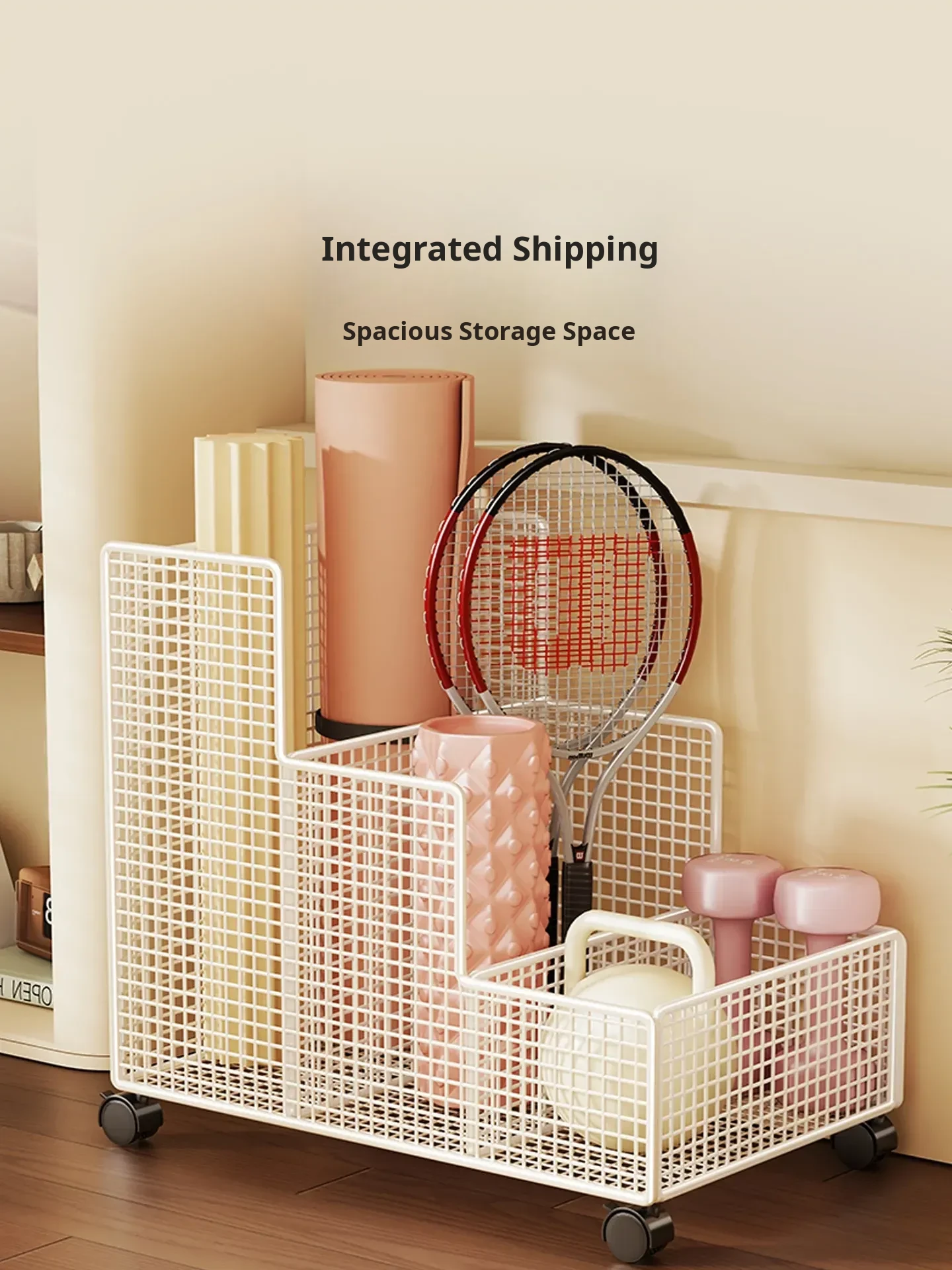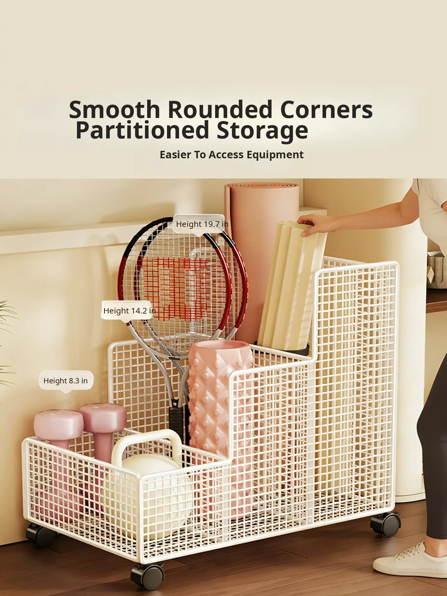 Large Capacity Yoga Mat Storage Basket with Wheels - Portable Fitness Equipment Organizer for Home, Perfect for Keeping Your Workout Space Tidy and Efficient!