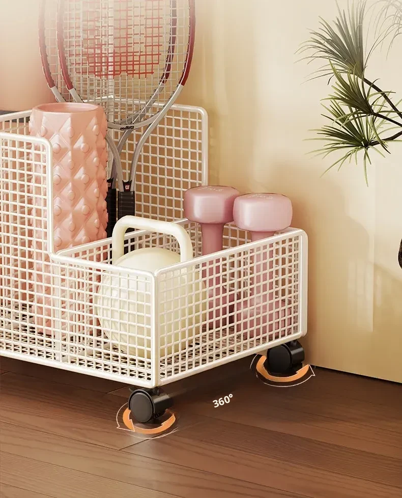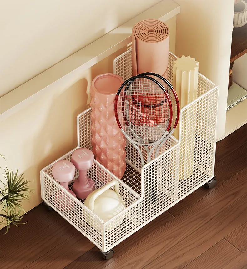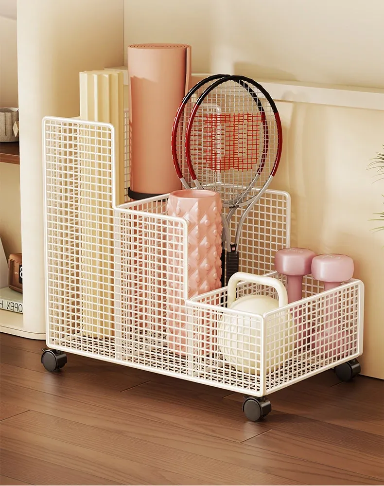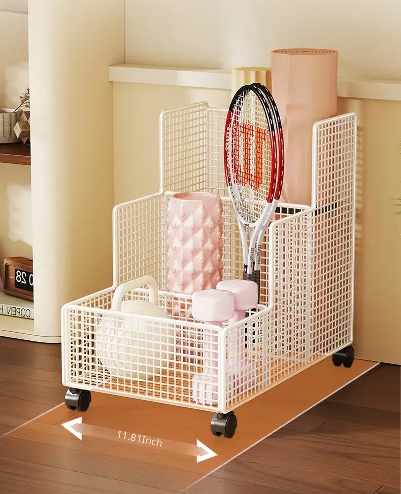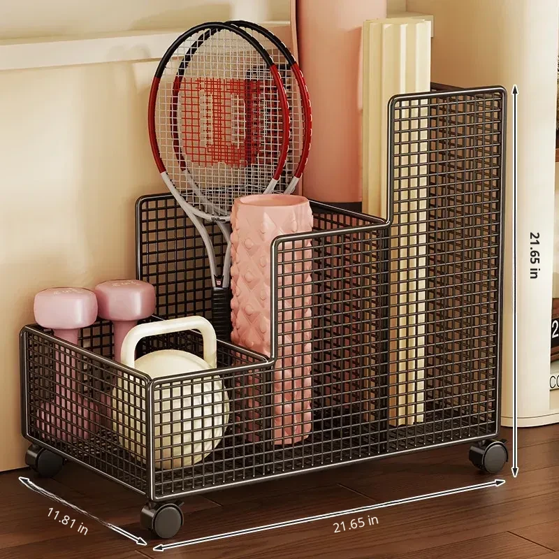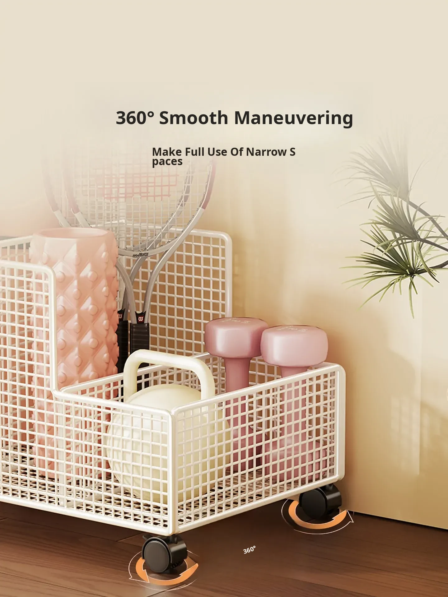 Large Capacity Yoga Mat Storage Basket with Wheels - Portable Fitness Equipment Organizer for Home, Perfect for Keeping Your Workout Space Tidy and Efficient!