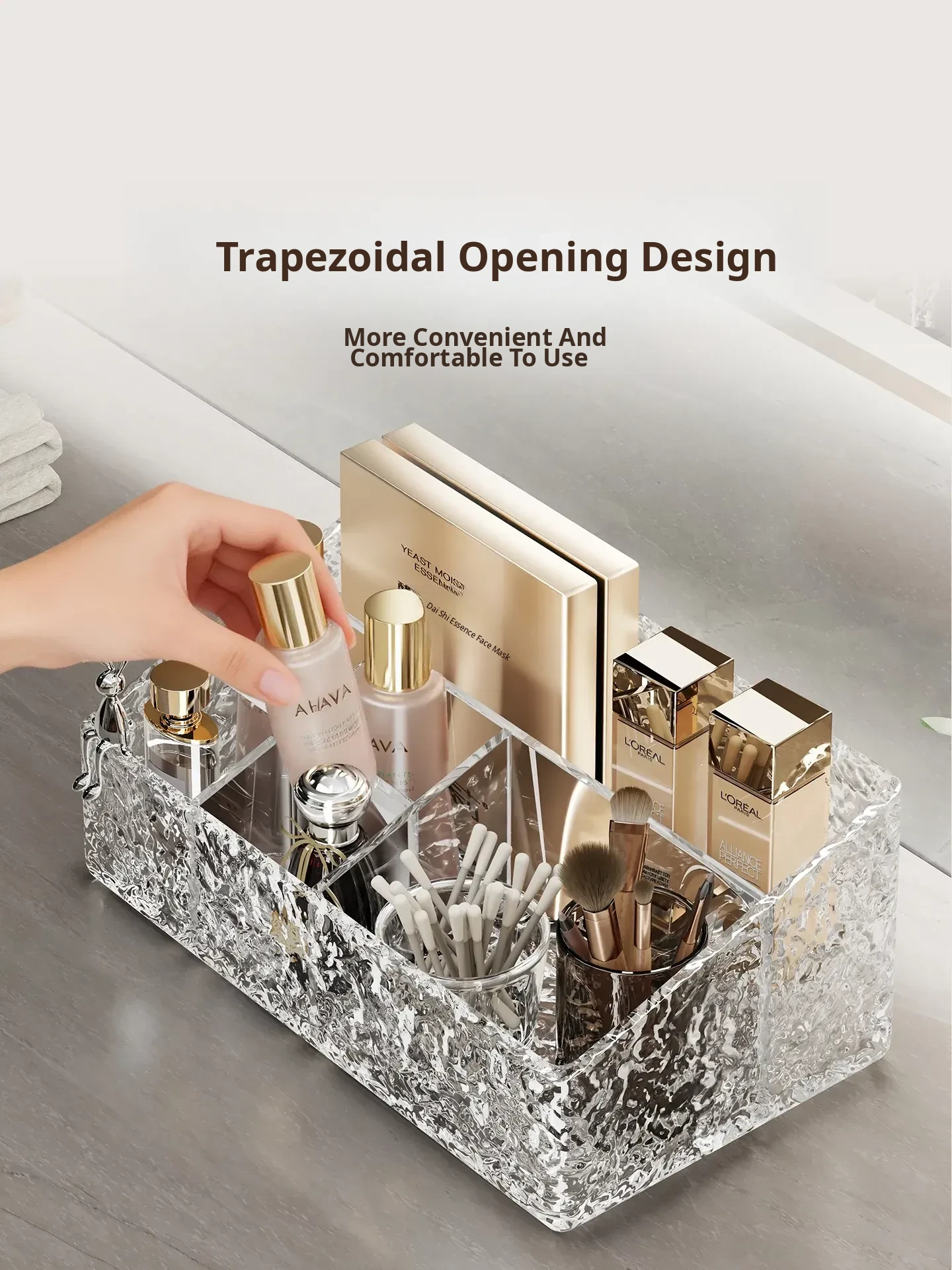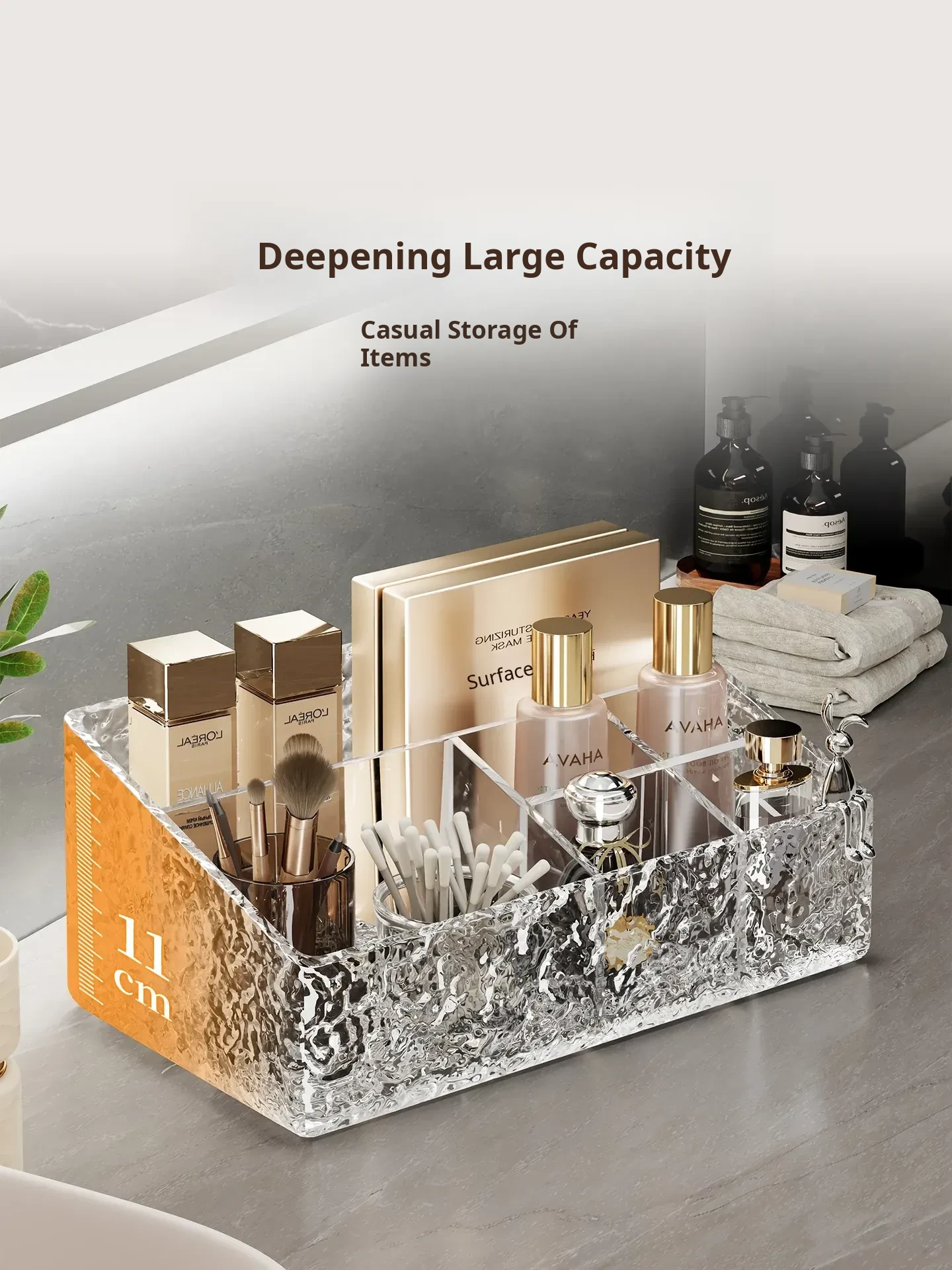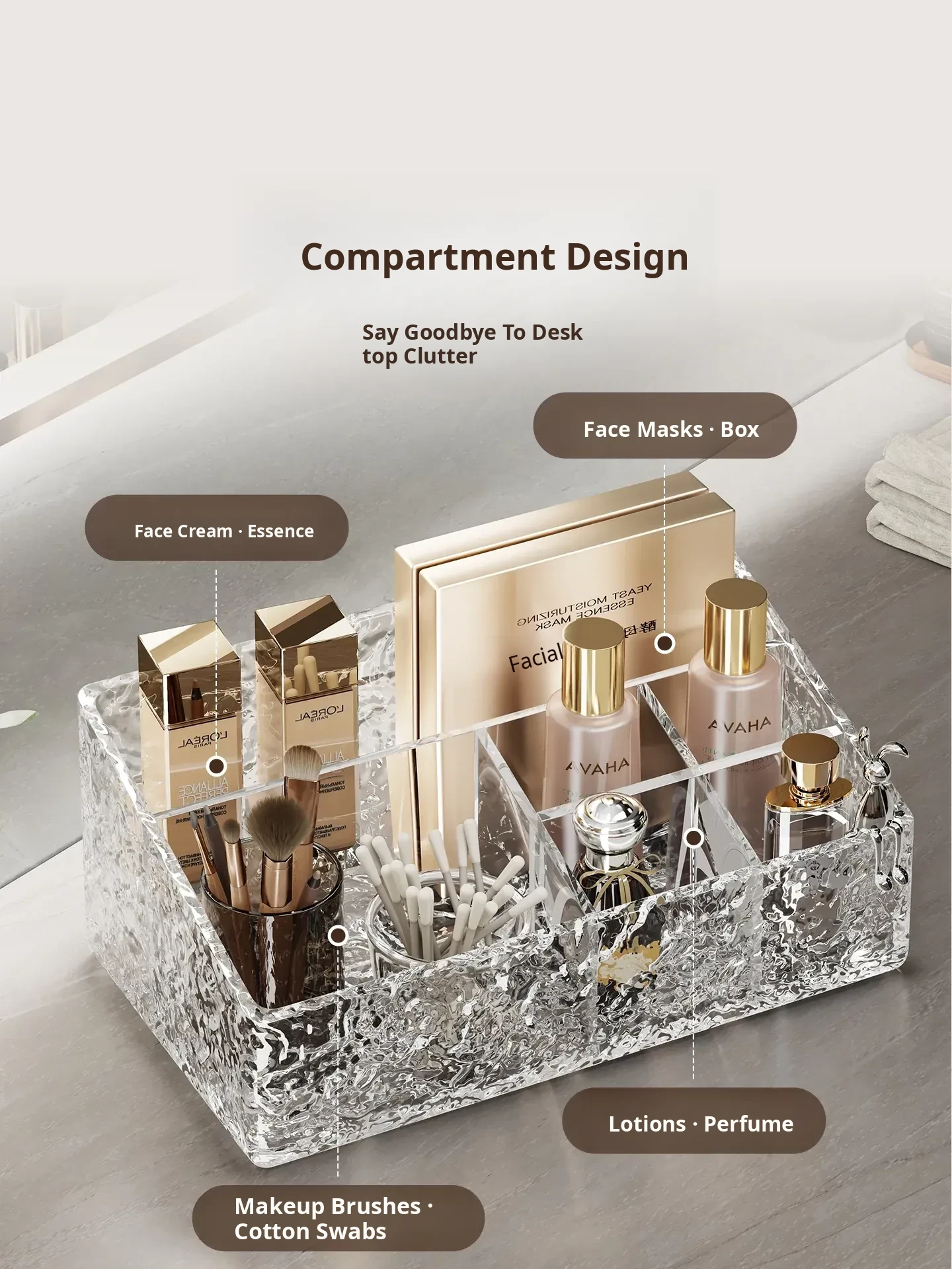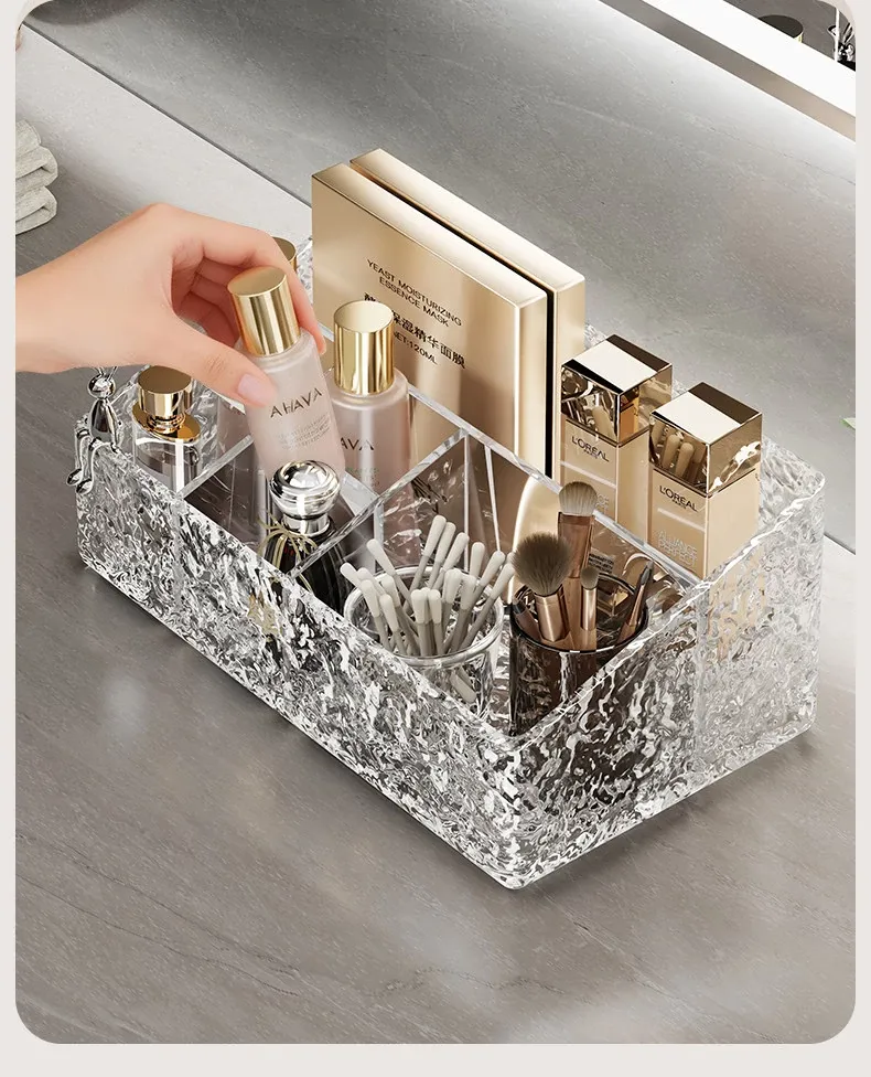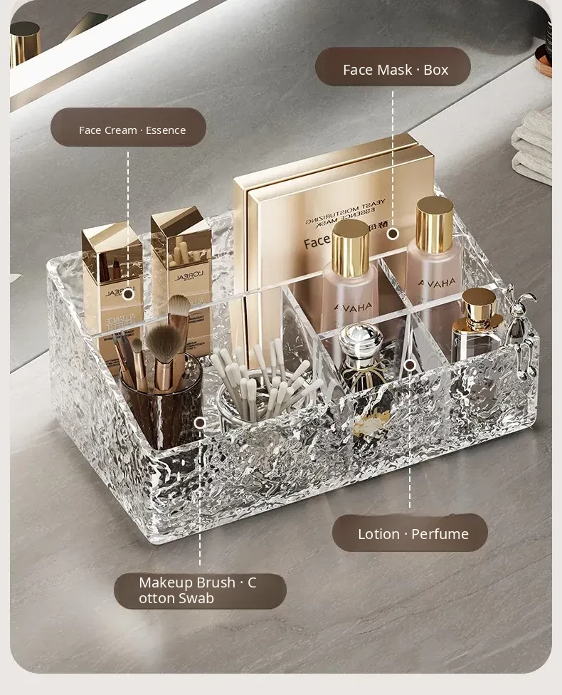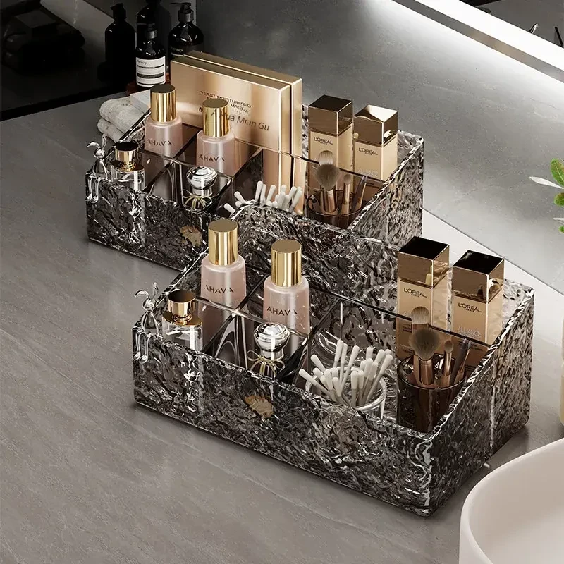 Luxury Skincare & Makeup Organizer - Elegant Bathroom Countertop Storage Box with Dividers for Lipsticks, Perfumes, and Beauty Products - Stylish Desktop Display Rack