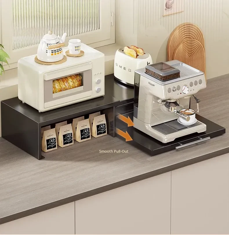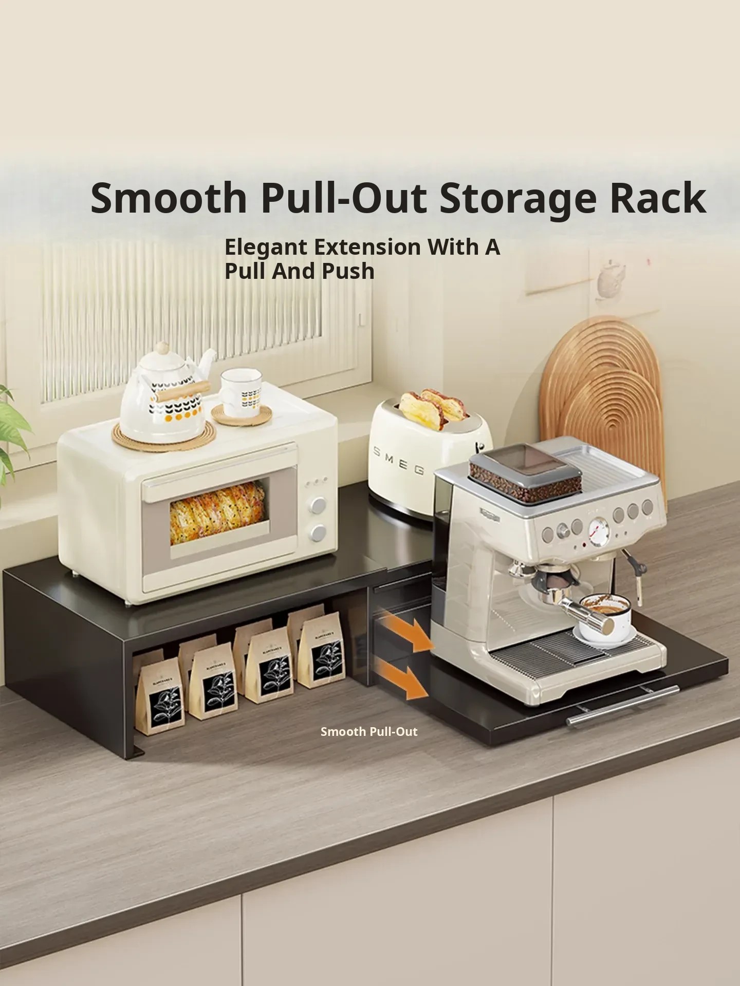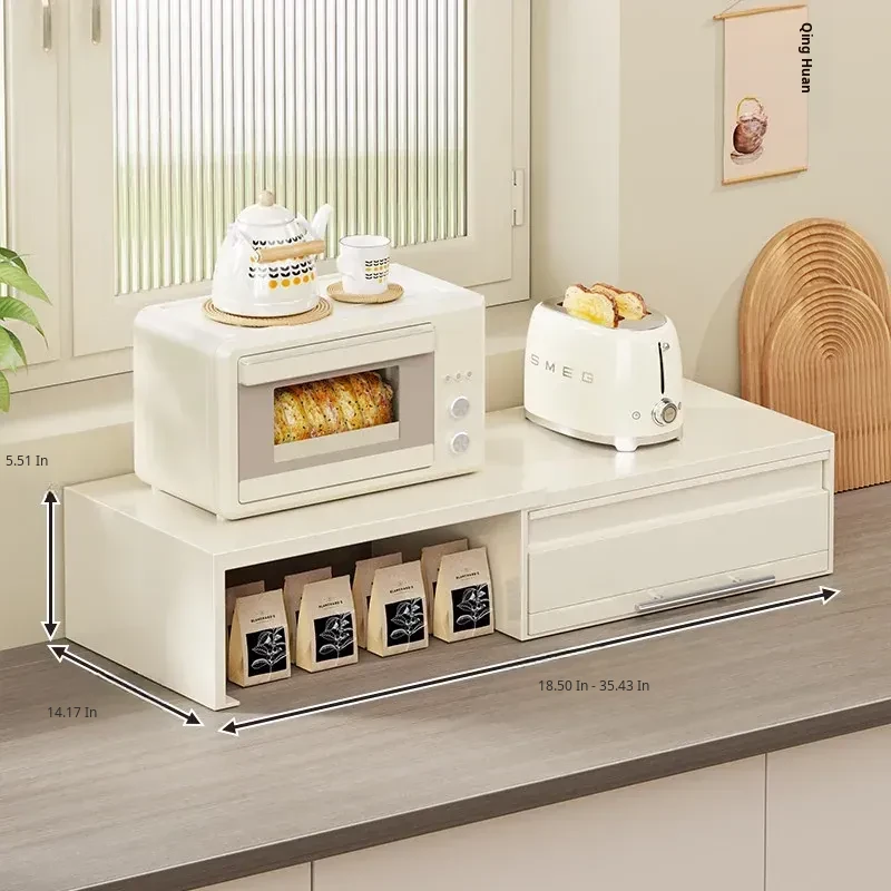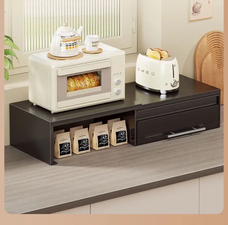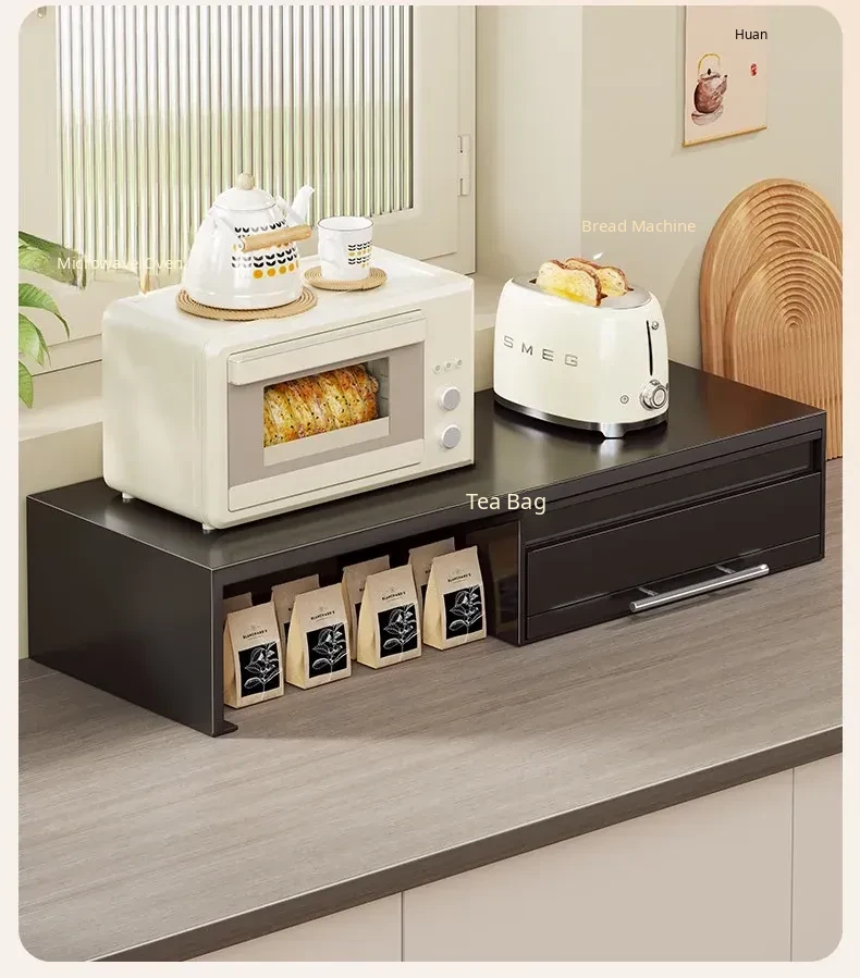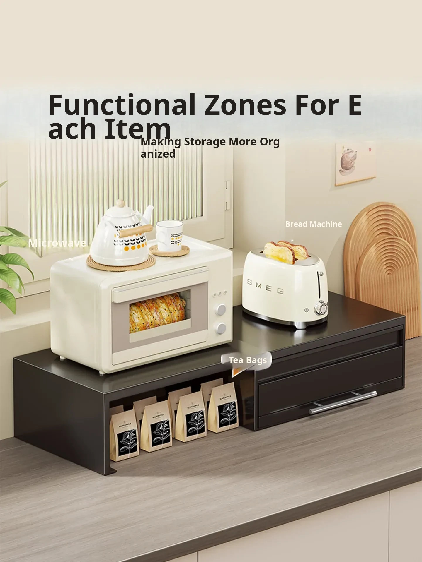 Microwave Rack for Kitchen - Sturdy Snack Organizer & Rice Cooker Stand with Pull-Out Drawer - Space-Saving Design for Efficient Storage
