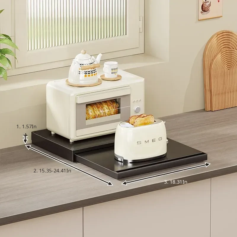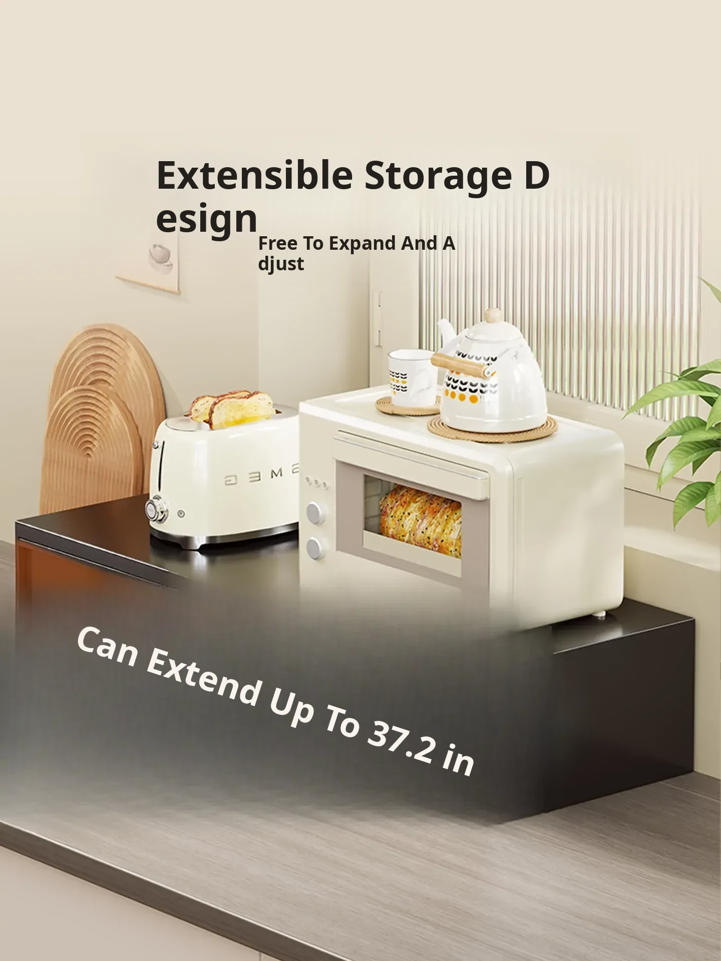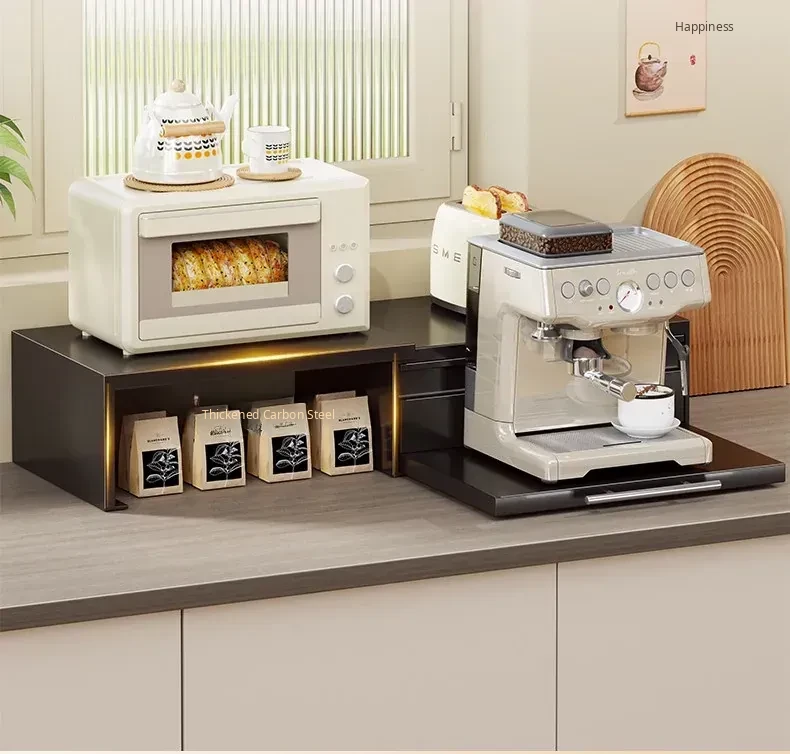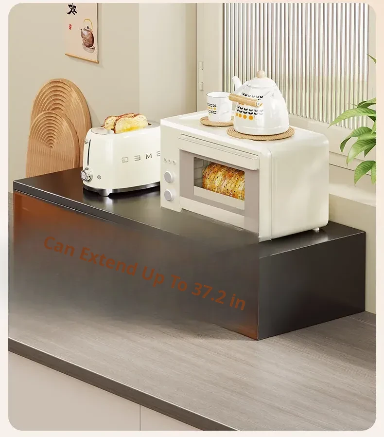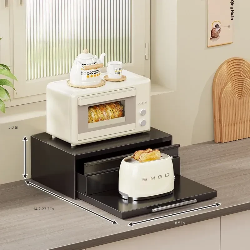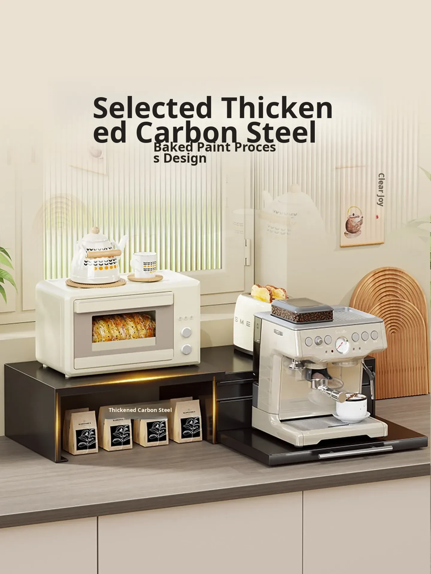 Microwave Rack for Kitchen - Sturdy Snack Organizer & Rice Cooker Stand with Pull-Out Drawer - Space-Saving Design for Efficient Storage