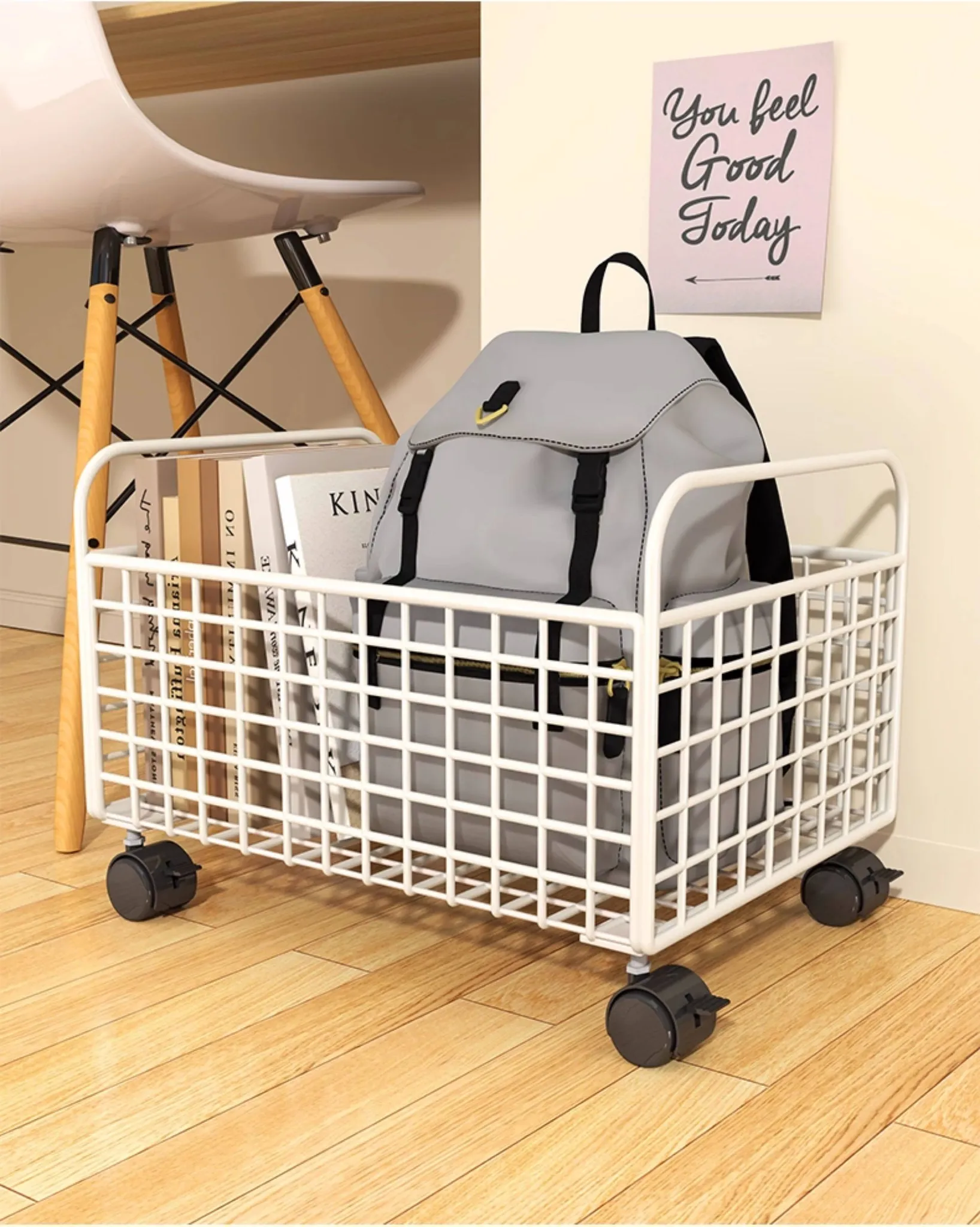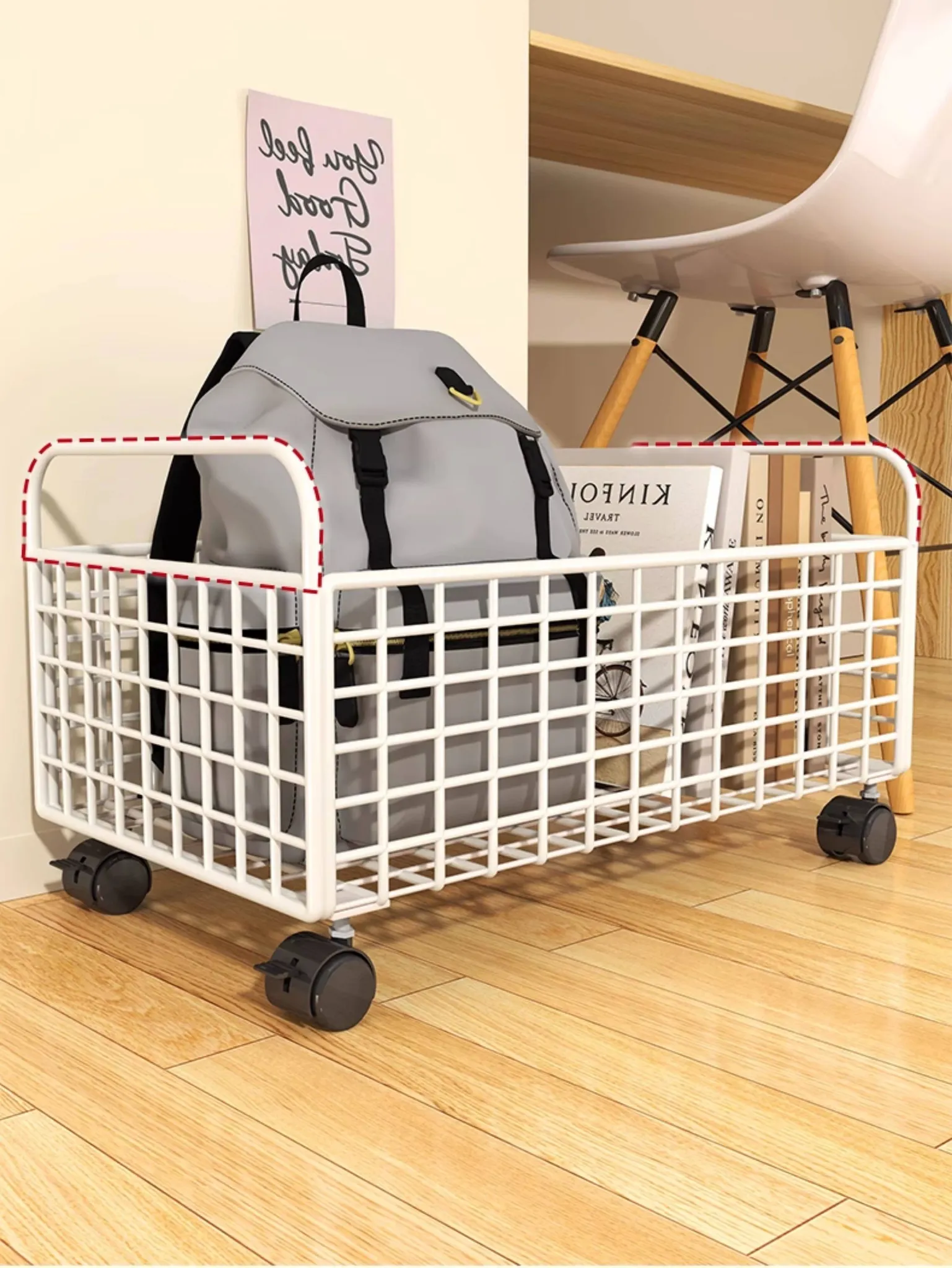Mobile Floor Book Bag Rack - The Ultimate Organizer for Your Study Desk! Perfect for Storing Books and Bags Under Your Desk, Keeping Your Space Neat and Tidy. Ideal for Students and Home Offices!
