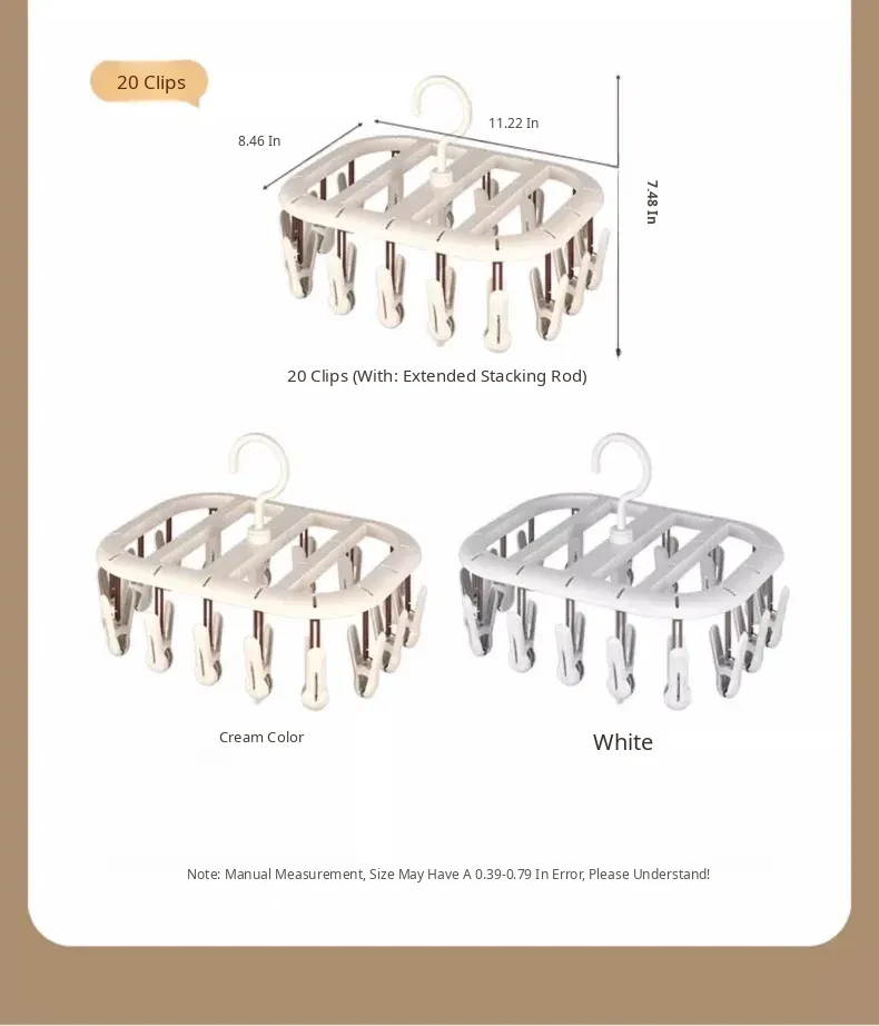 20 Clips of Cream Color [360°Rotation | Thickened and Can Be Hung]