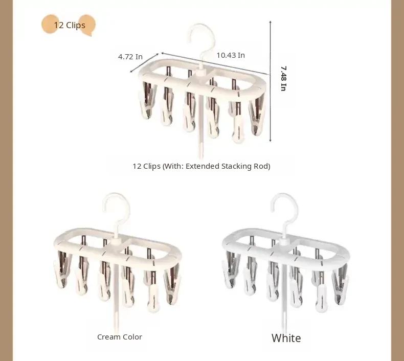 12 Clips of Cream Color [360°Rotation | Thickened and Can Be Hung]