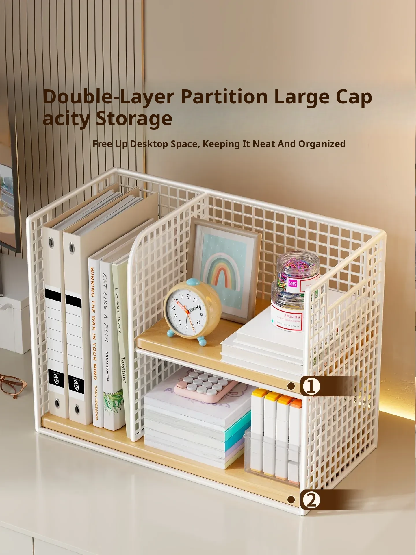 Multifunctional Desktop Organizer - Layered Storage Rack for Home & Office, Ideal for Students to Store Books, Files, and Documents, Perfect for Efficient Workspace Management