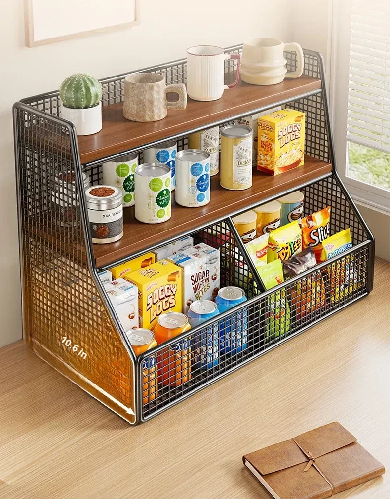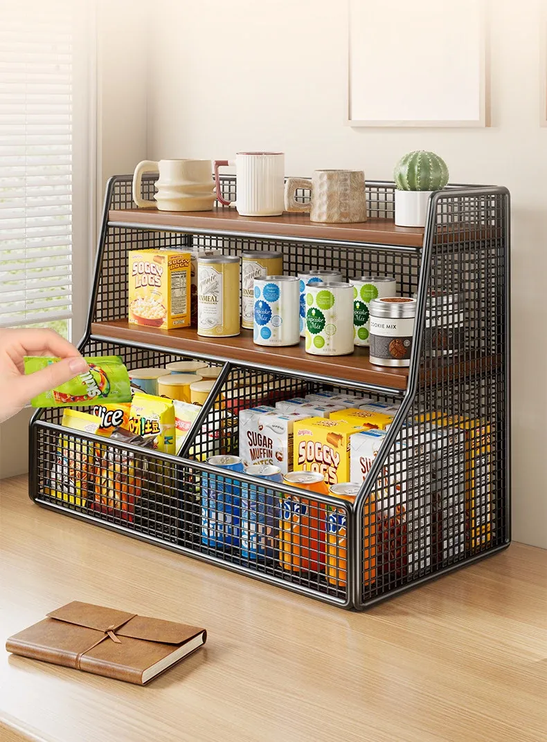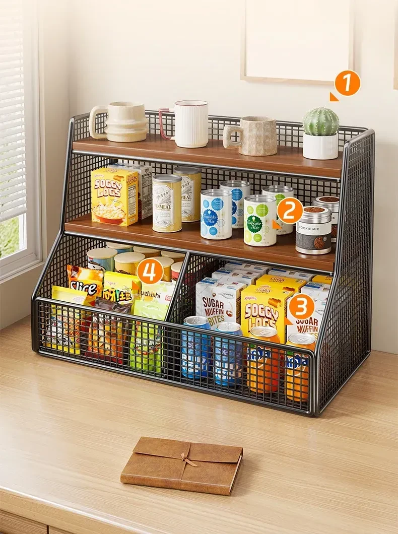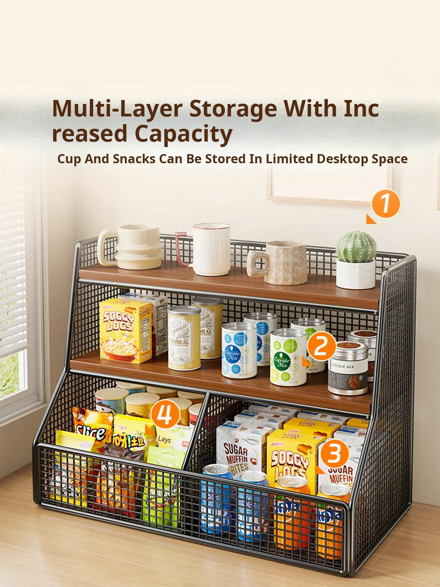 Multi-functional Desktop Organizer Rack for Tea Bags, Water Cups, and Snacks - Perfect for Home and Living Room, Space-saving Tiered Storage Solution for Your Dining Table!