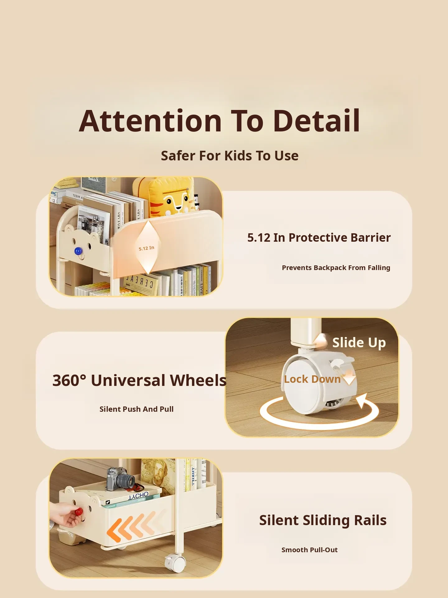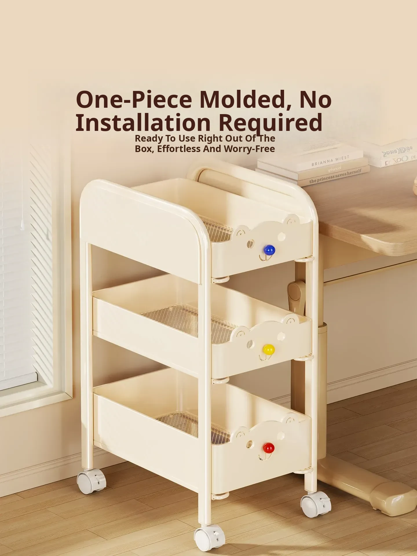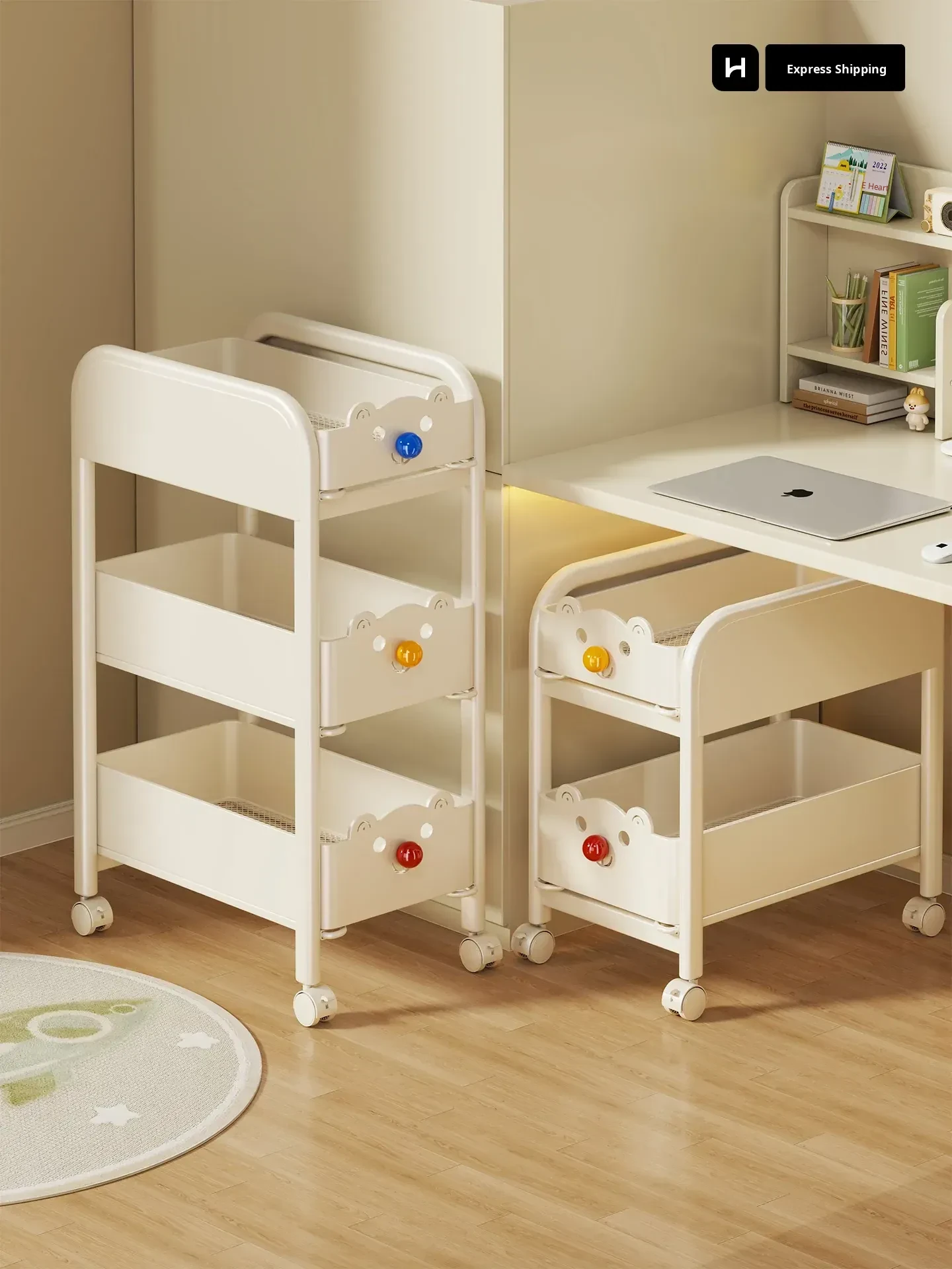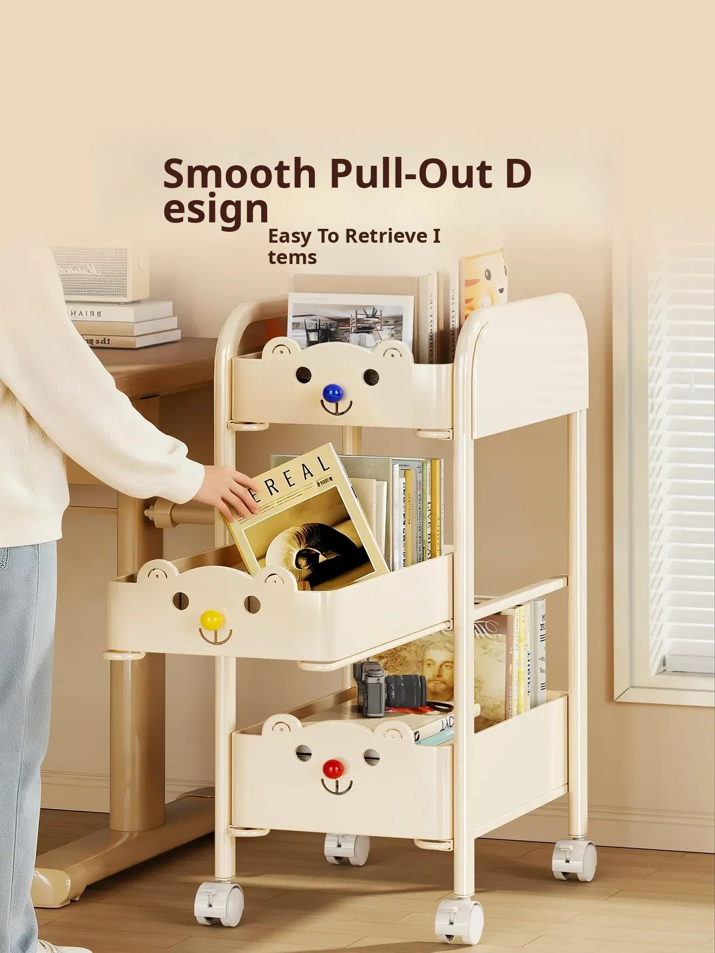 Multifunctional Rolling Cart with Shelves - Versatile Floor Storage Rack for Students' Books and Supplies, Perfect Under-Desk Organizer!