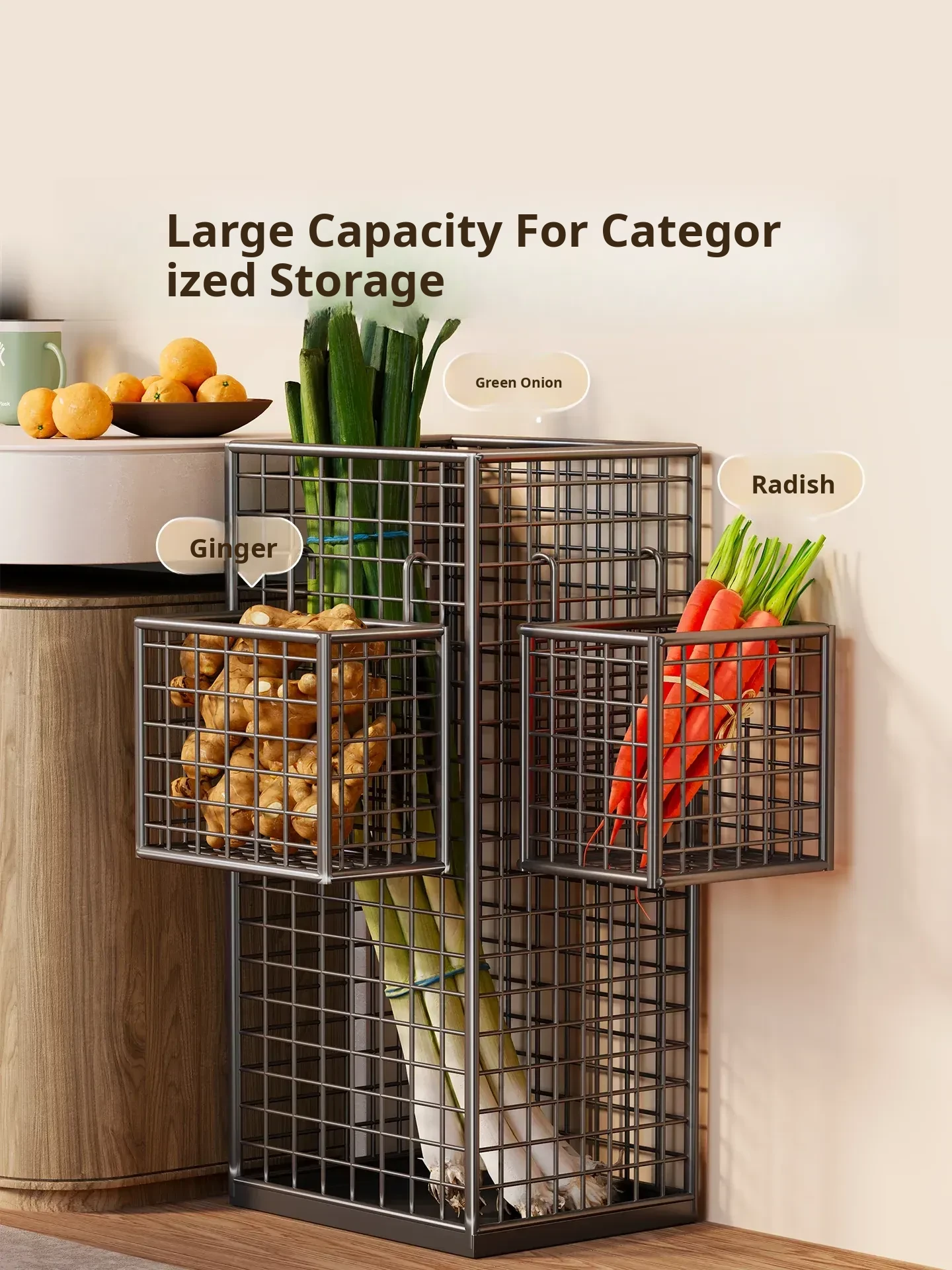 Multi-Functional Vegetable Storage Bin – Large Capacity Onion Organizer for Kitchen, Ideal for Yam, Ginger, and Garlic, Keep Your Kitchen Tidy and Organized!