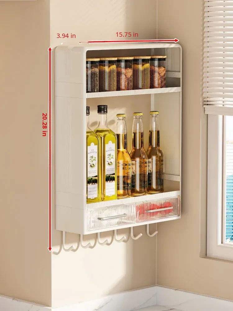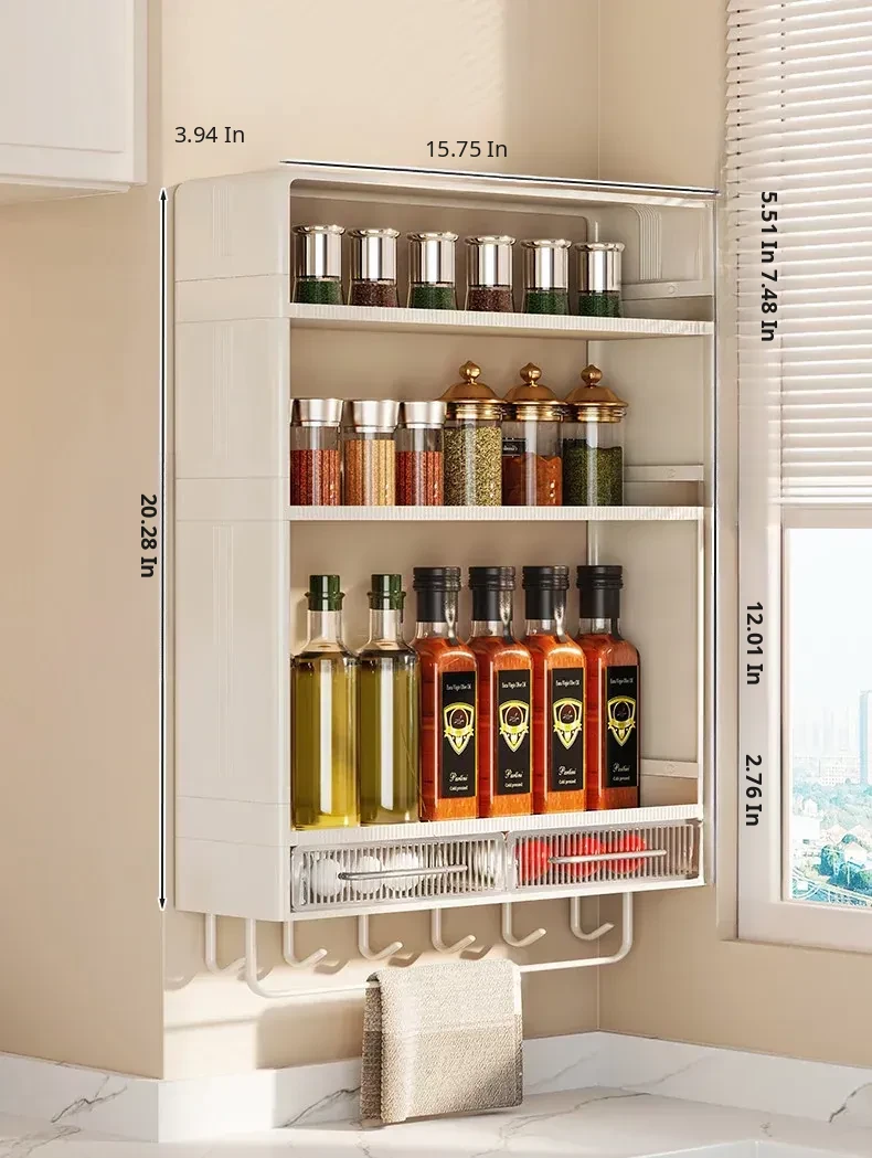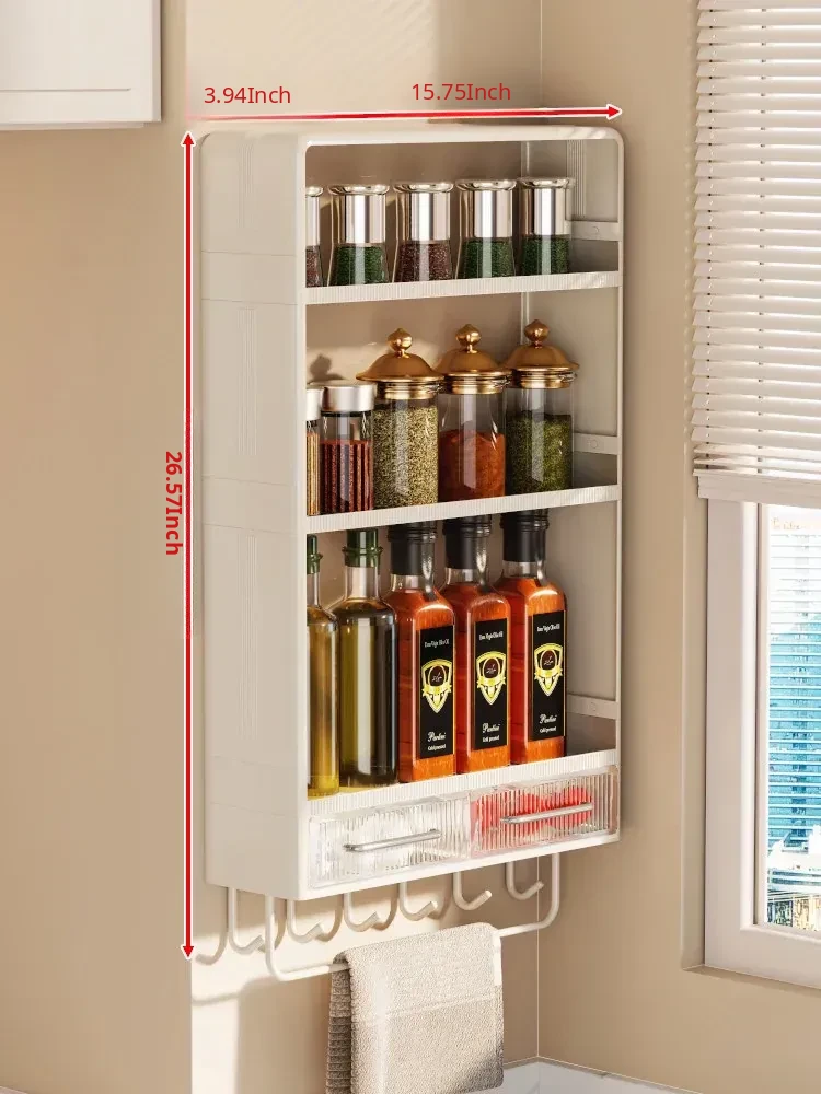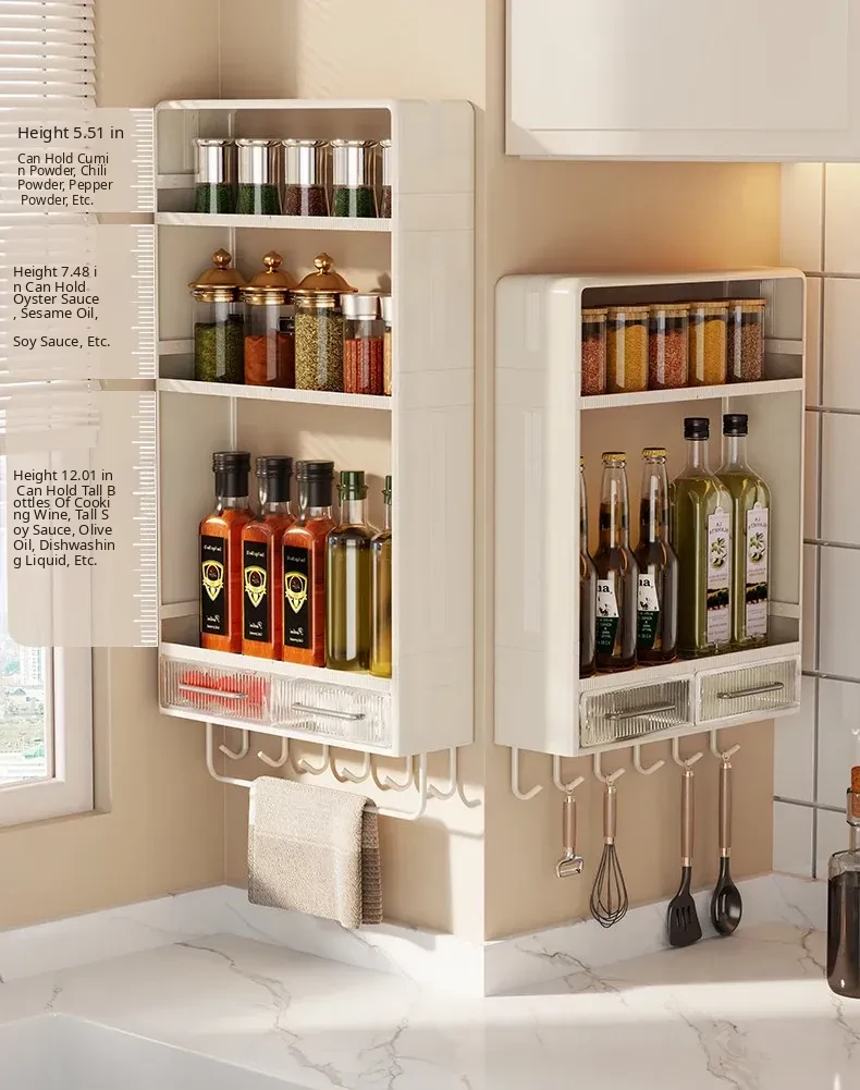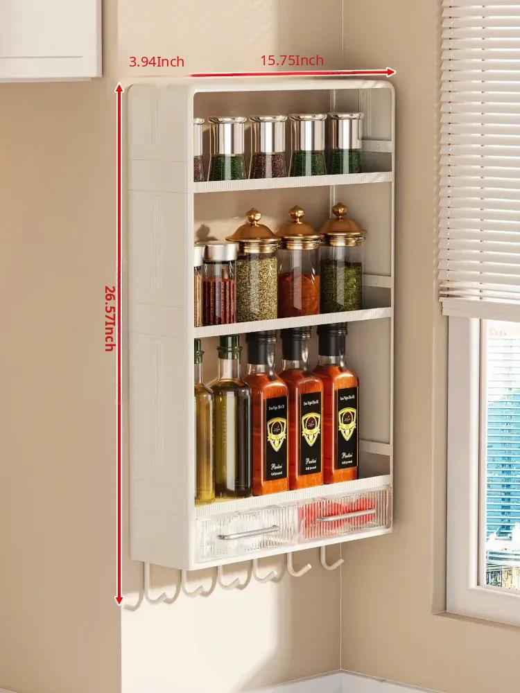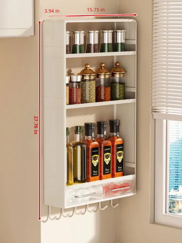 Multi-Functional Wall-Mounted Spice Rack - No Drilling Required! Perfect for Storing Garlic, Ginger, and Seasonings in Your Kitchen - Organize Your Space with Ease!