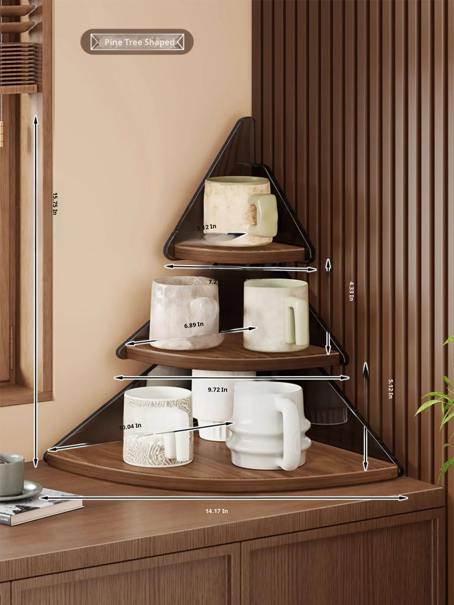⭐Pine Tree Shape⭐Corner Shelf [Walnut-Black Tea]