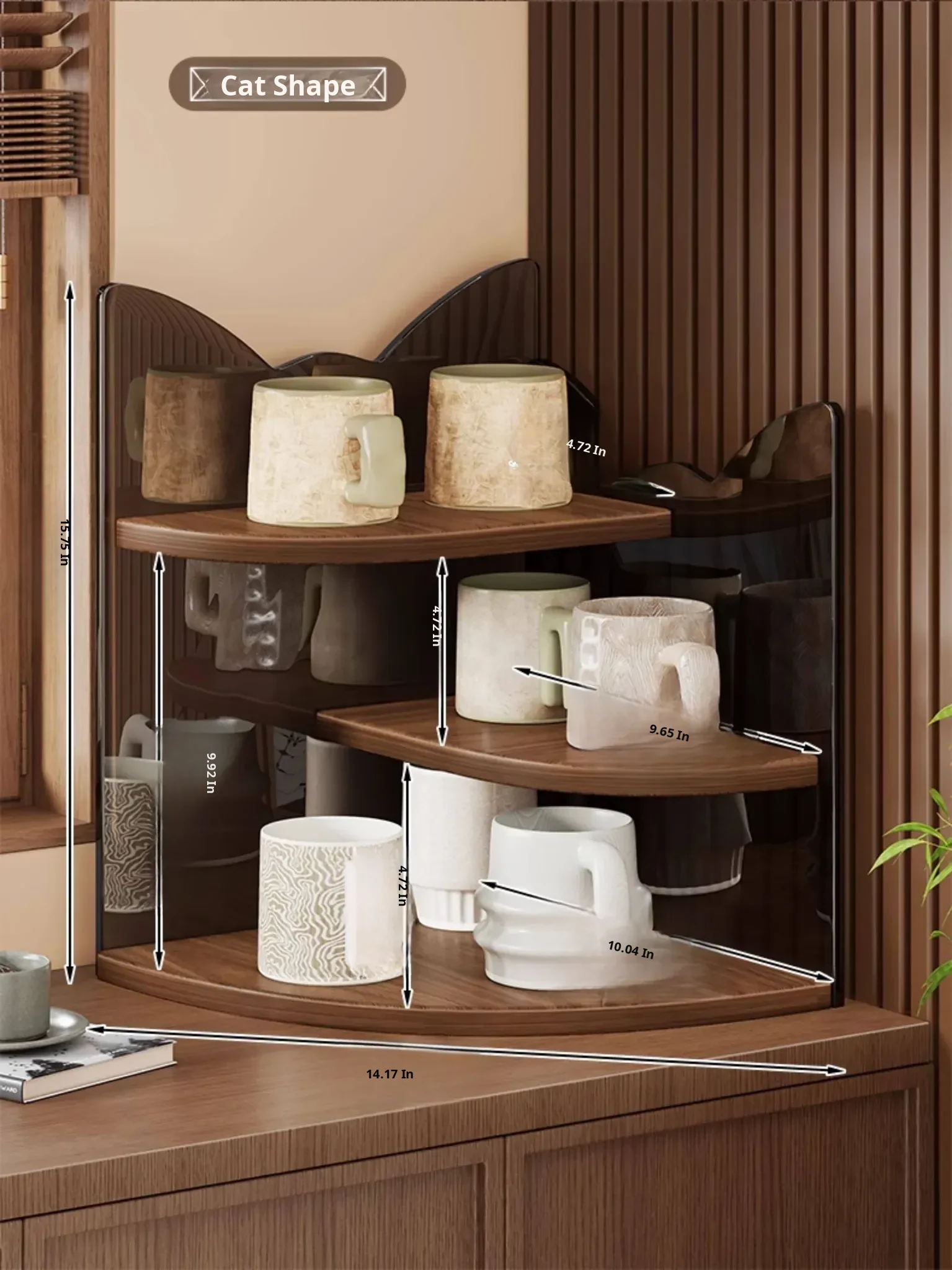 ❣ Cat Design ❣ Corner Shelf [Walnut-Black Tea]