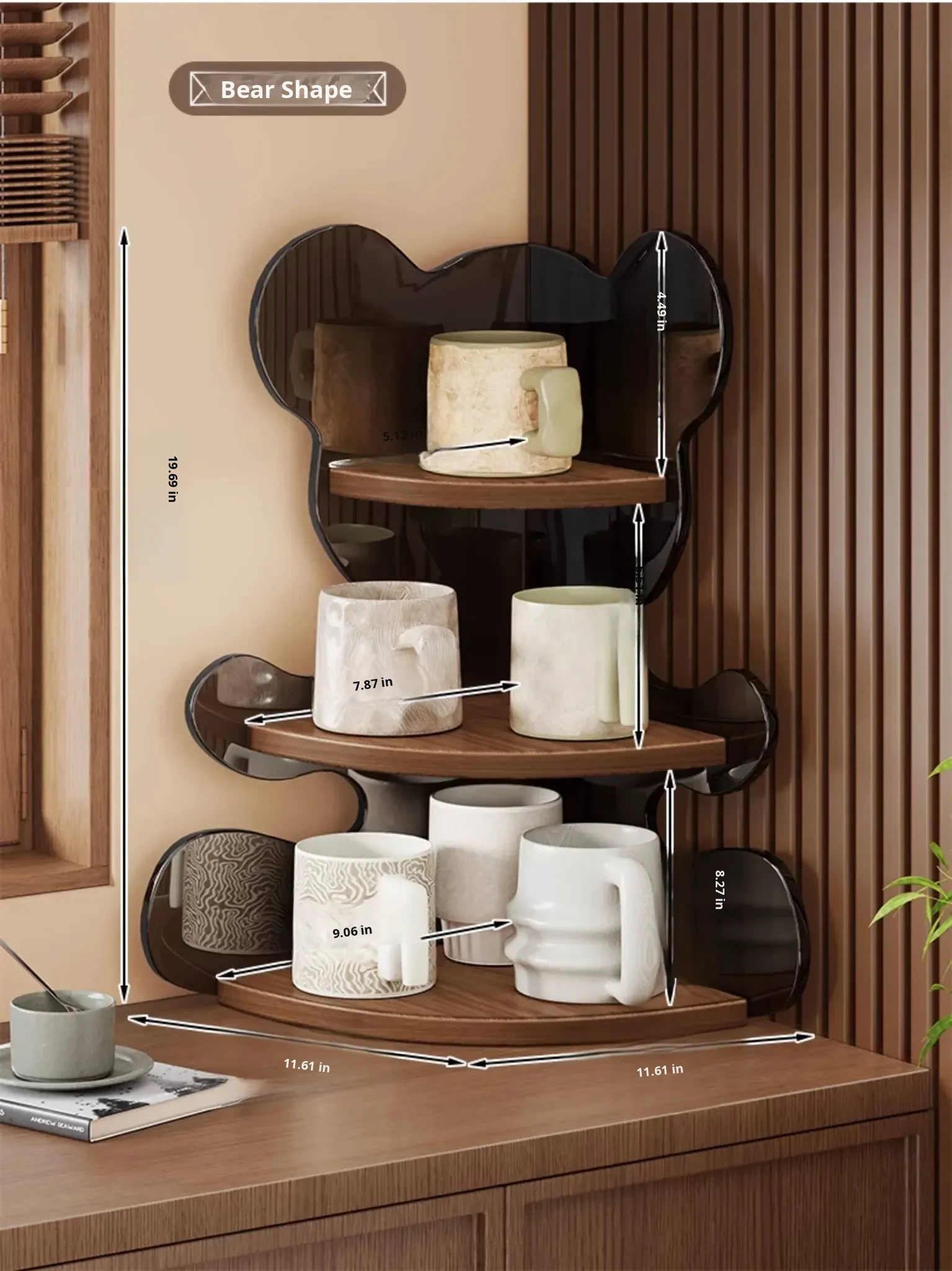 ❤Bear Shape❤Corner Shelf [Walnut-Black Tea]