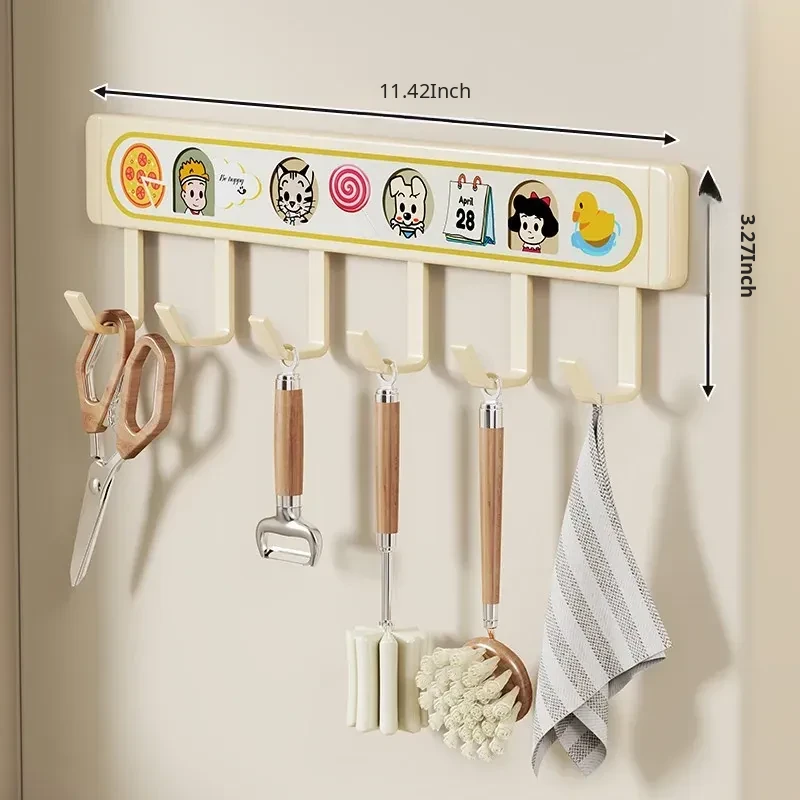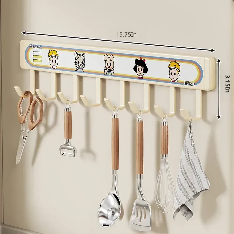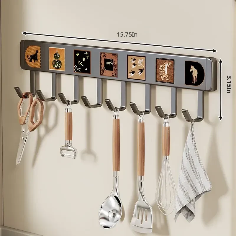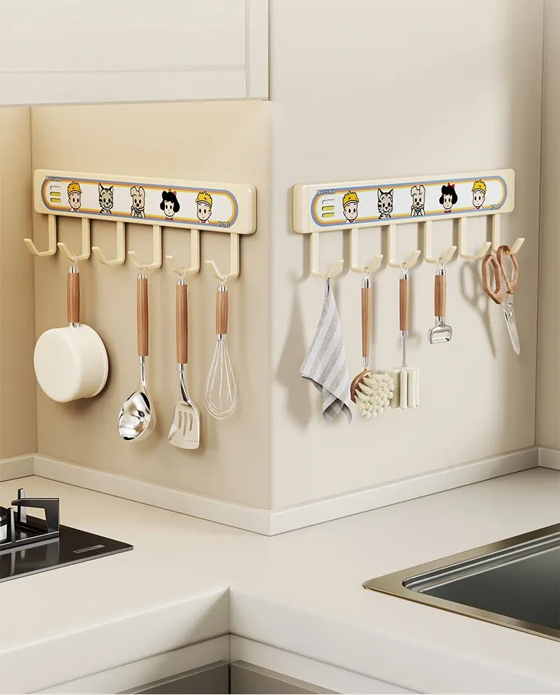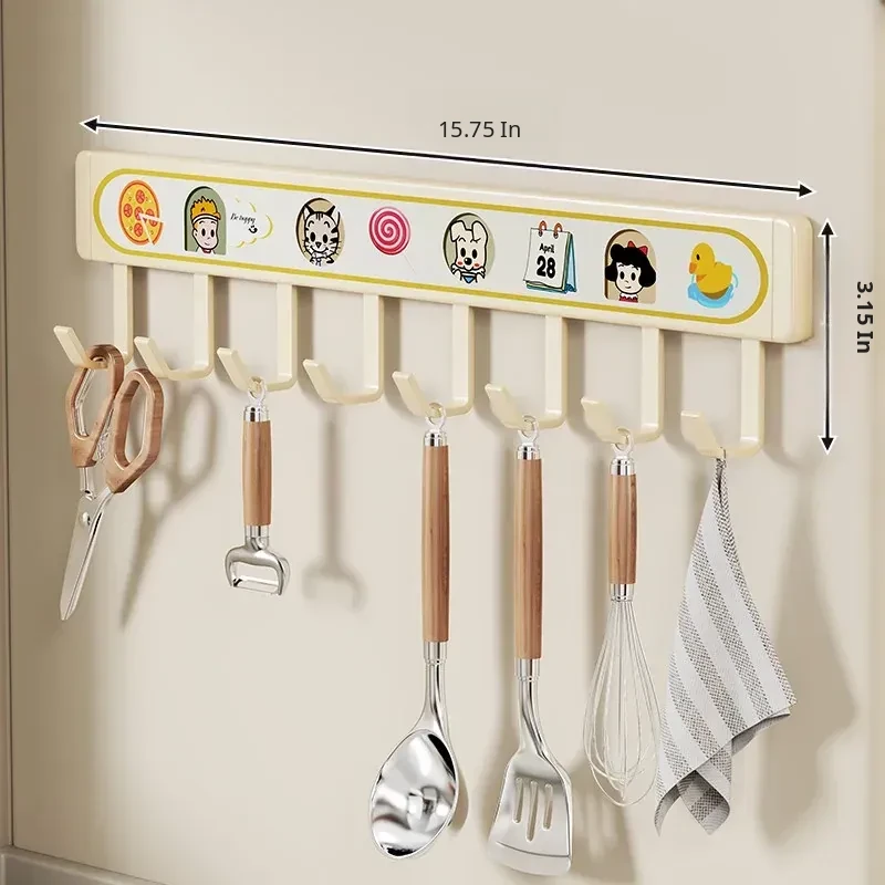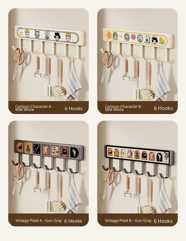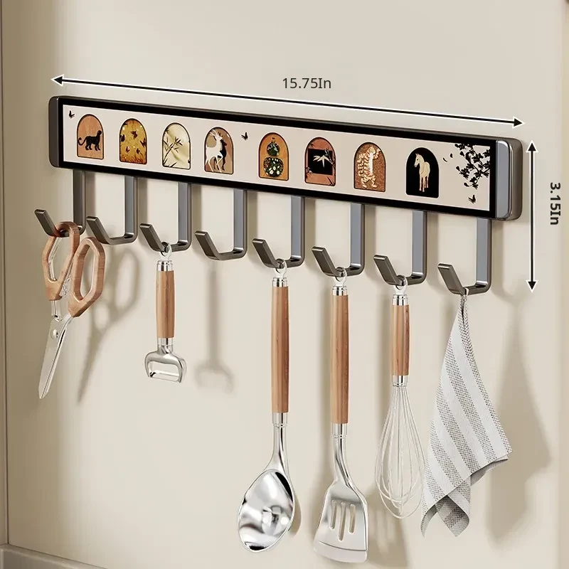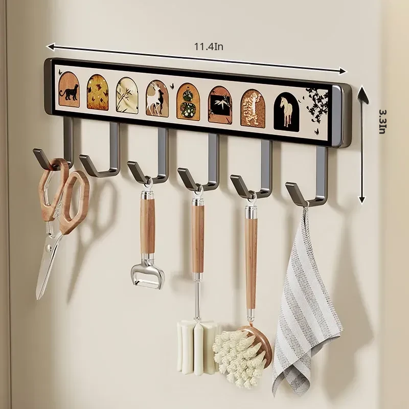 No Drill Kitchen Wall Hooks Organizer - Multi-Functional Rack for Towels, Spatulas, and Utensils - Space-Saving Storage Solution for a Clutter-Free Kitchen
