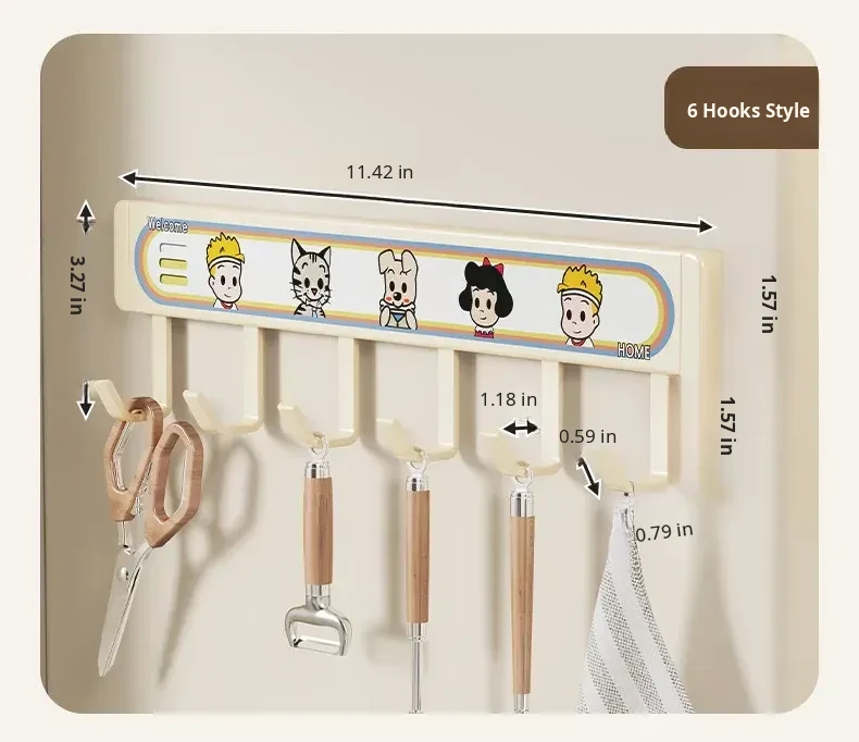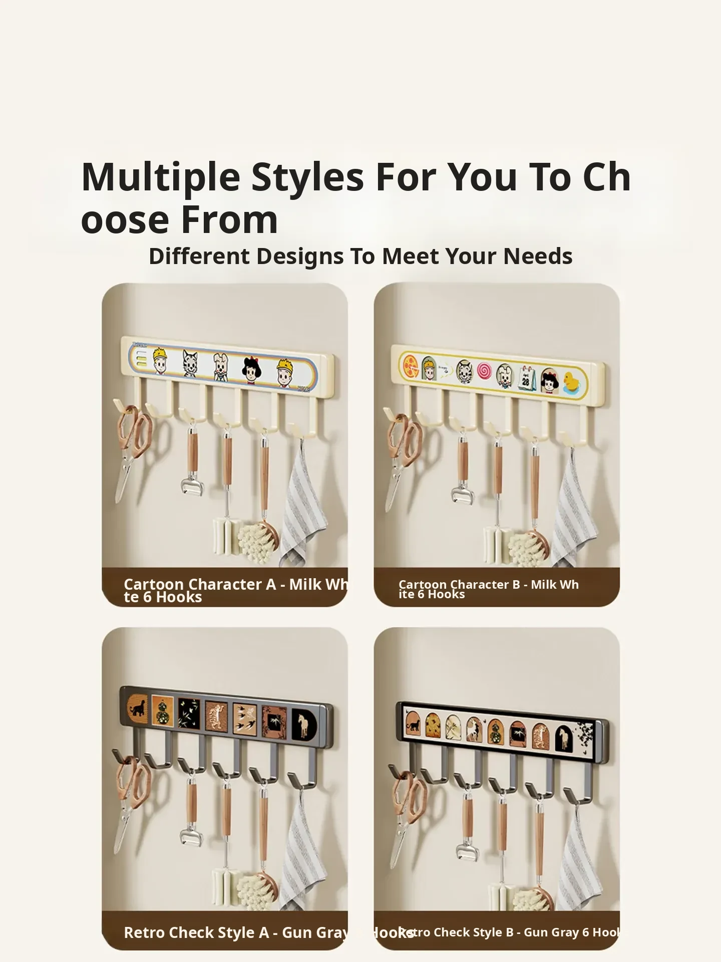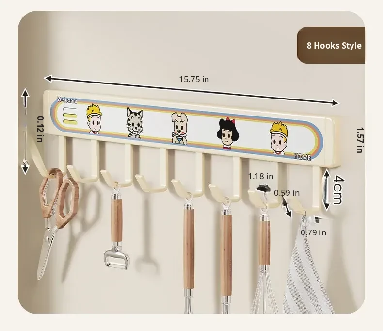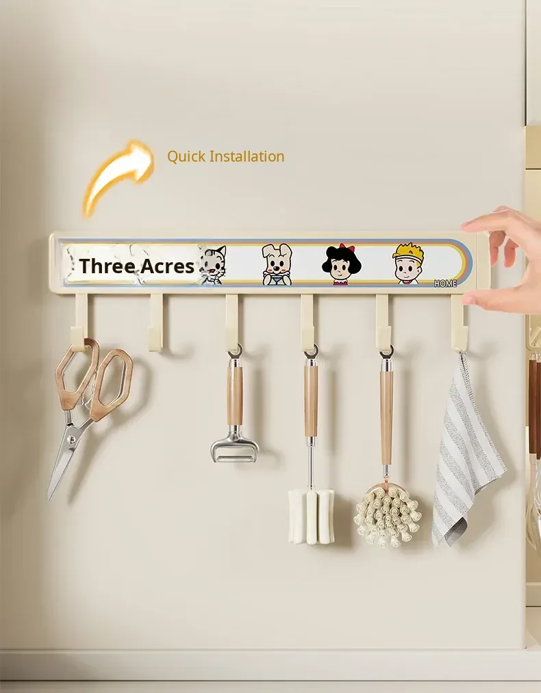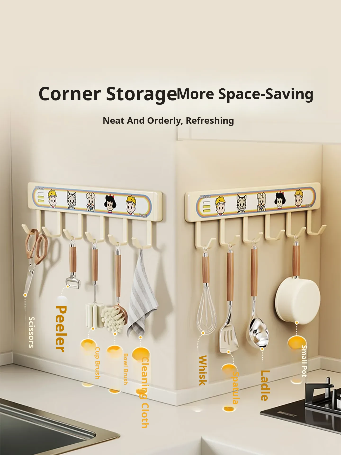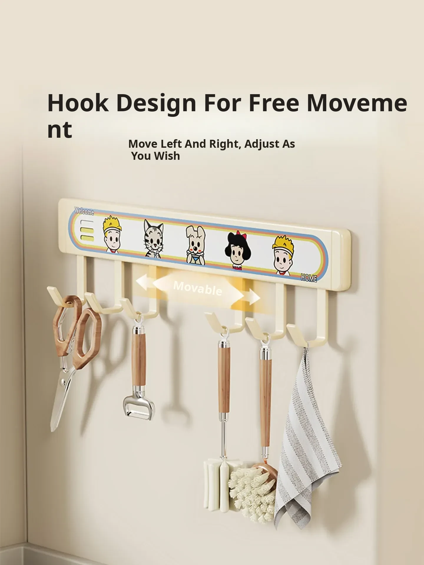 No Drill Kitchen Wall Hooks Organizer - Multi-Functional Rack for Towels, Spatulas, and Utensils - Space-Saving Storage Solution for a Clutter-Free Kitchen