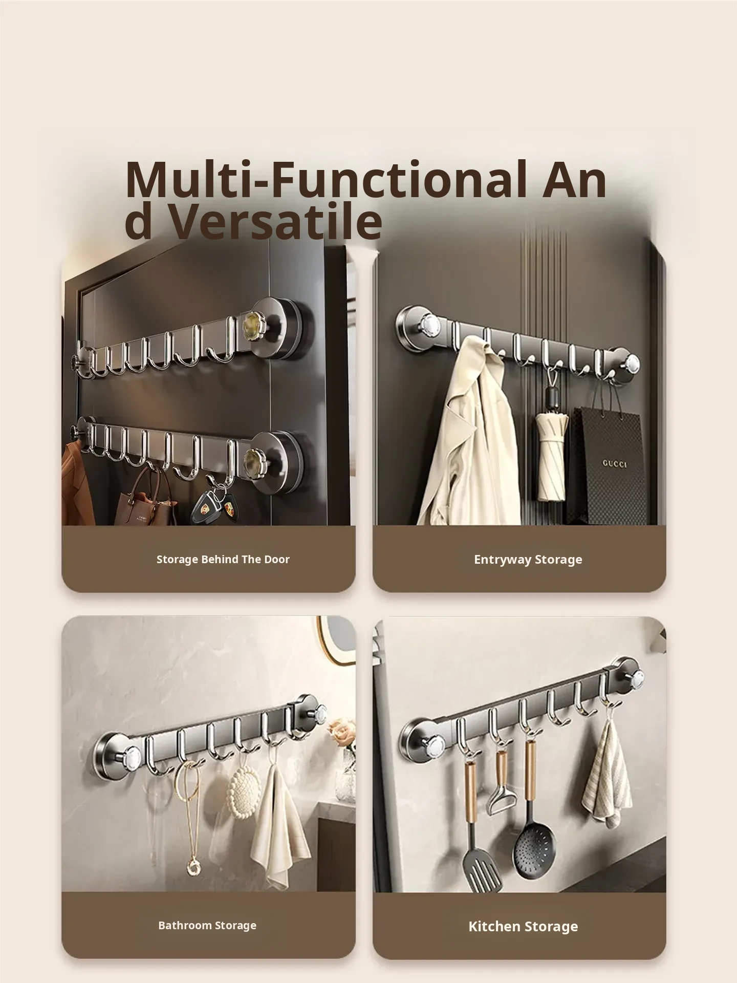 No Drill Suction Hook - Extended Hanging Rack for Clothes, Multi-Functional Over-Door Hook for Bedroom, Coat Rack & Storage Solution, Easy to Install and Space-Saving!