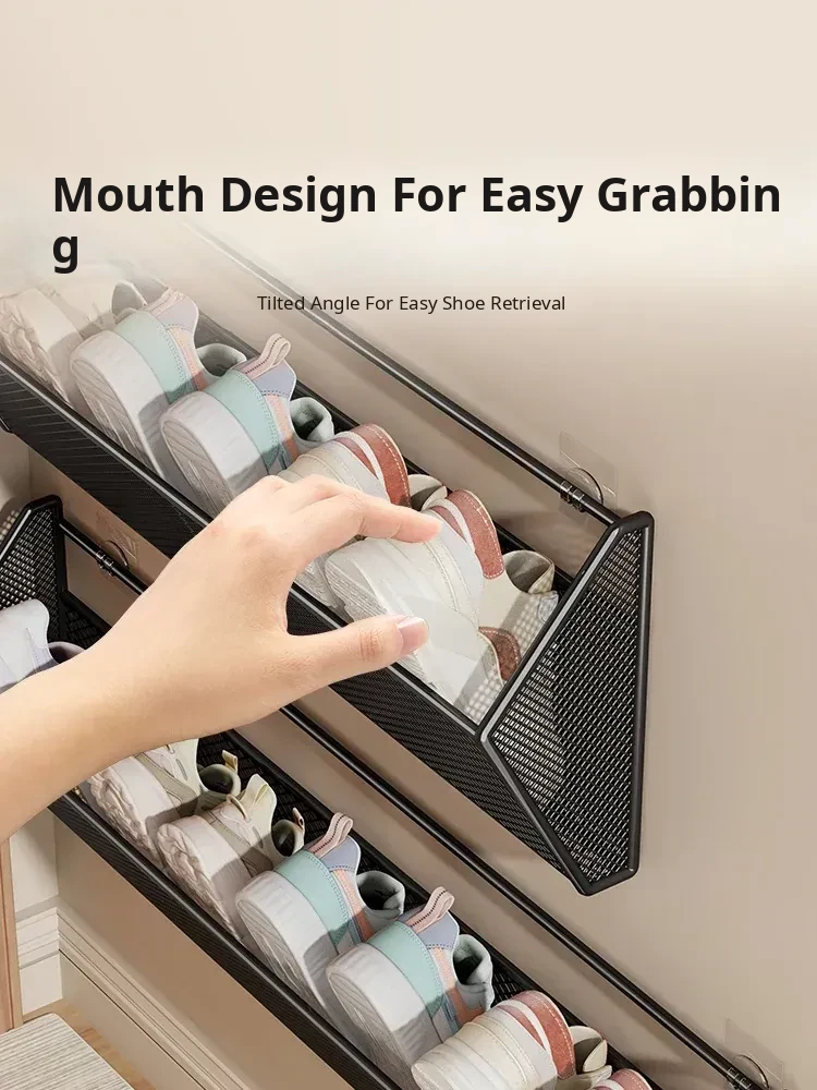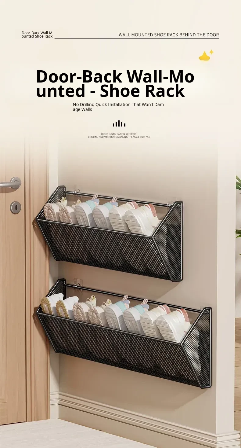 No-Drill Wall-Mounted Shoe Rack for Door – Stylish Slipper Organizer, Perfect for Bathrooms & Small Spaces – Space-Saving Shoe Storage Solution!