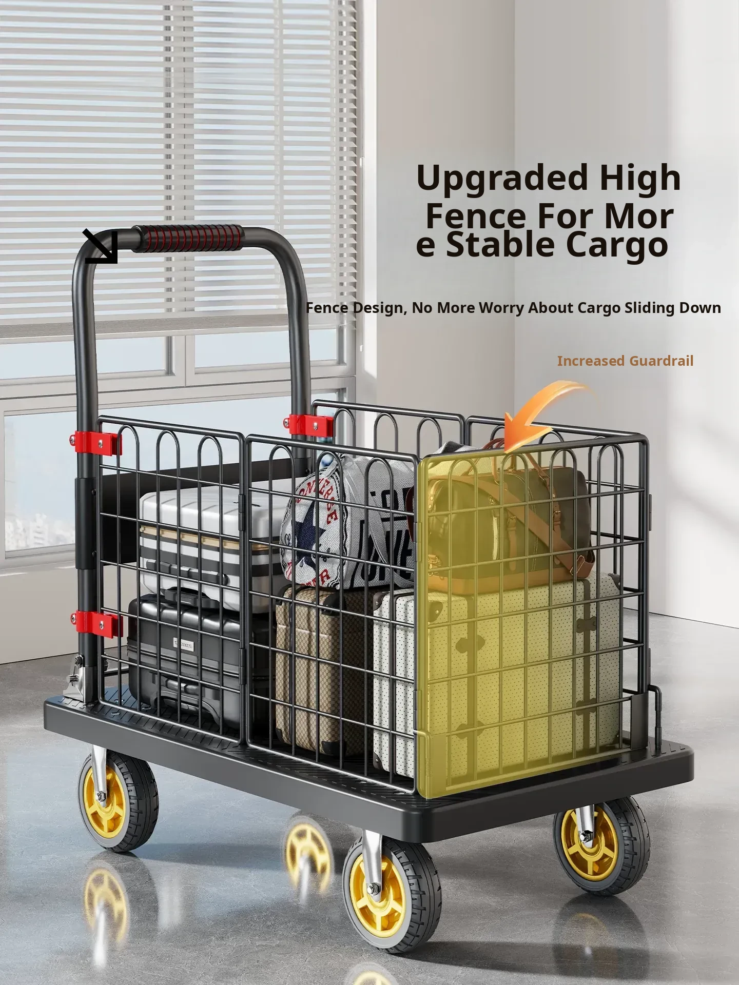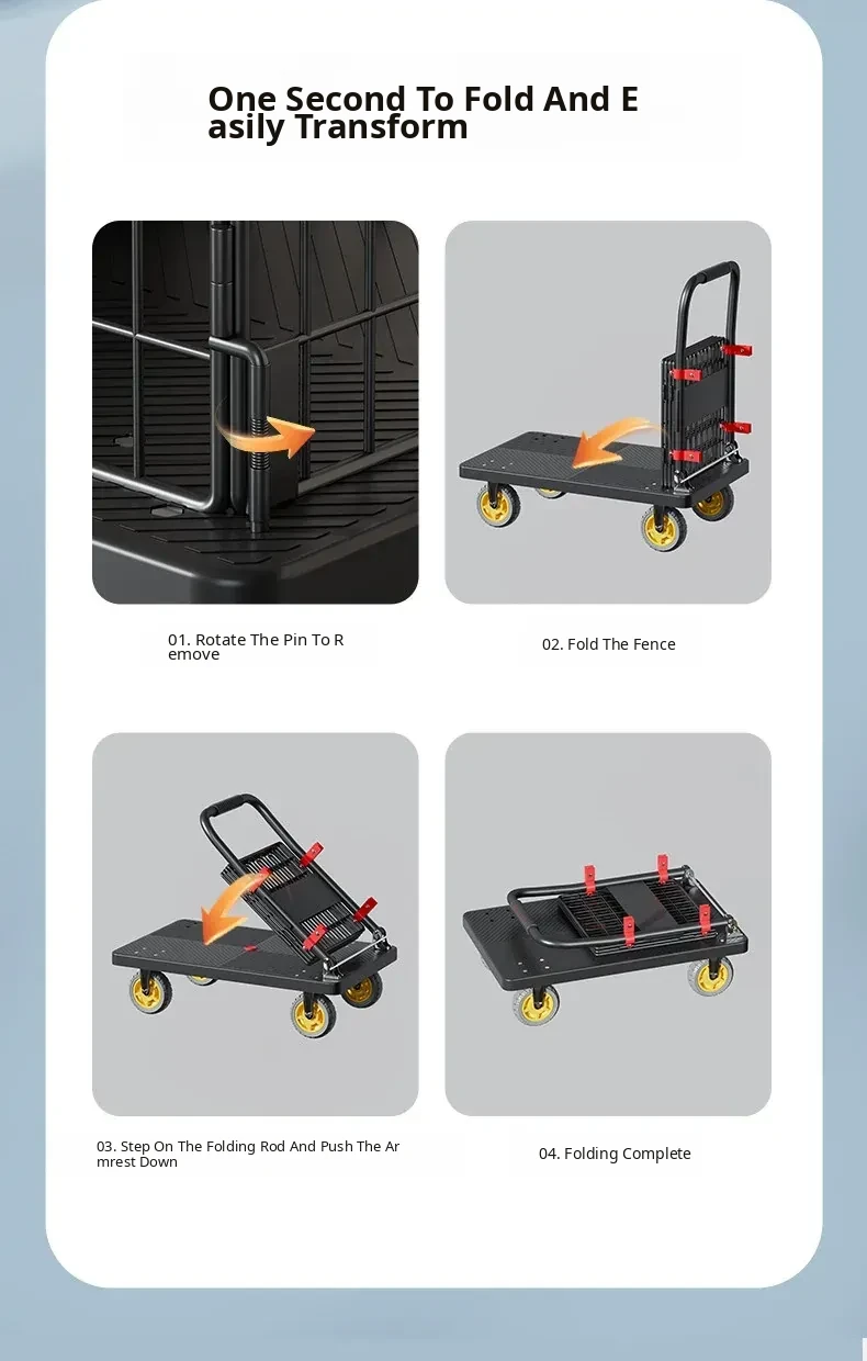 Portable Foldable Silent Flatbed Cart - Ideal for Home Delivery, Warehouse Transport, and Handy Moving Solutions!