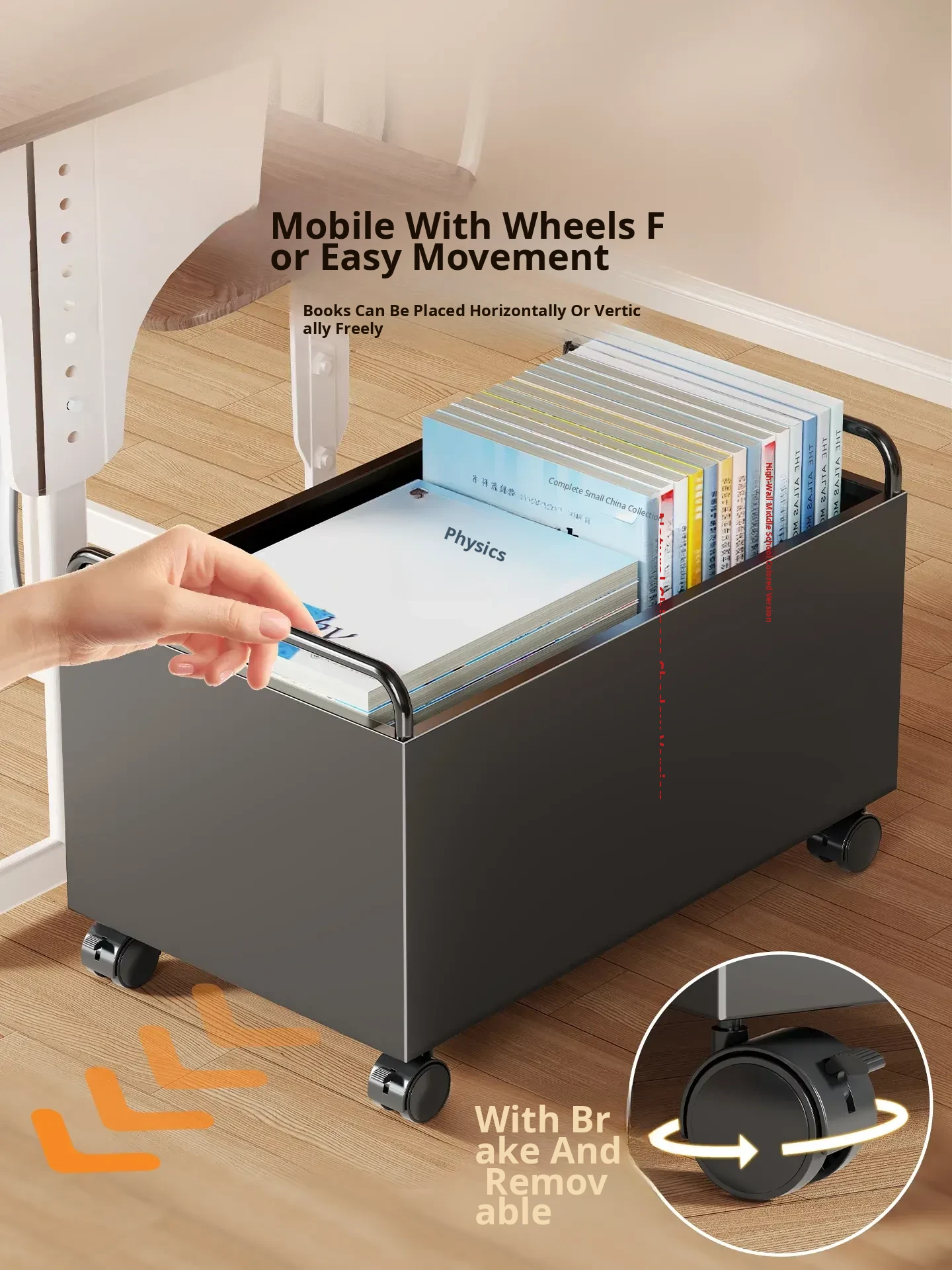 Rolling Book Cart with Storage Bins - Under Desk Organizer for Books, Movable Storage Solution for Easy Access and Neat Arrangement - Perfect for Home or Office Use!