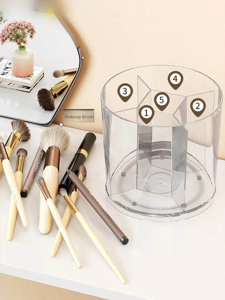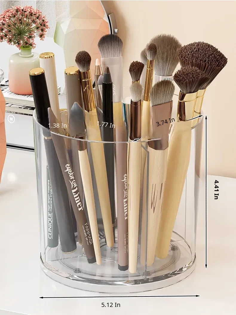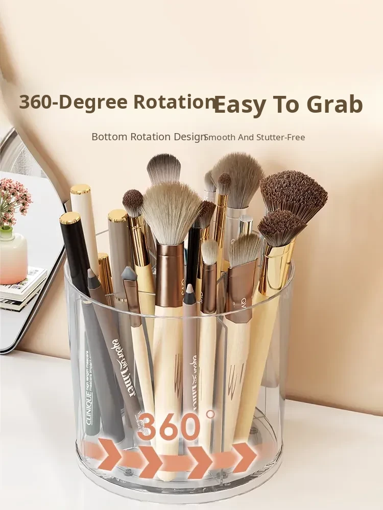 Rotating Makeup Brush Organizer - Stylish Desktop Storage for Eyebrow Pencils, Lipsticks, and Cosmetics - Perfect Vanity Storage Solution