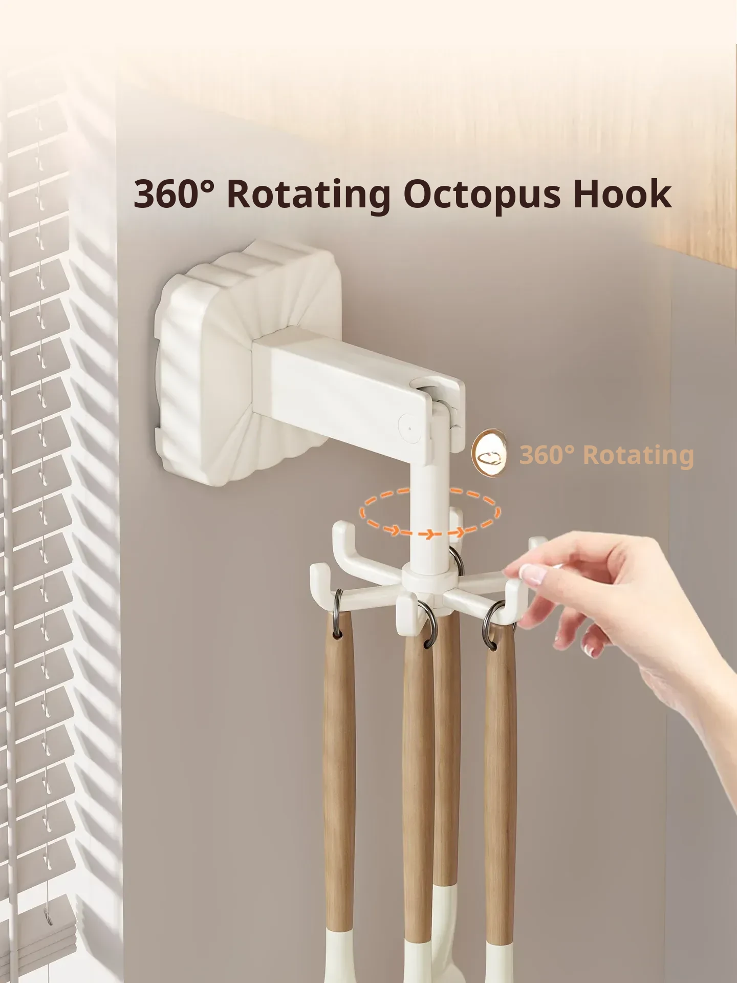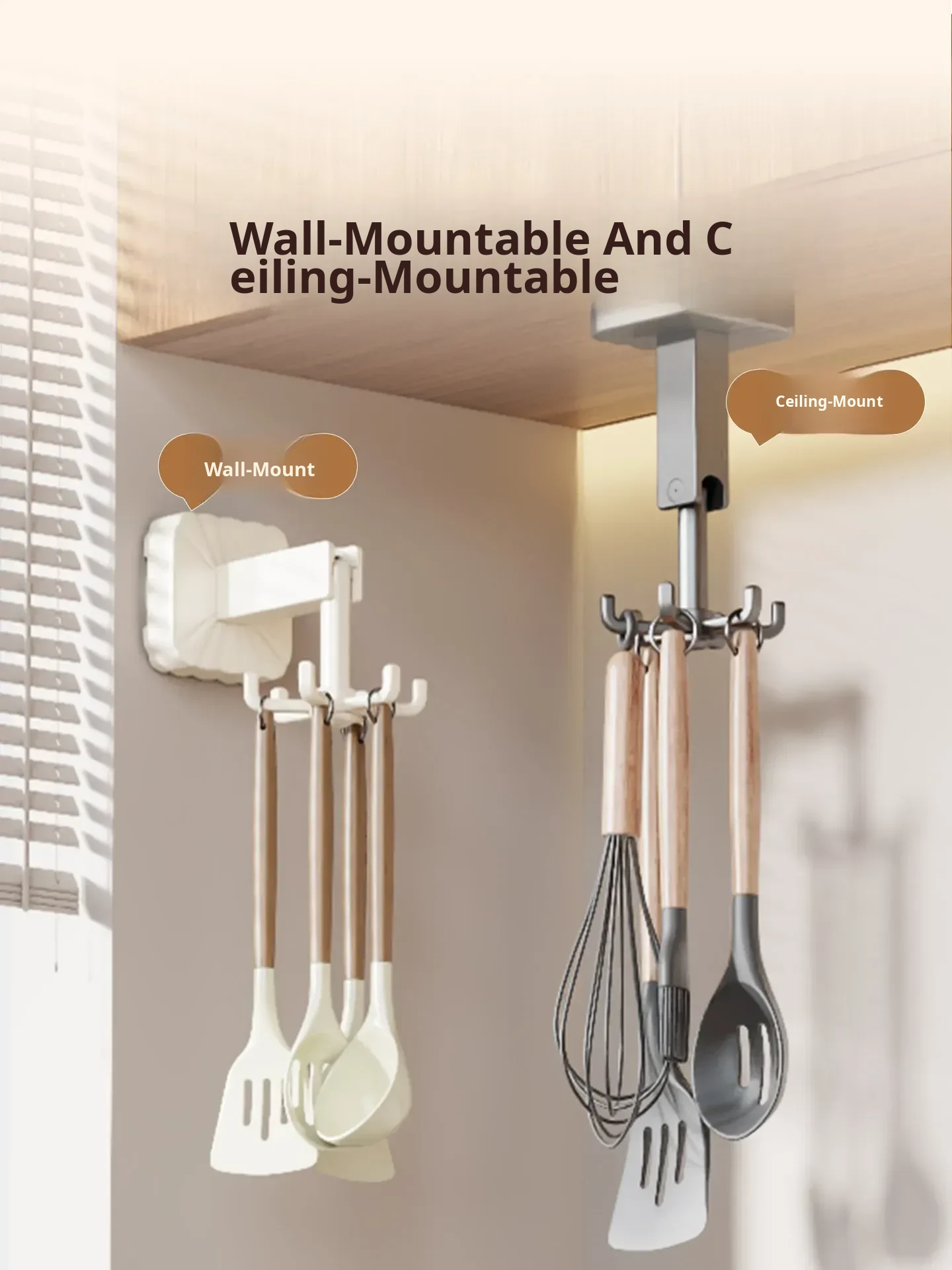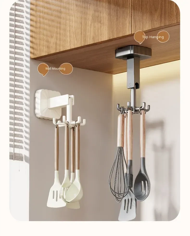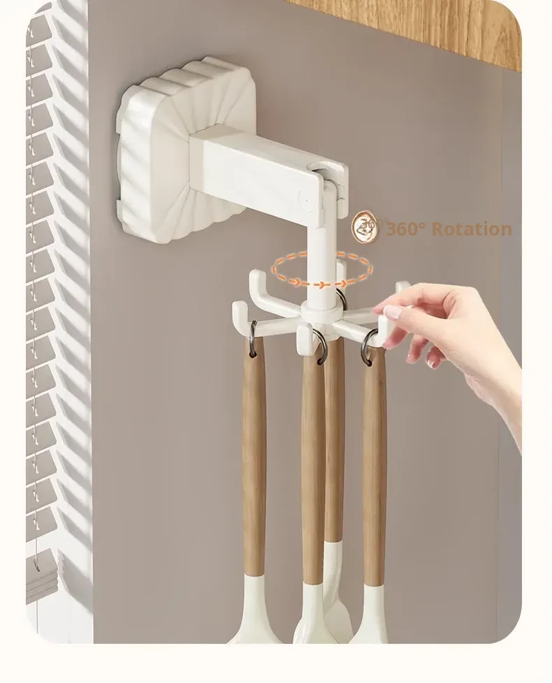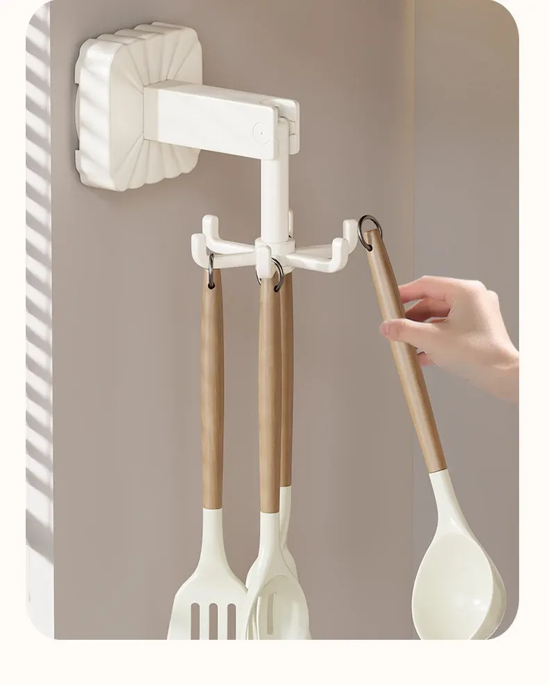 Rotating Suction Cup Hooks - No Drill Kitchen Organizer Rack for Wall-Mounted Storage of Pots, Spatulas, and Utensils – Space-Saving Solution for a Clutter-Free Kitchen!