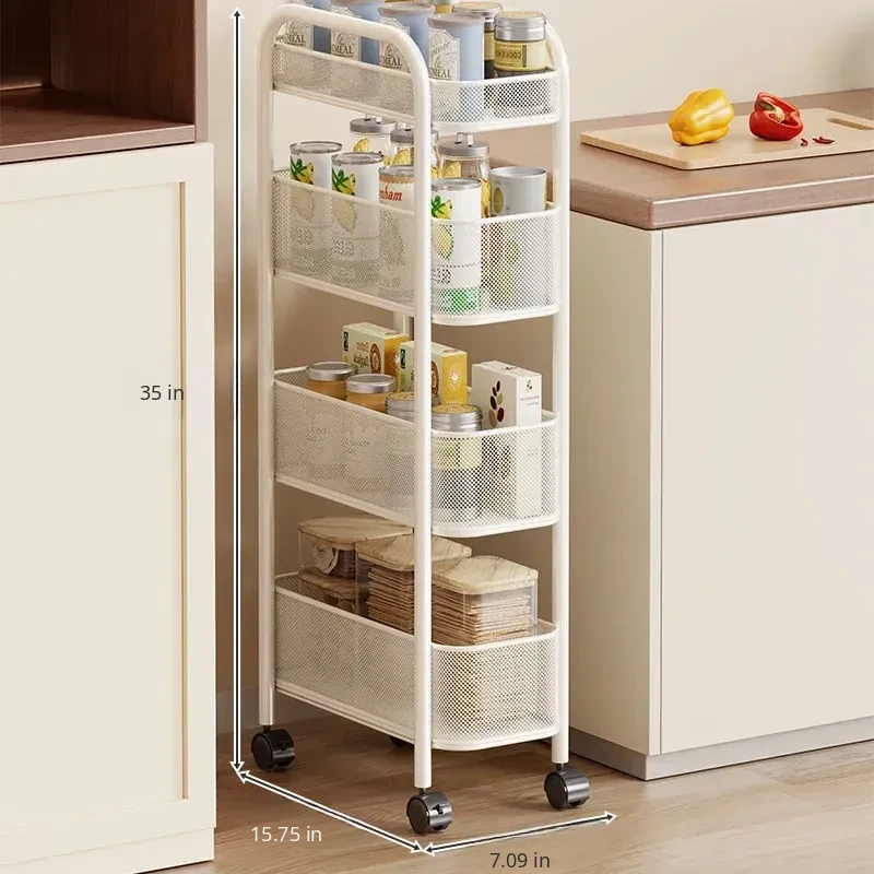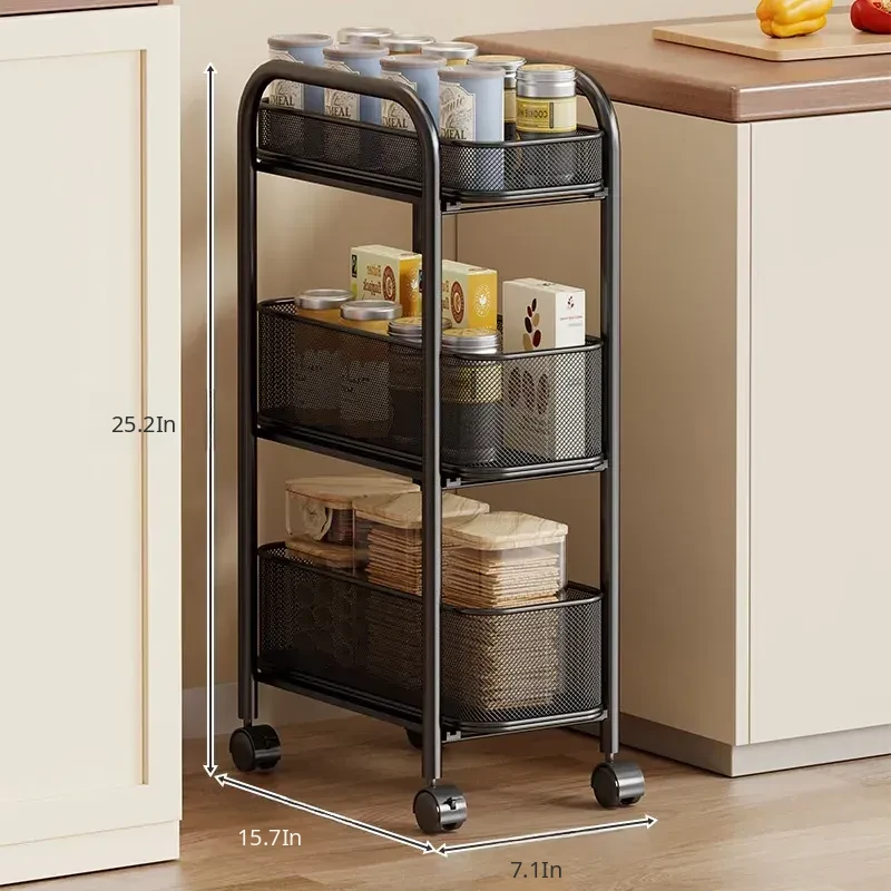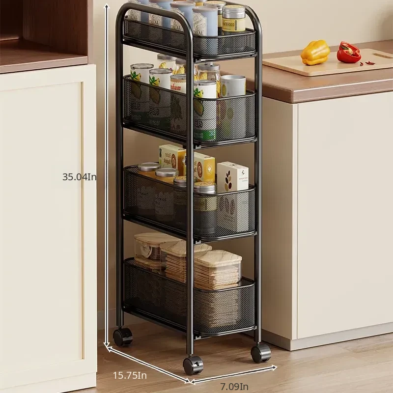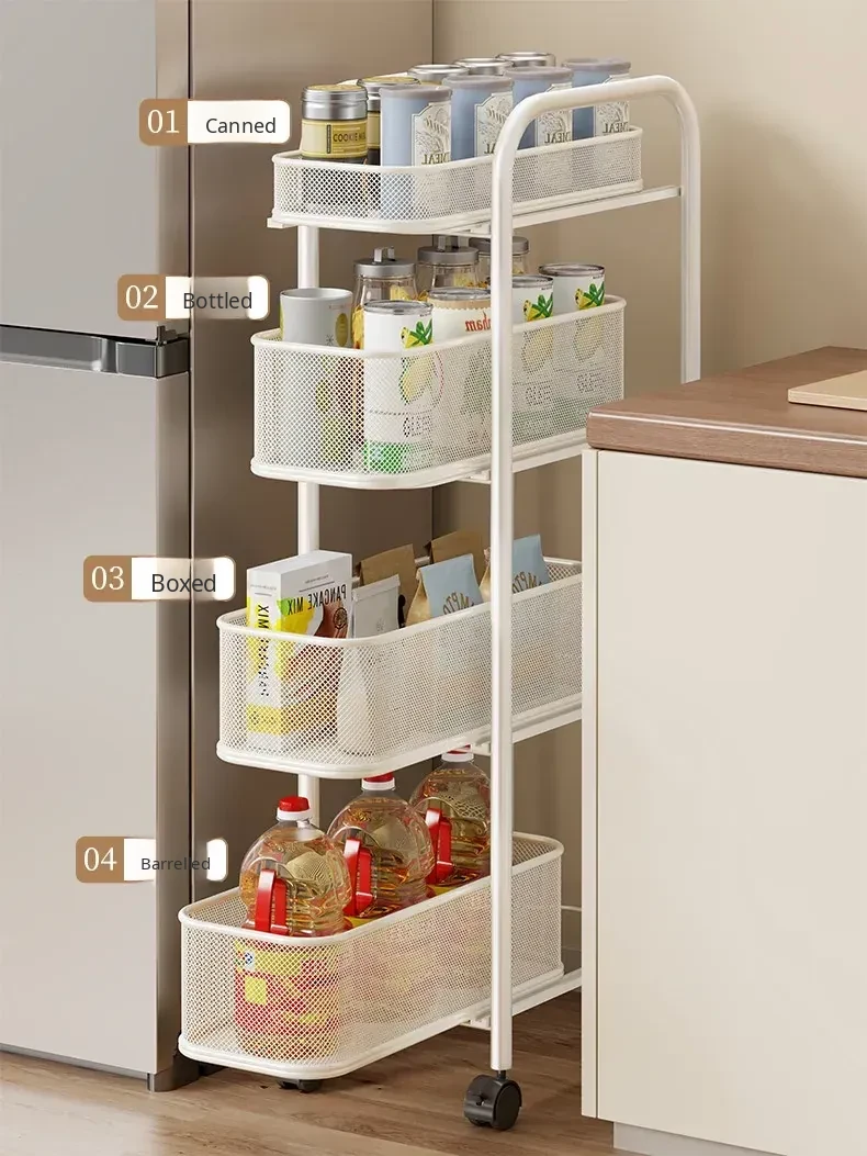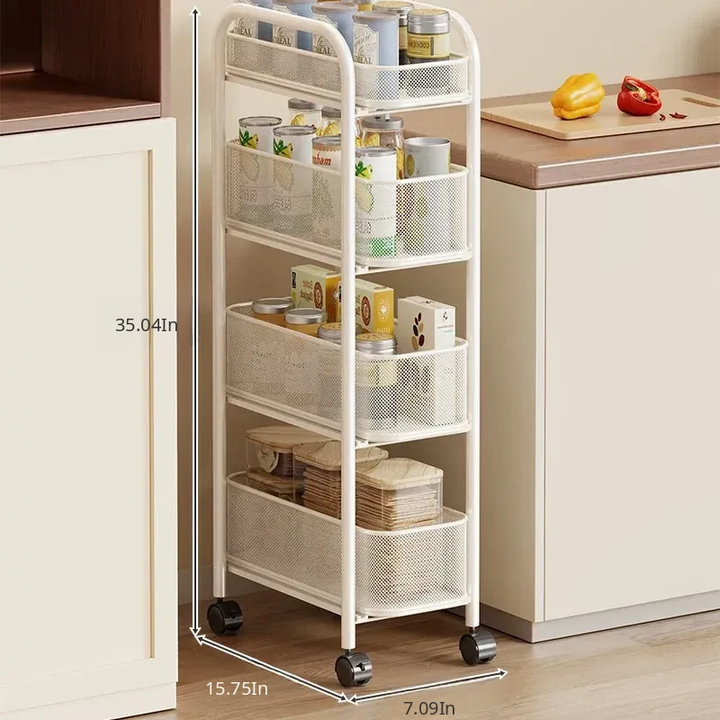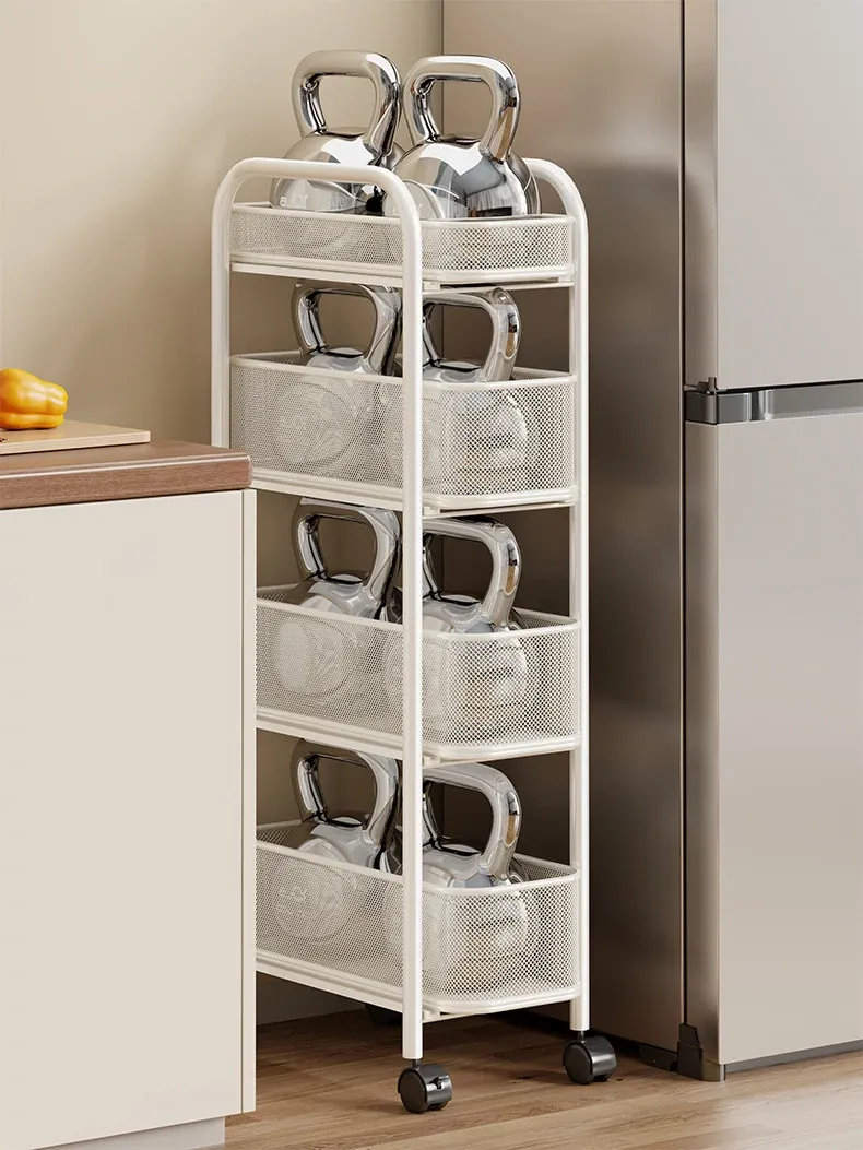 Slim Space-Saving Storage Rack for Kitchen and Bathroom - Adjustable Pull-Out Organizer for Refrigerator Sides and Narrow Gaps, Mobile Multi-Tier Shelving Unit