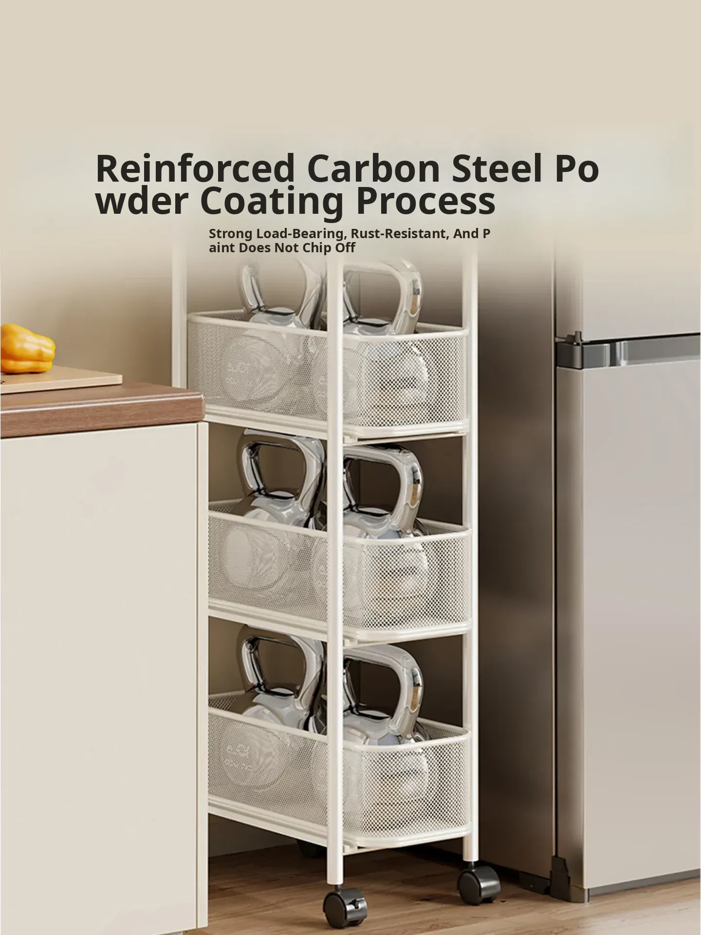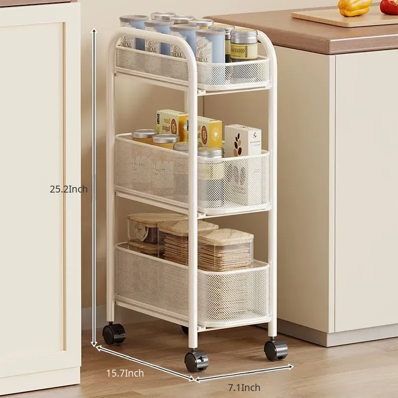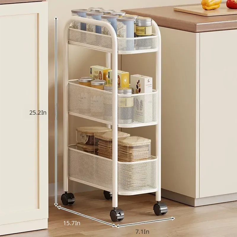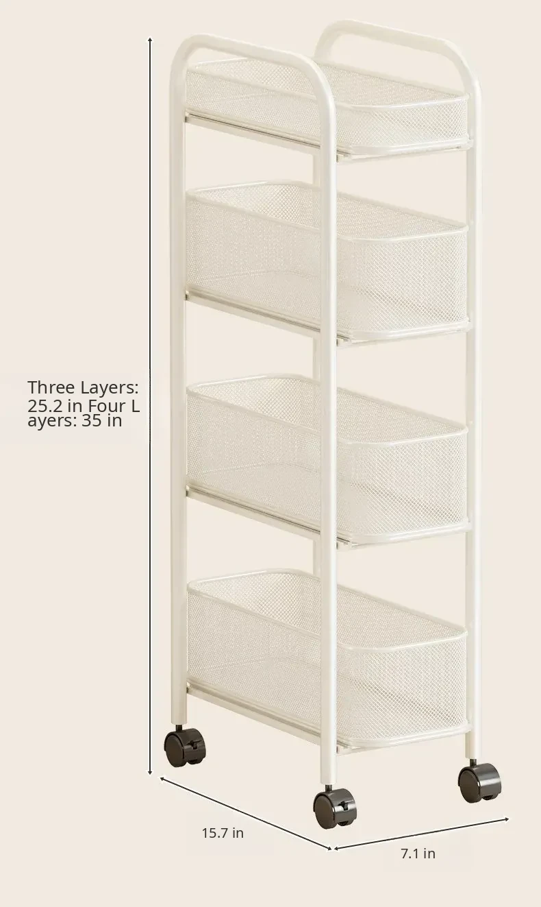 Slim Space-Saving Storage Rack for Kitchen and Bathroom - Adjustable Pull-Out Organizer for Refrigerator Sides and Narrow Gaps, Mobile Multi-Tier Shelving Unit