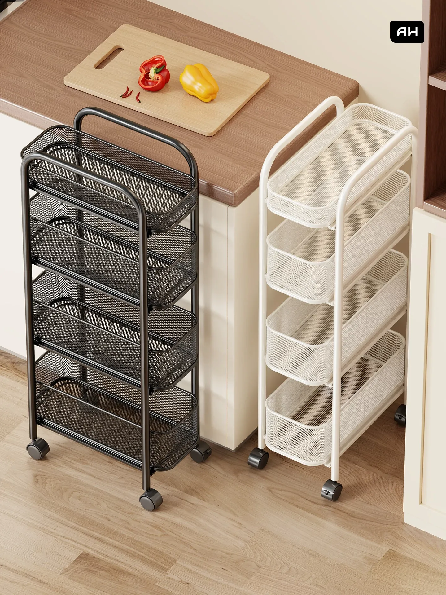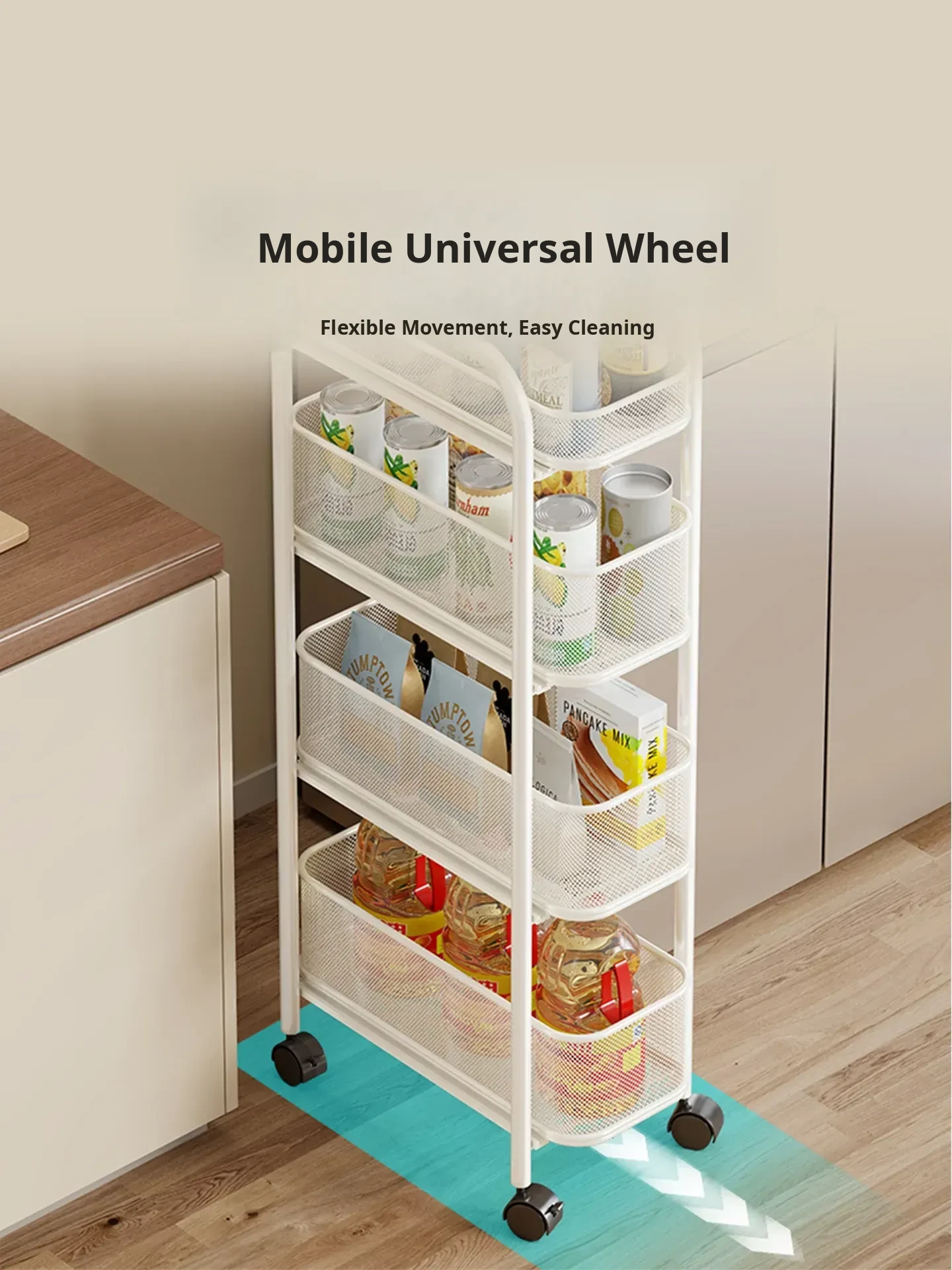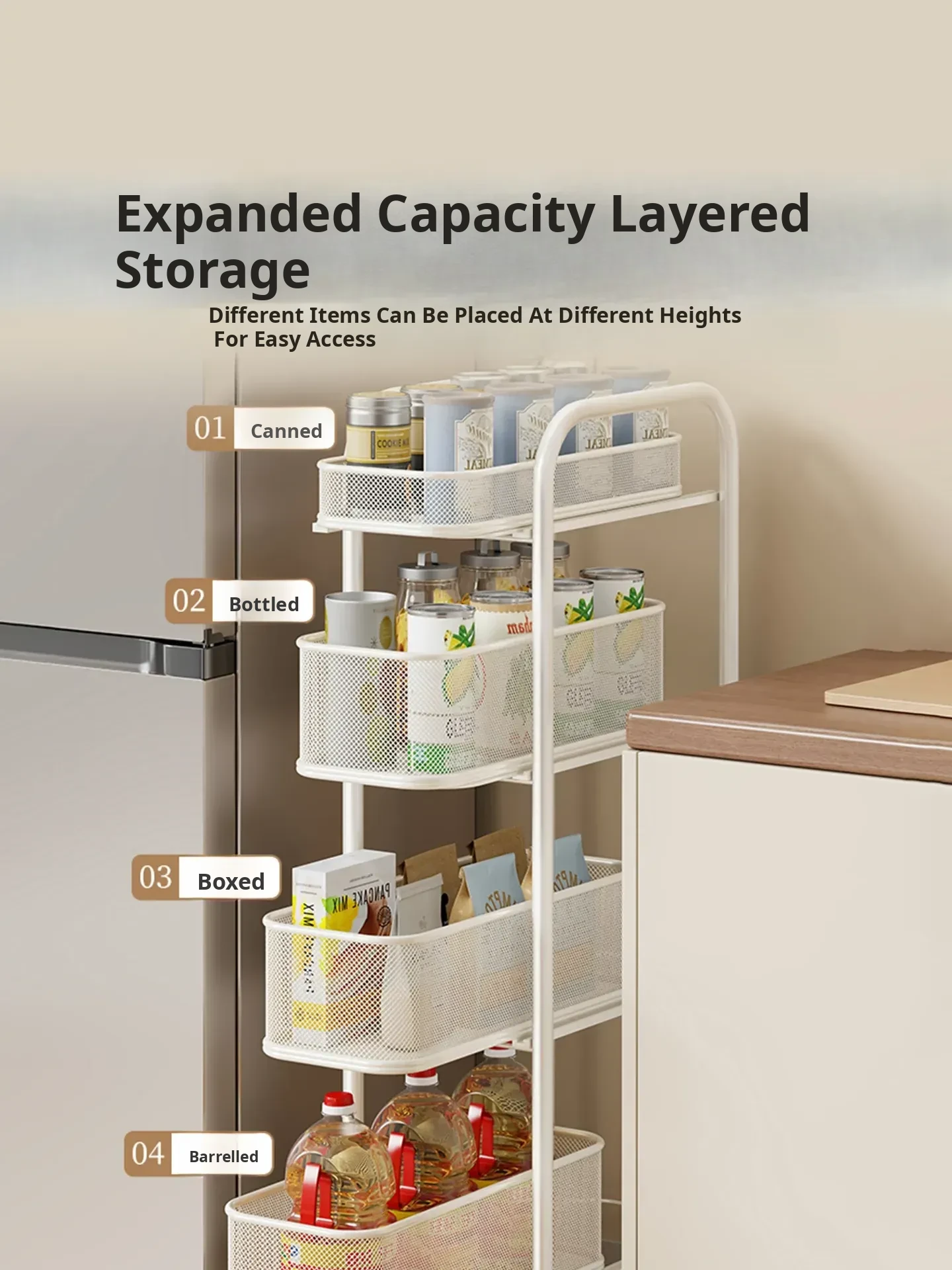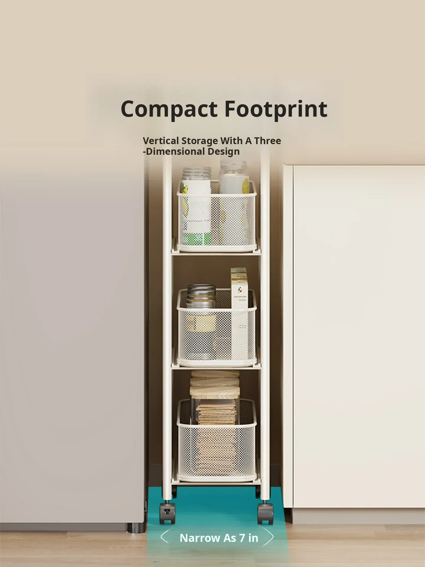 Slim Space-Saving Storage Rack for Kitchen and Bathroom - Adjustable Pull-Out Organizer for Refrigerator Sides and Narrow Gaps, Mobile Multi-Tier Shelving Unit