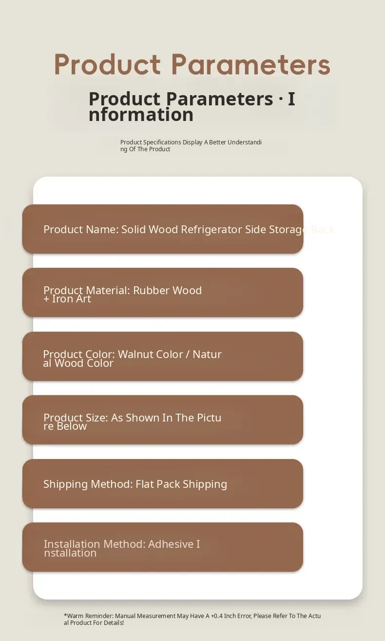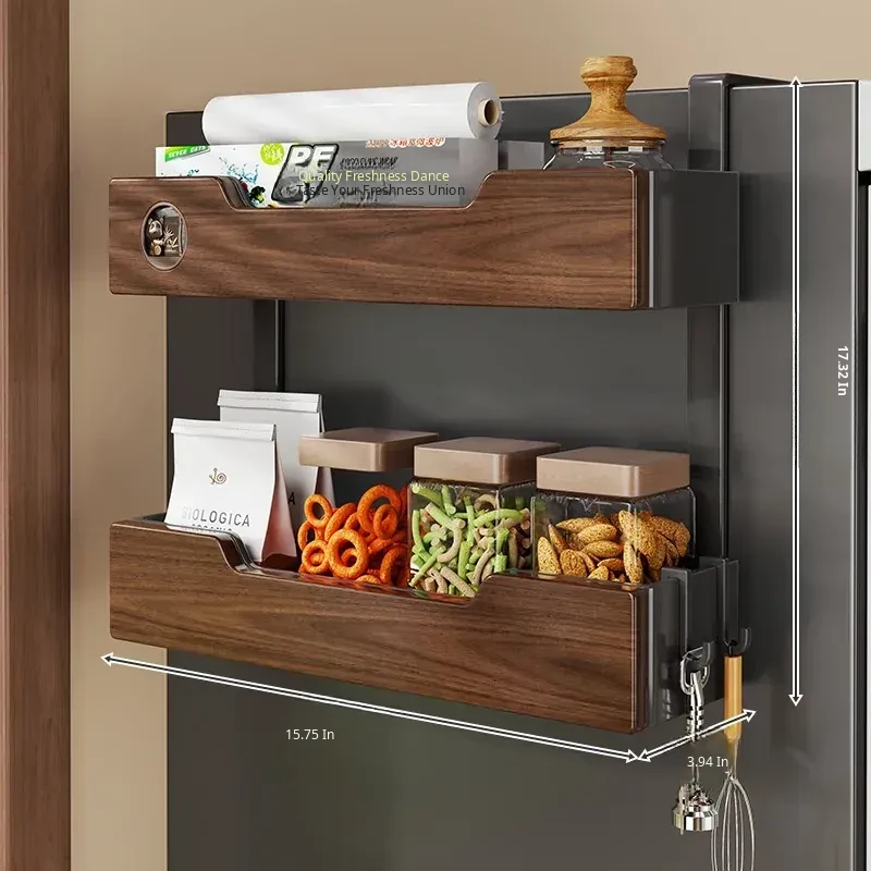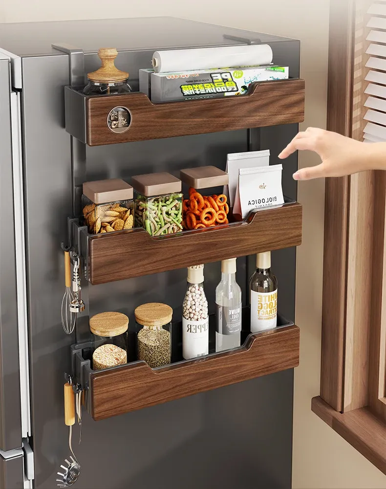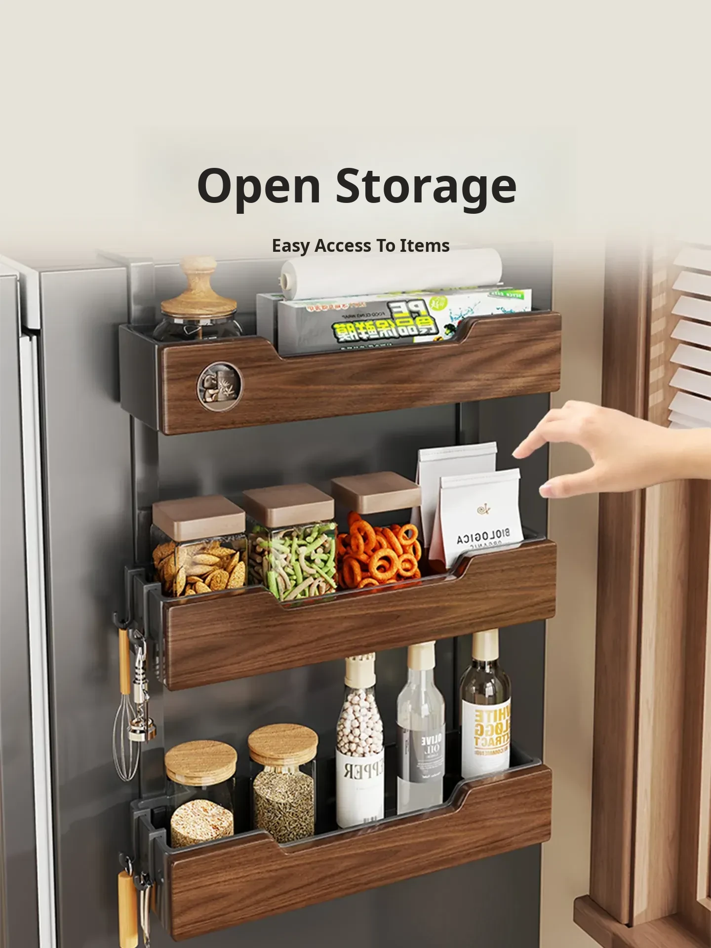 Solid Wood Refrigerator Side Storage Rack - Wall-Mounted Kitchen Organizer with No Drilling, Multi-Layer Spice Rack, Perfect for Efficient Storage and Easy Access to Your Favorite Ingredients!